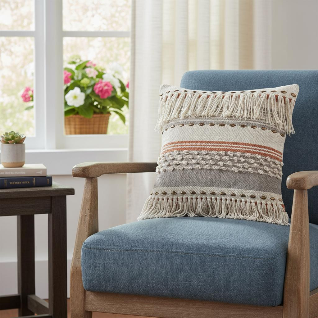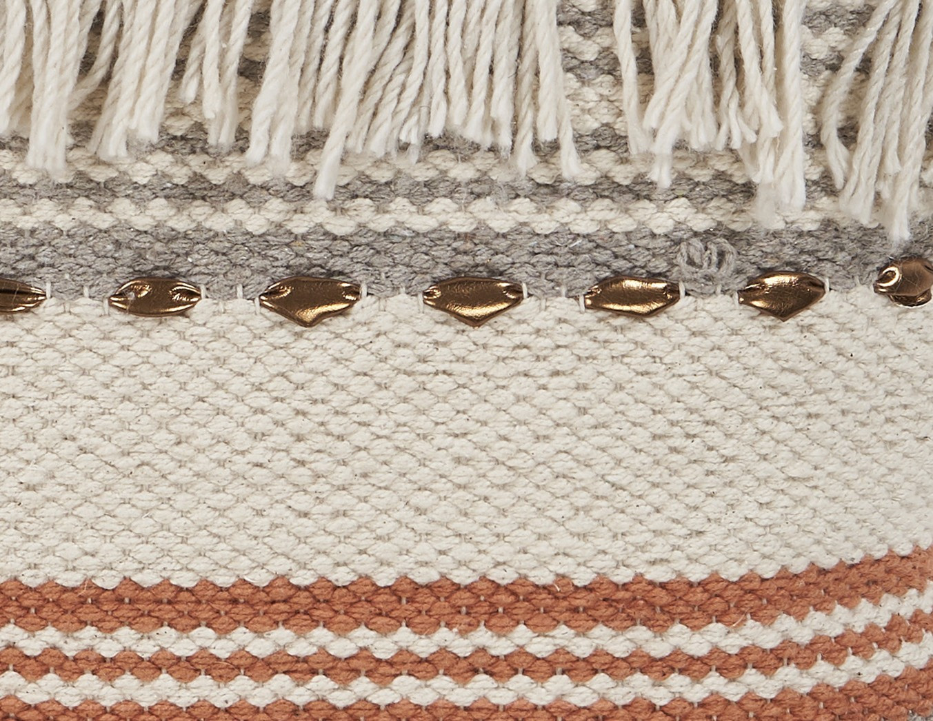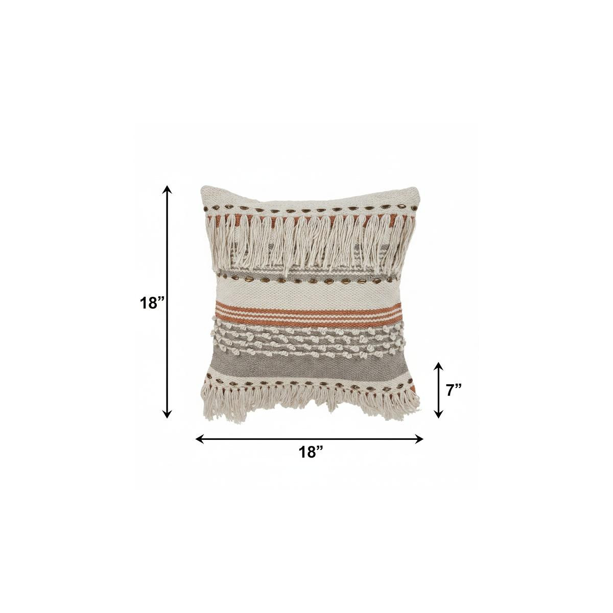 The perfect complement to your sofa, favorite chair, or bed, this 18-inch beige and tan striped cotton throw pillow is a great decorative accent. This soft and durable decorative pillow is expertly made of high grade, long lasting cotton in a beige and tan coloration. Great to use on its own or mix with other decorations for the perfect look. A great decorative accessory to add color and dimension to your favorite chair, accent your sofa, or to use as part of your bed ensemble. 18.00-inch h x 18.00-inch w x 7.00-inch d.