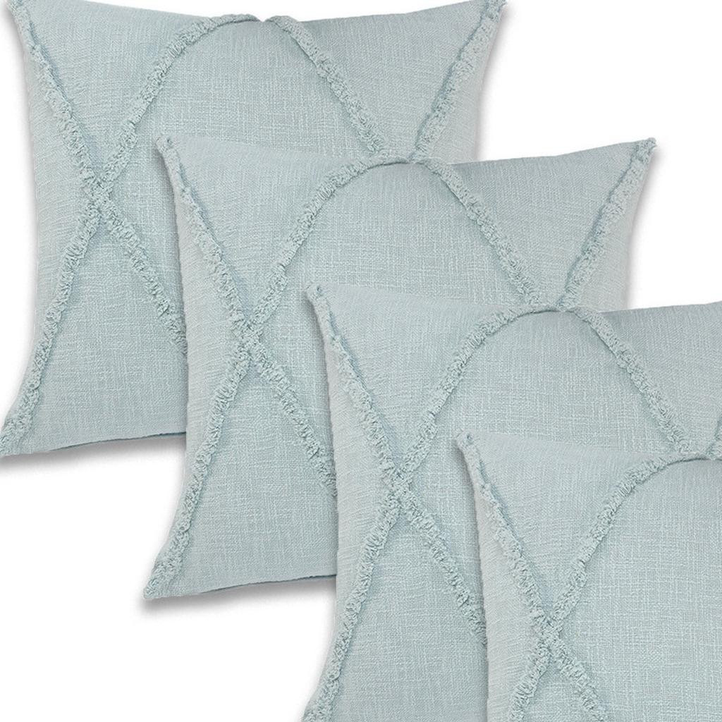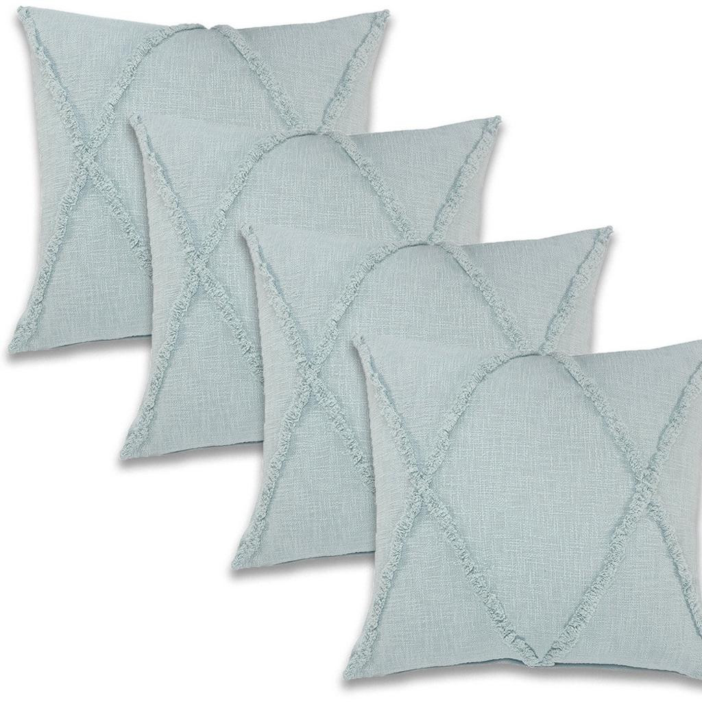 The perfect complement to your sofa, favorite chair, or bed, this set of four 24-inch x 16-inch blue and cobalt diamond cotton throw pillows is a great decorative accent. Ultra durable blue and cobalt cotton has been used to make this decorative pillow set a beautiful look that will stand the test of time. Great to use on its own or mix with other decorations for the perfect look. Decorative throw pillows not only add color and dimension to your space but can be comfy and supportive when you are lounging and cuddling as well. 24.00-inch h x 16.00-inch w x 15.00-inch d.