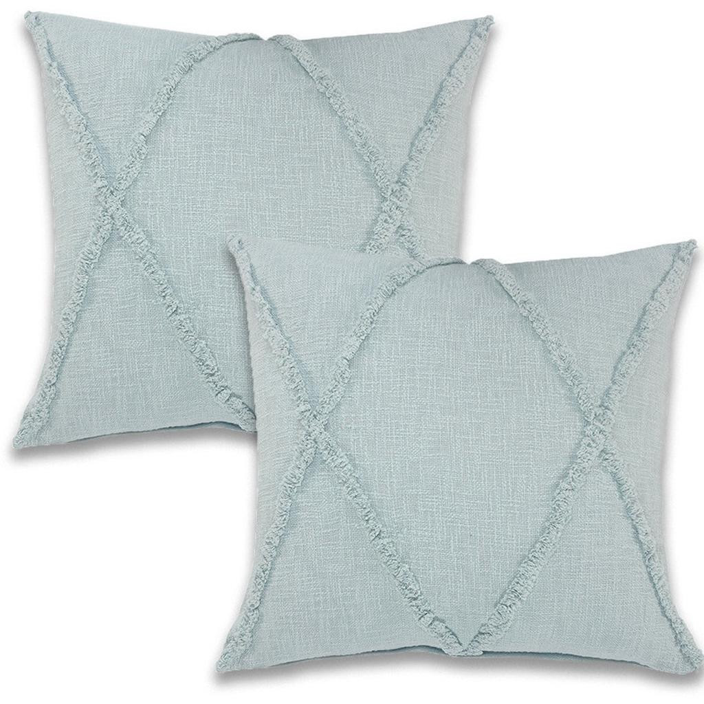 The set of two 24-inch x 16-inch blue and cobalt diamond cotton throw pillows is the perfect decorative accessory for your home. Ultra durable blue and cobalt cotton has been used to make this decorative pillow set a beautiful look that will stand the test of time. Great to use on its own or mix with other decorations for the perfect look. A great decorative accessory to add color and dimension to your favorite chair, accent your sofa, or to use as part of your bed ensemble. 24.00-inch h x 16.00-inch w x 15.00-inch d.