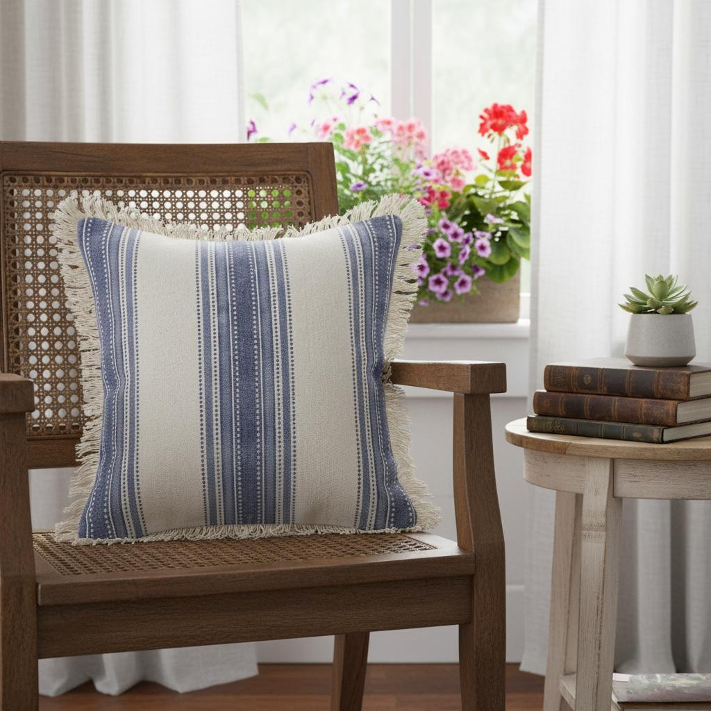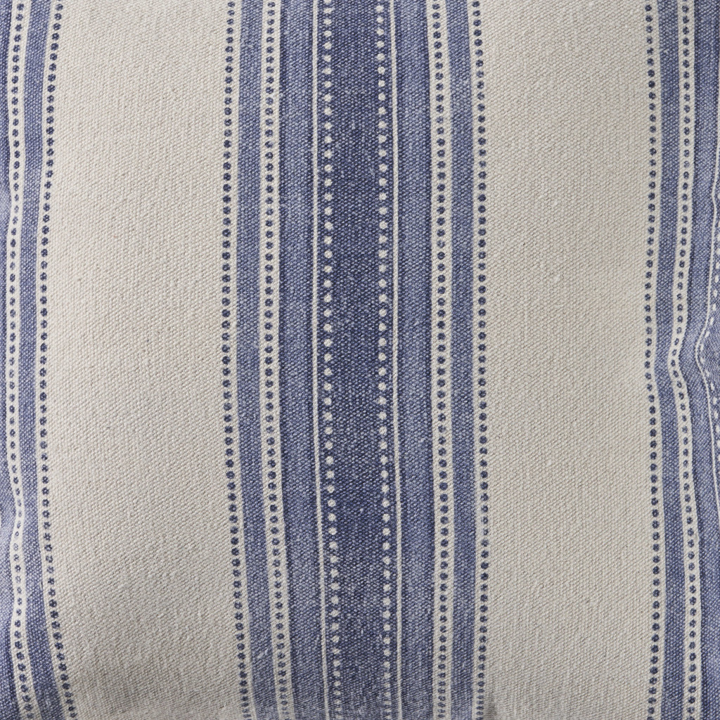 Unique and decorative, this comfortable 18-inch blue and cobalt beach striped cotton throw pillow will leave a lasting impression. Durable blue and cobalt cotton has been used to give this pillow a beautiful look that will stand the test of time. For anyone that loves to decorate or accent their space with color and texture. Decorative throw pillows not only add color and dimension to your space but can be comfy and supportive when you are lounging and cuddling as well. 18.00-inch h x 18.00-inch w x 7.00-inch d.