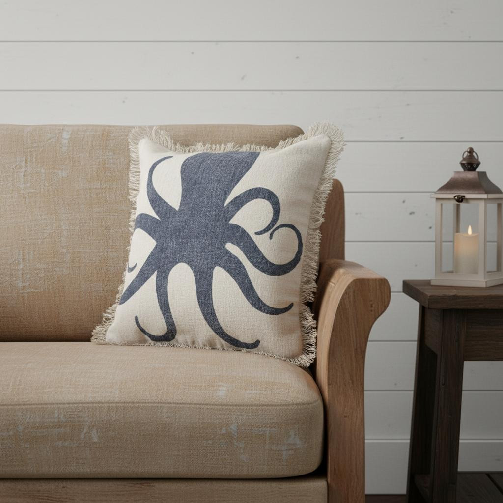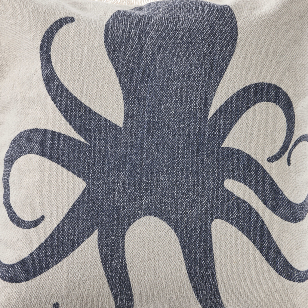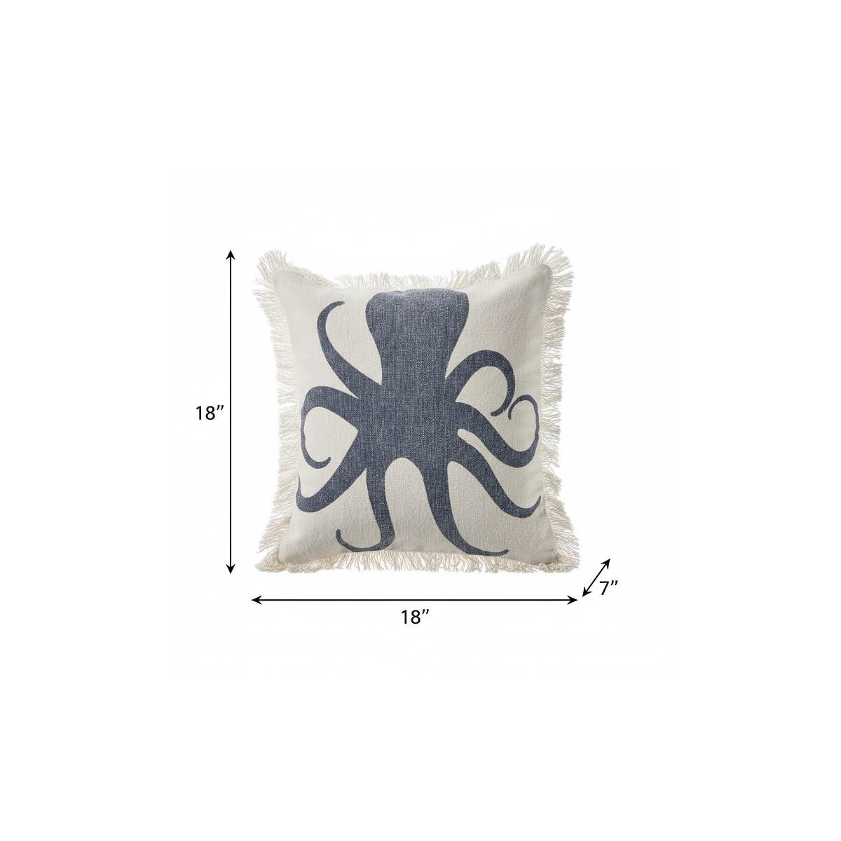 Add an air of fashion to your room and rejuvenate the space with this cute and fashionable 18-inch blue and cobalt octopus cotton throw pillow. This soft and durable decorative pillow is expertly made of high grade, long lasting cotton in a blue and cobalt coloration. Decorative pillows are a great way to change up the look and feel of your space easily and quickly. Decorative throw pillows not only add color and dimension to your space but can be comfy and supportive when you are lounging and cuddling as well. 18.00-inch h x 18.00-inch w x 7.00-inch d.