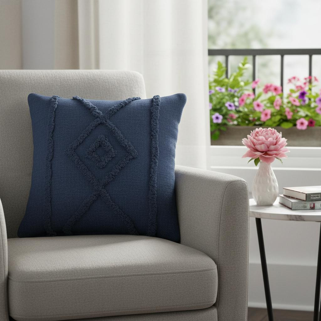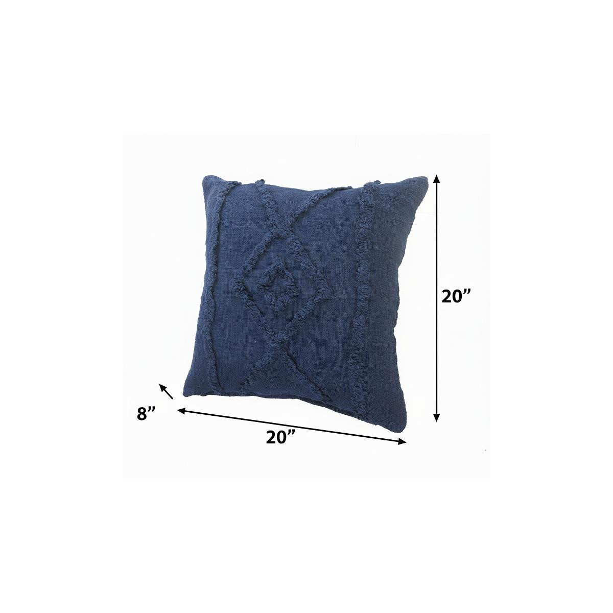 This 20-inch blue and cobalt geometric cotton throw pillow will add a beautiful decorative accent to your decor. This soft and durable decorative pillow is expertly made of high grade, long lasting cotton in a blue and cobalt coloration. For anyone that loves to decorate or accent their space with color and texture. Decorative throw pillows not only add color and dimension to your space but can be comfy and supportive when you are lounging and cuddling as well. 20.00-inch h x 20.00-inch w x 8.00-inch d.