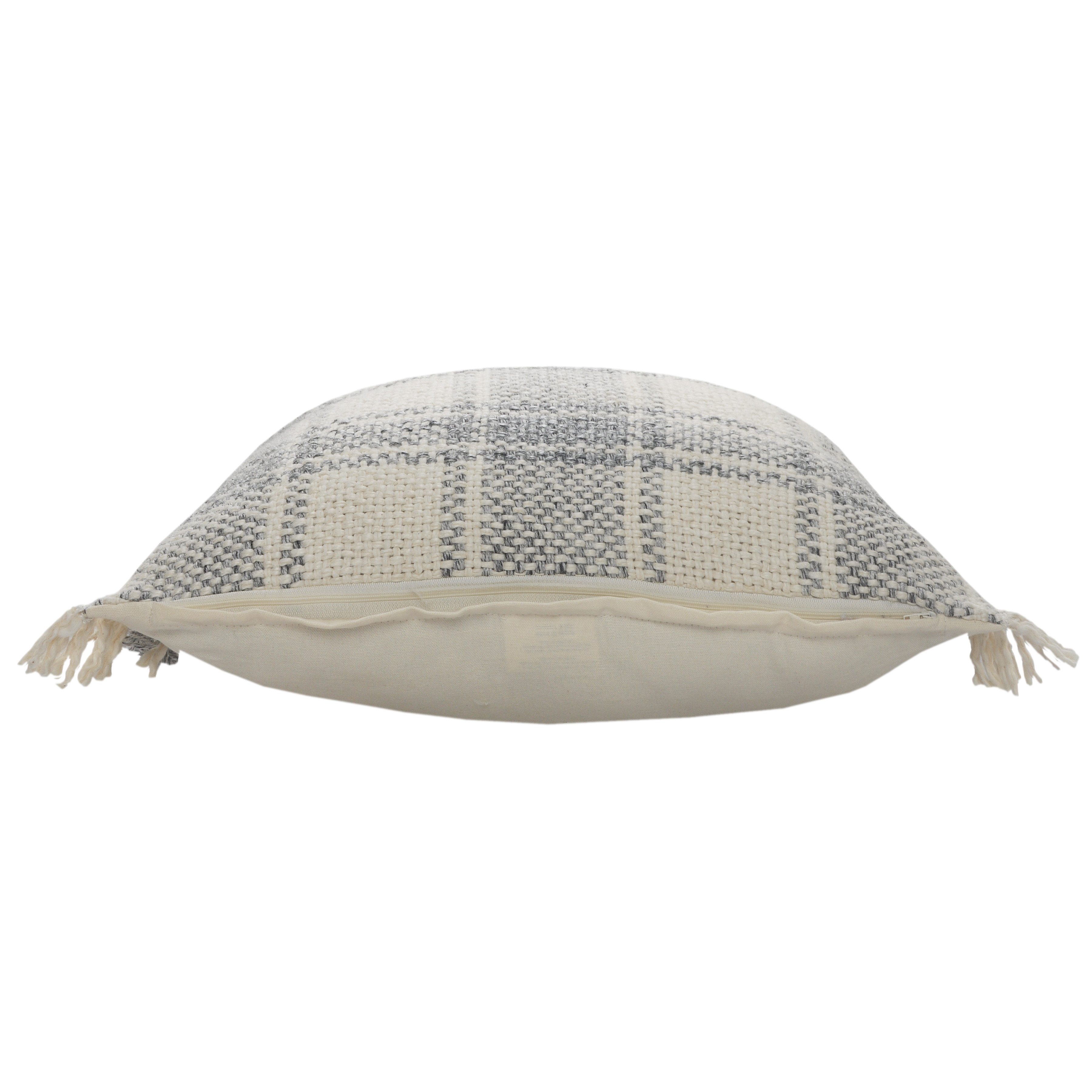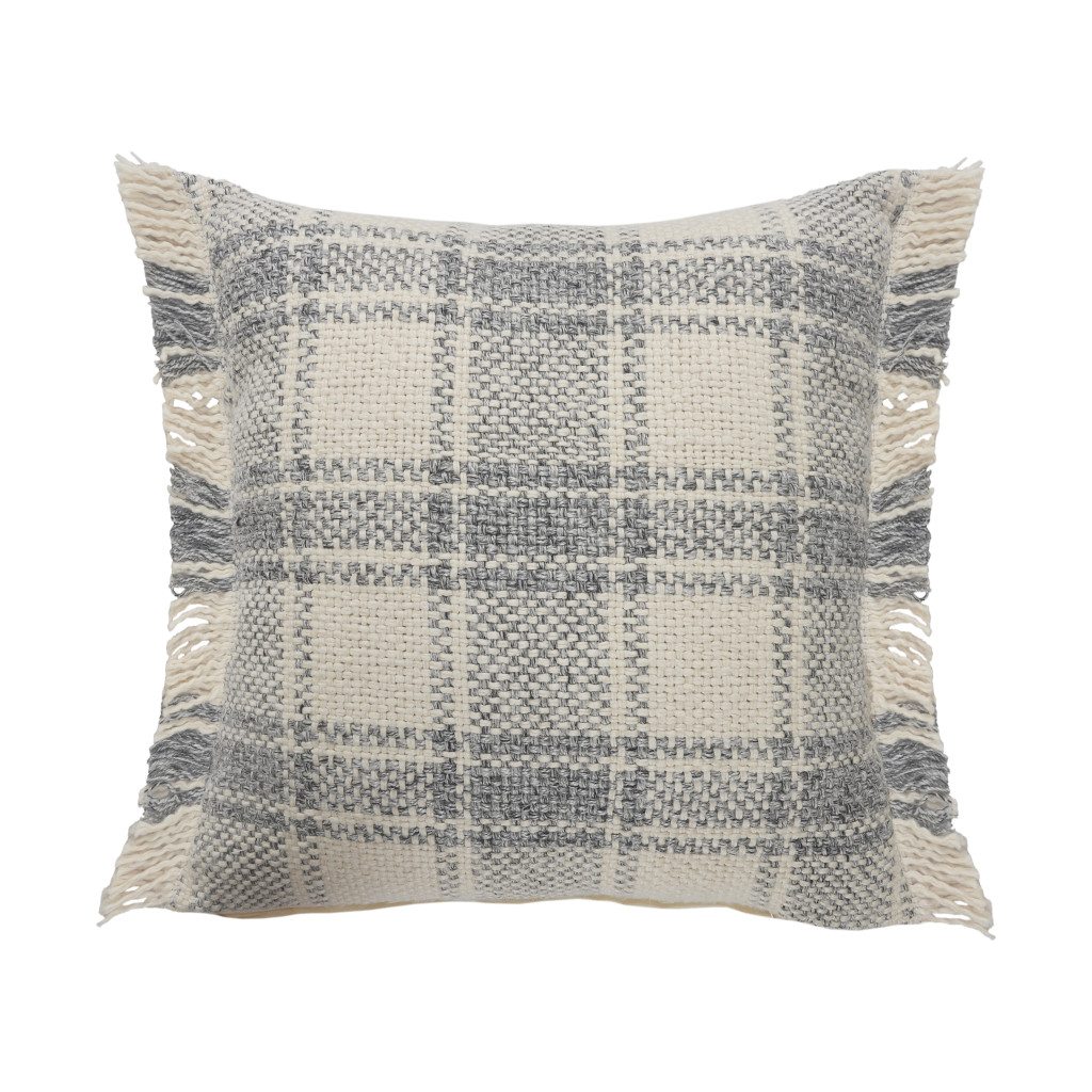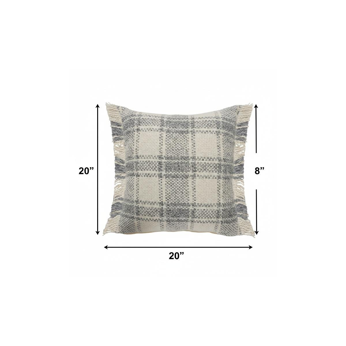 Add an air of fashion to your room and rejuvenate the space with this cute and fashionable 20-inch gray and cool gray plaid cotton blend throw pillow. Durable gray and cool gray cotton blend has been used to give this pillow a beautiful look that will stand the test of time. Decorative pillows are a great way to change up the look and feel of your space easily and quickly. A great decorative accessory to add color and dimension to your favorite chair, accent your sofa, or to use as part of your bed ensemble. 20.00-inch h x 20.00-inch w x 8.00-inch d.