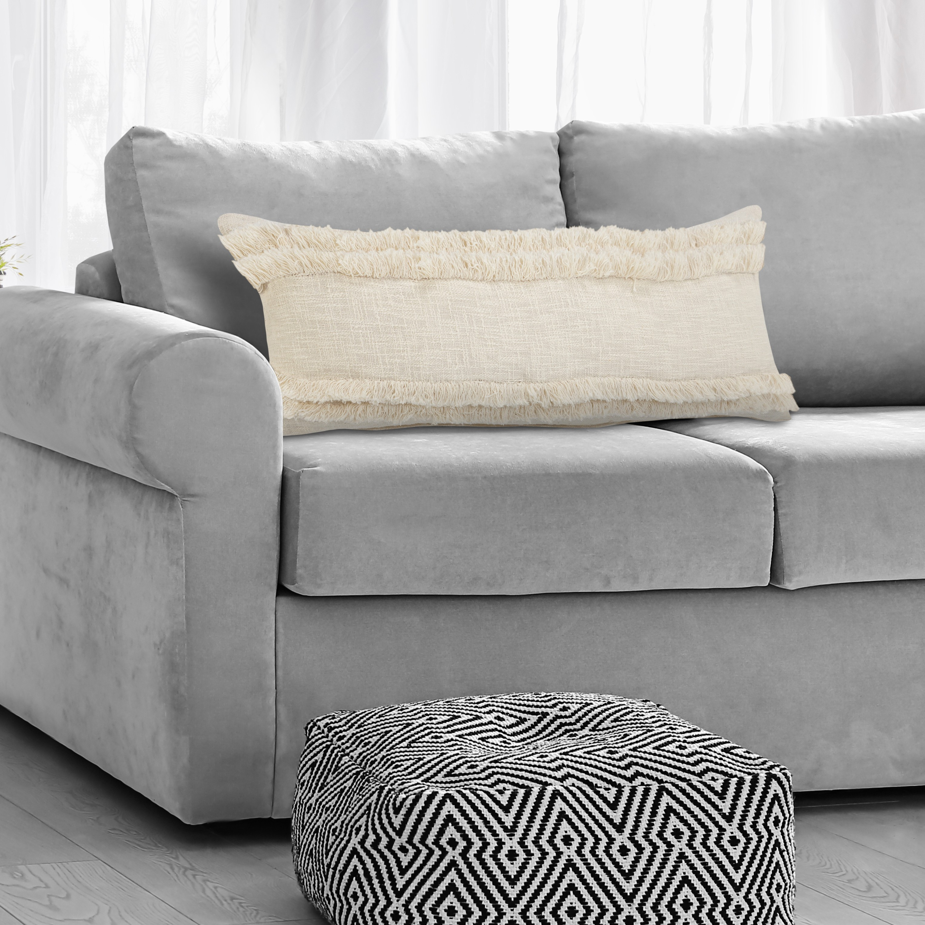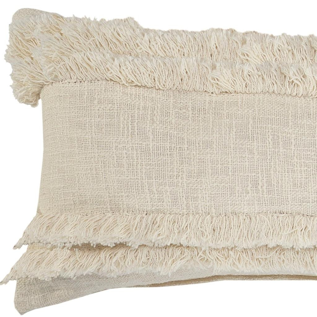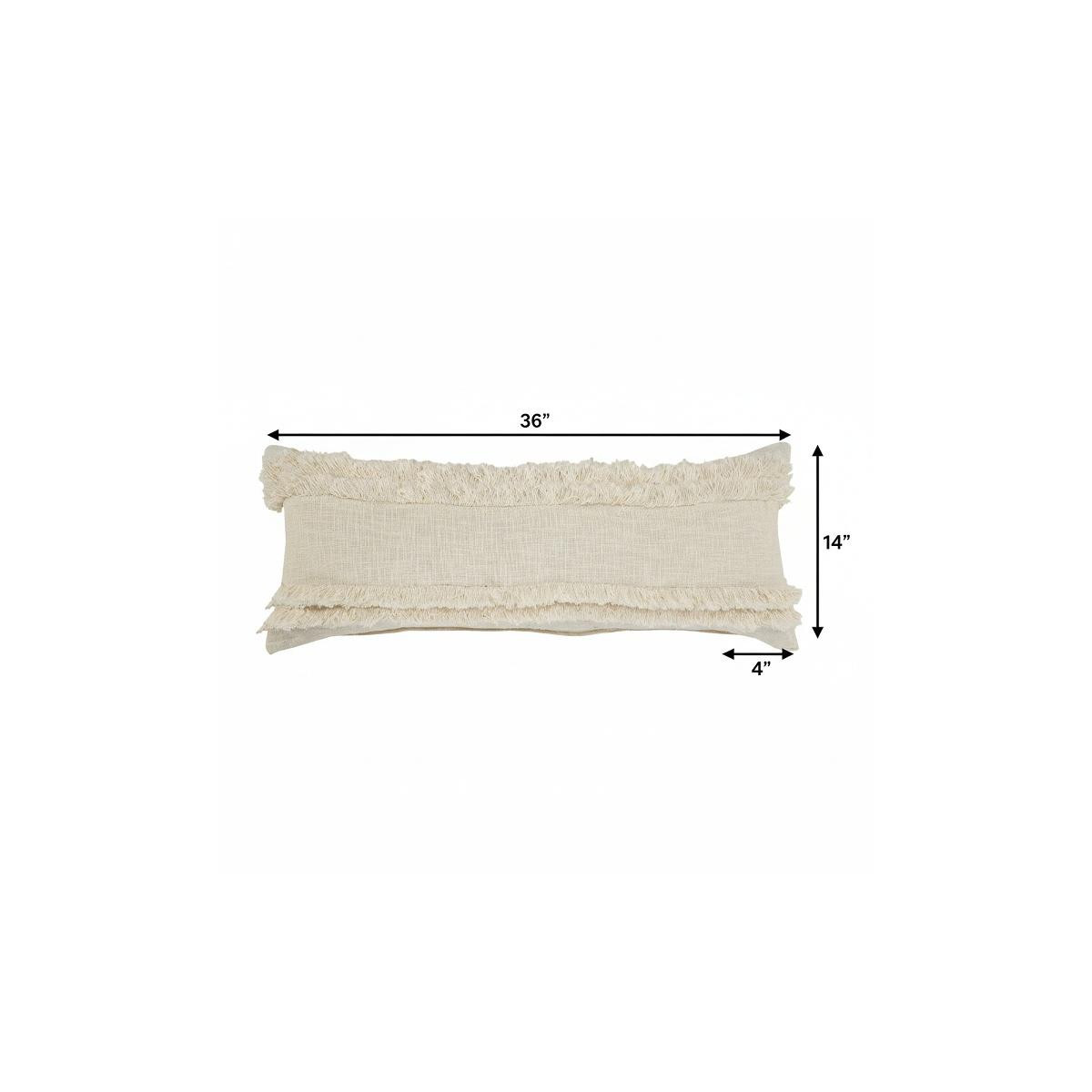 This 36-inch x 14-inch white and ivory lumbar striped cotton throw pillow cover will add a beautiful decorative accent to your decor. This soft and durable decorative pillow cover is expertly made of high grade, long lasting cotton in a white and ivory coloration. Pillow covers are a good idea for anyone that loves to decorate or accent their space with color and texture. Combine with your own fill or insert to add decoration and dimension to your favorite chair, accent your sofa, or to use as part of your bed ensemble. 36.00-inch h x 14.00-inch w x 4.00-inch d.
