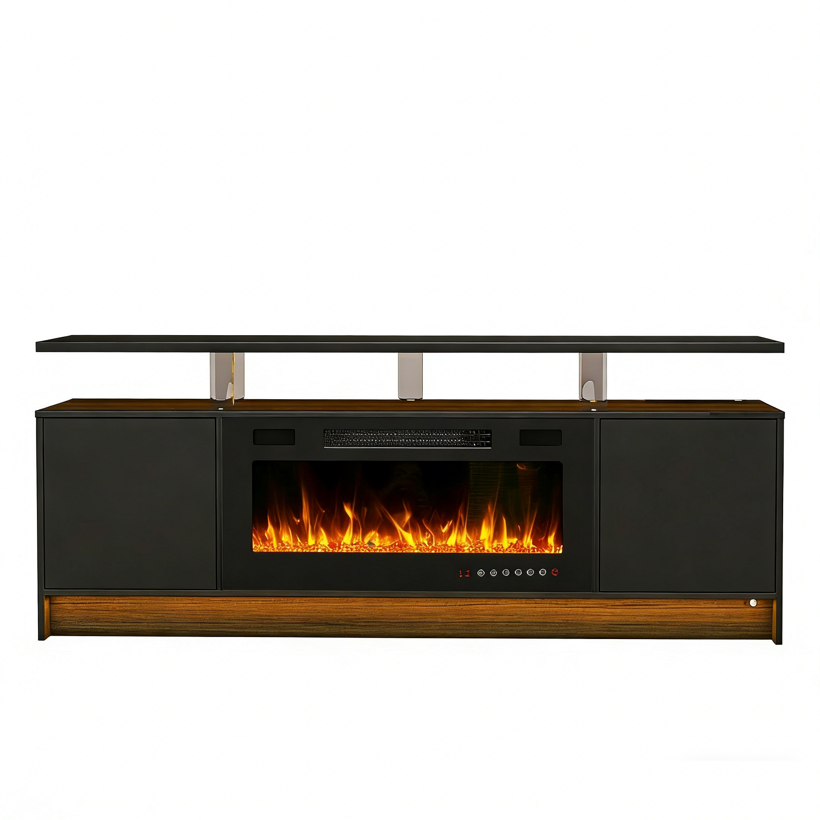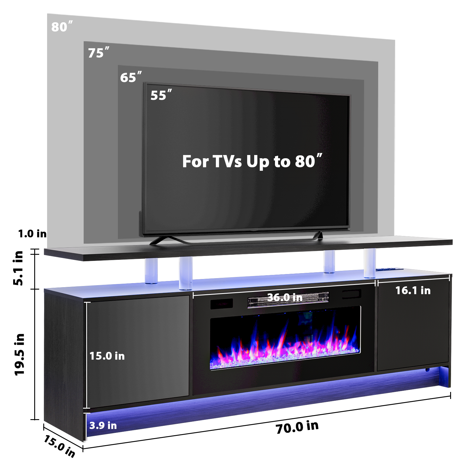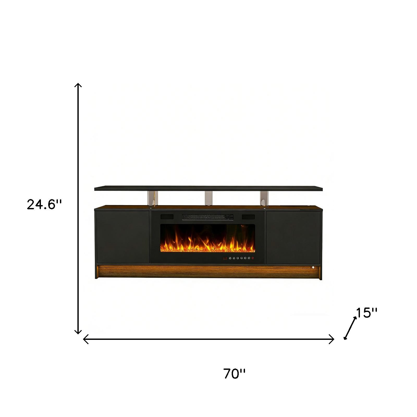 Practical, space saving, and good looking, this 70-inch black wood fireplace entertainment center with fireplace is a versatile media storage solution. Designed to be sturdy and long lasting, this versatile furniture piece is crafted from durable manufactured wood and features a modern design style. Create a fabulous and comfortable media experience as you watch tv on this stand that is also a warm and cozy electric fireplace. Convert your room into a special place with your favorite collectibles and tv accessories that is suitable for living room, bedroom, or office. 24.60-inch h x 70.00-inch w x 15.00-inch d.