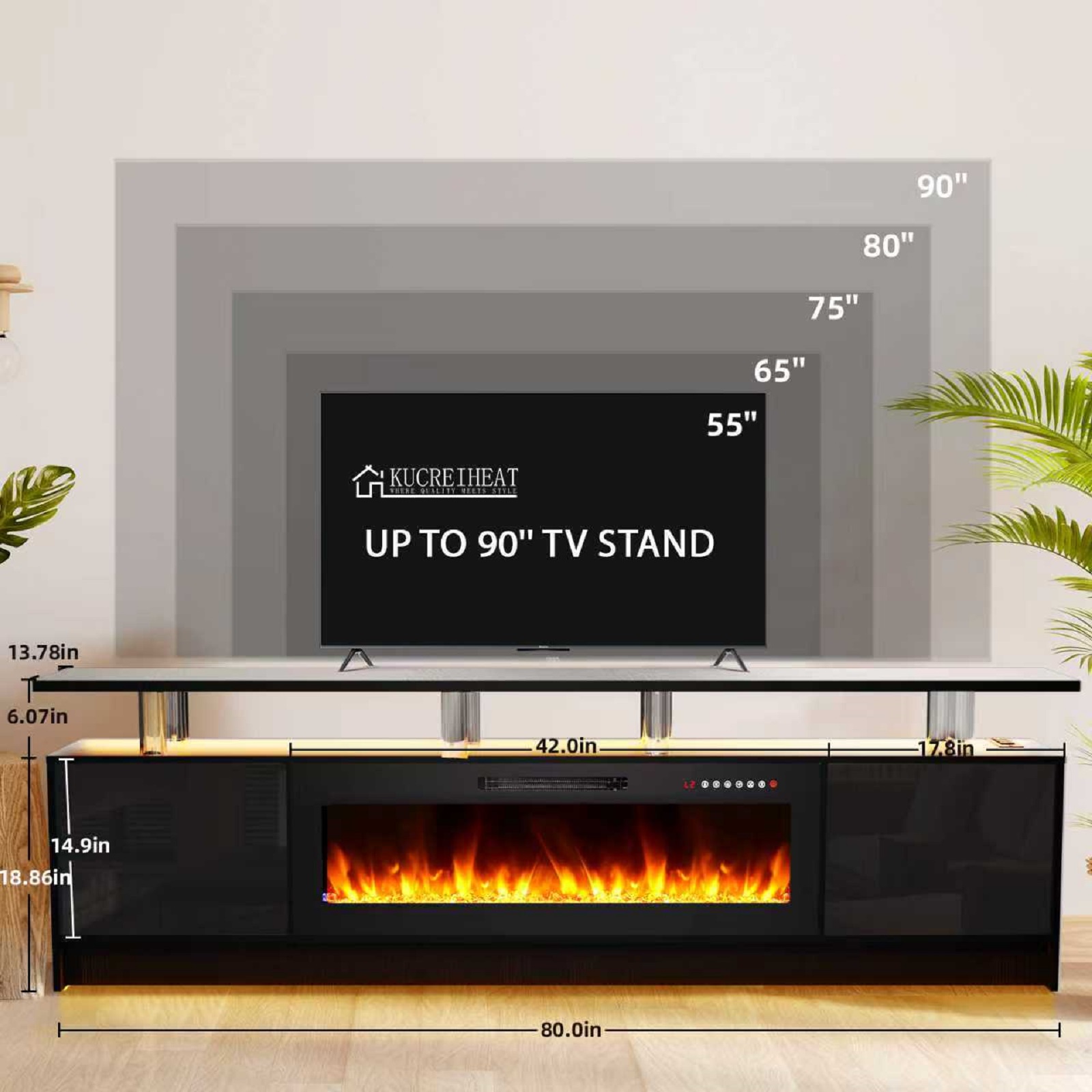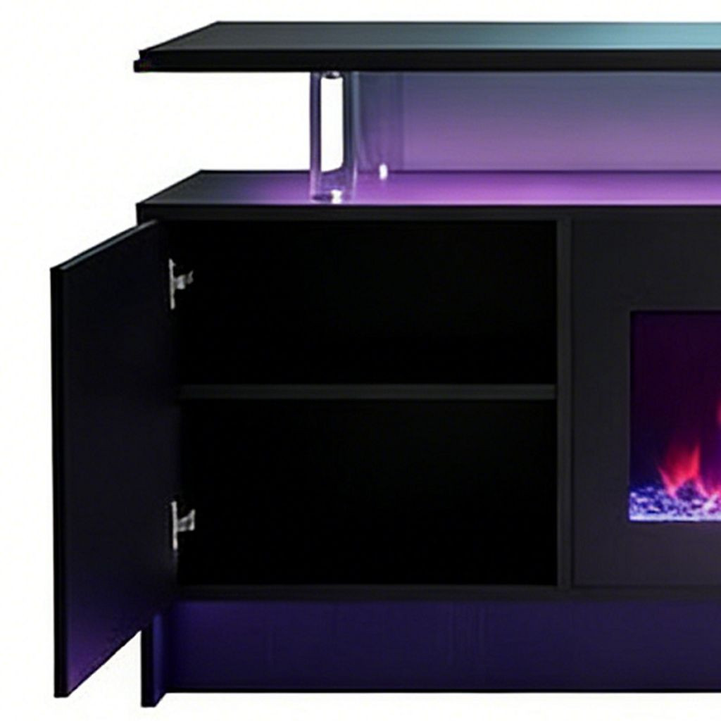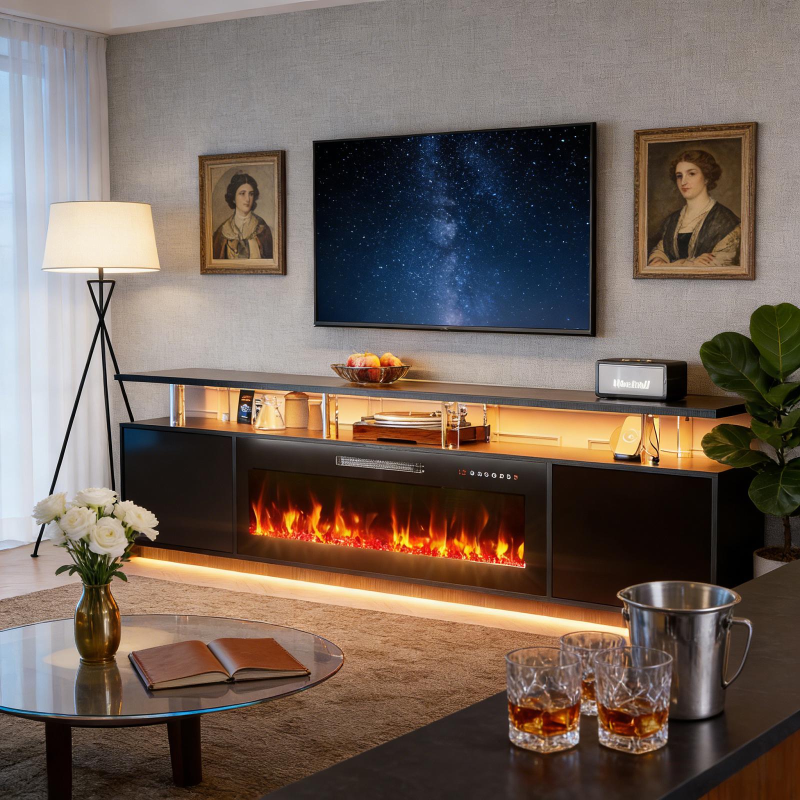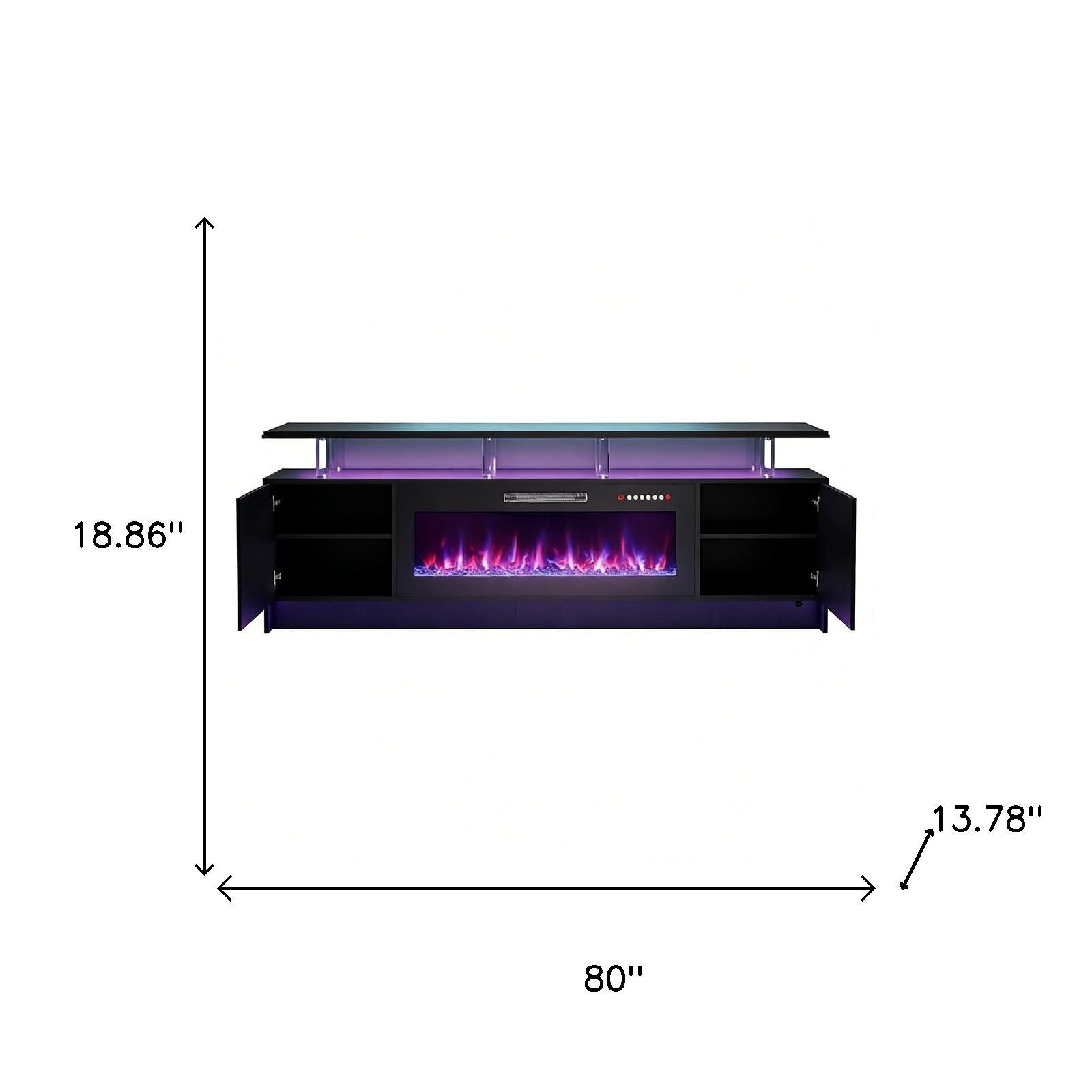 Experience entertainment right in the comfort of your own home with the 80-inch black wood fireplace entertainment center with fireplace. Designed to be sturdy and long lasting, this versatile furniture piece is crafted from durable manufactured wood and features a modern design style. Create a fabulous and comfortable media experience as you watch tv on this stand that is also a warm and cozy electric fireplace. Ideal for tv placement and storage in your living room, bedroom or office. 18.86-inch h x 80.00-inch w x 13.78-inch d.