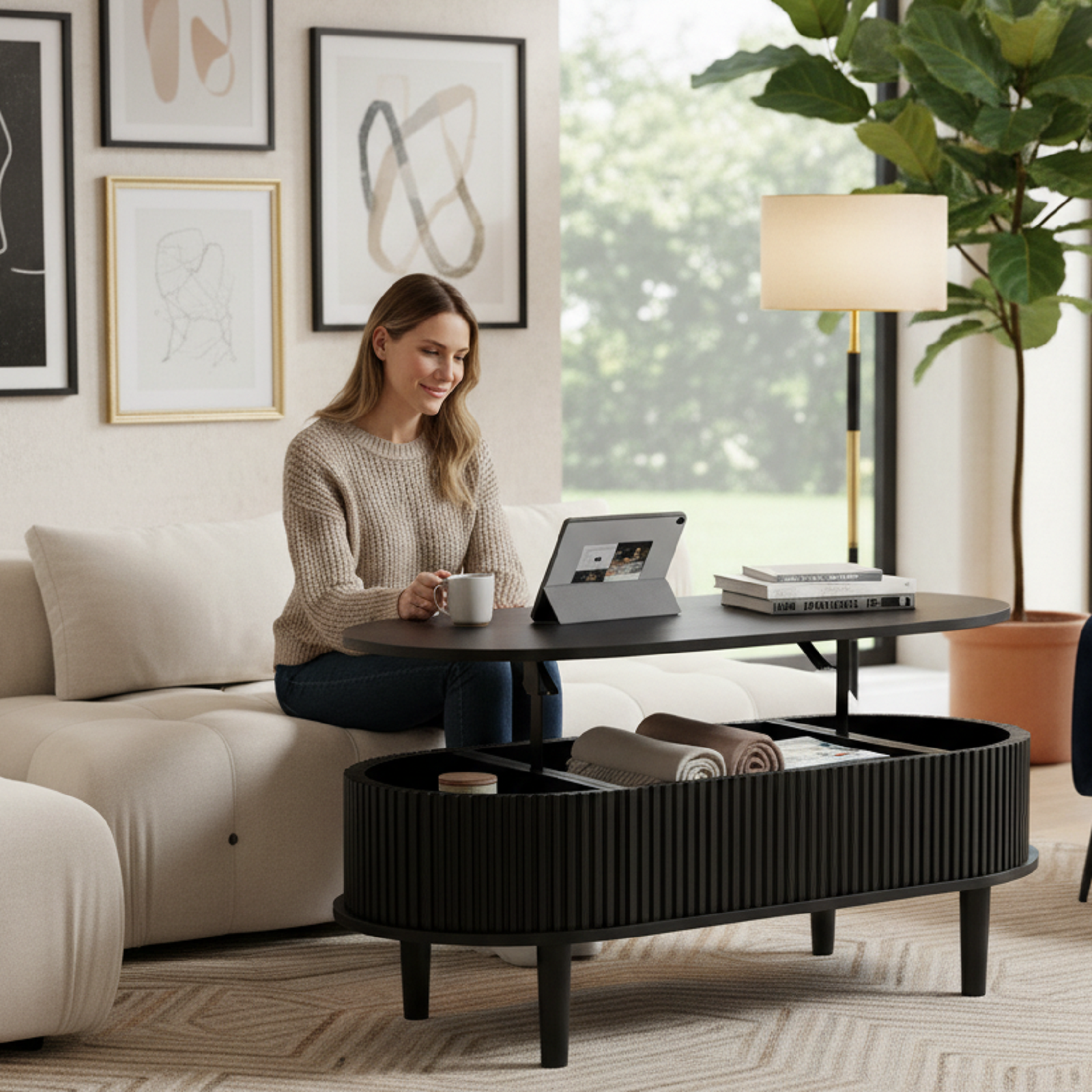 wood oval lift coffee table, oval lift coffee table, lift coffee table, black wood oval lift coffee, 39" black wood oval lift |