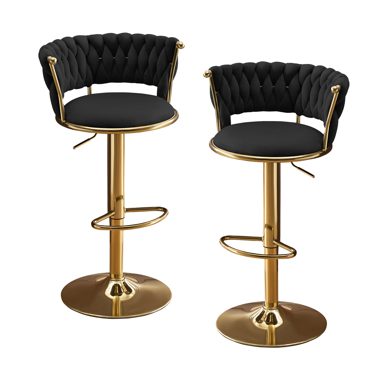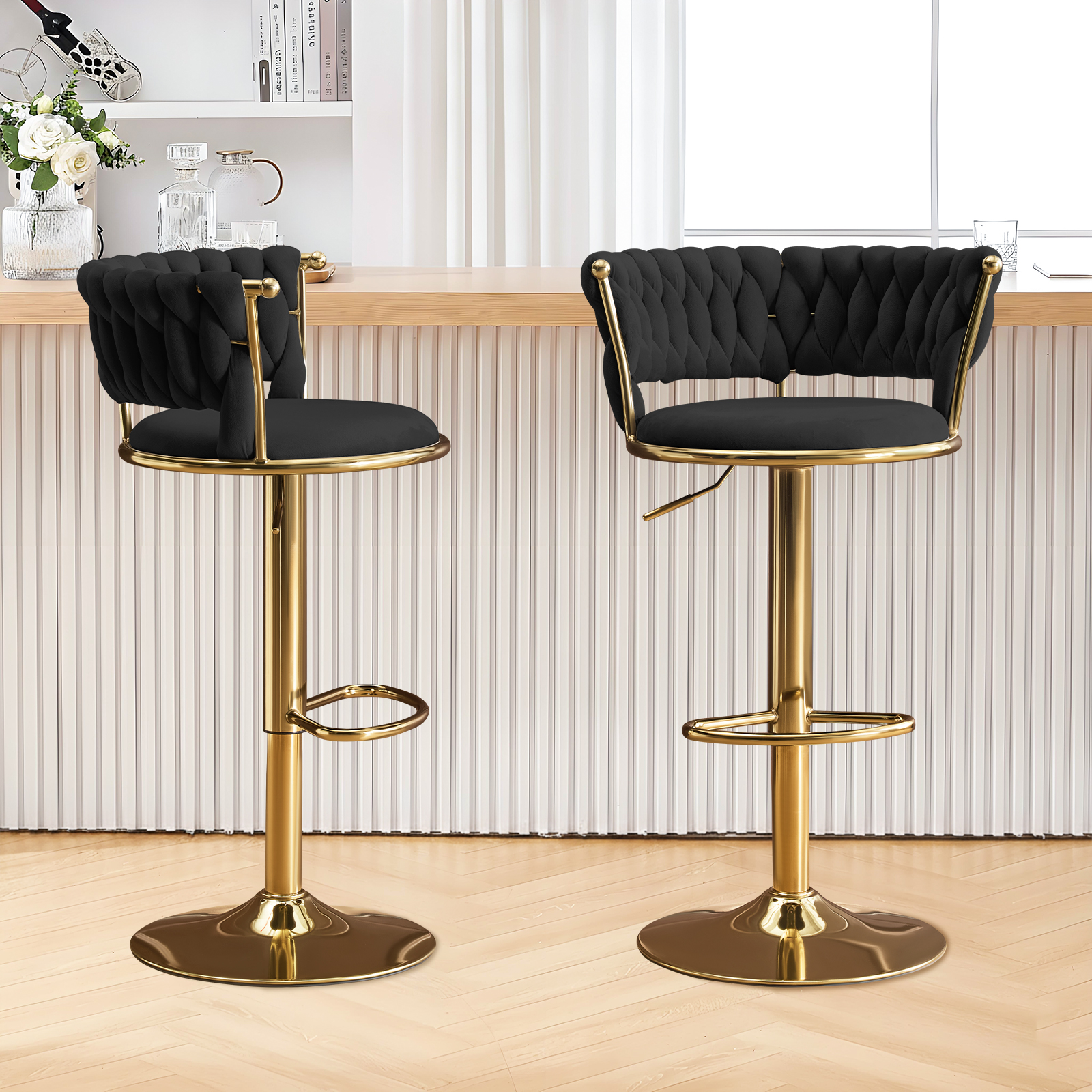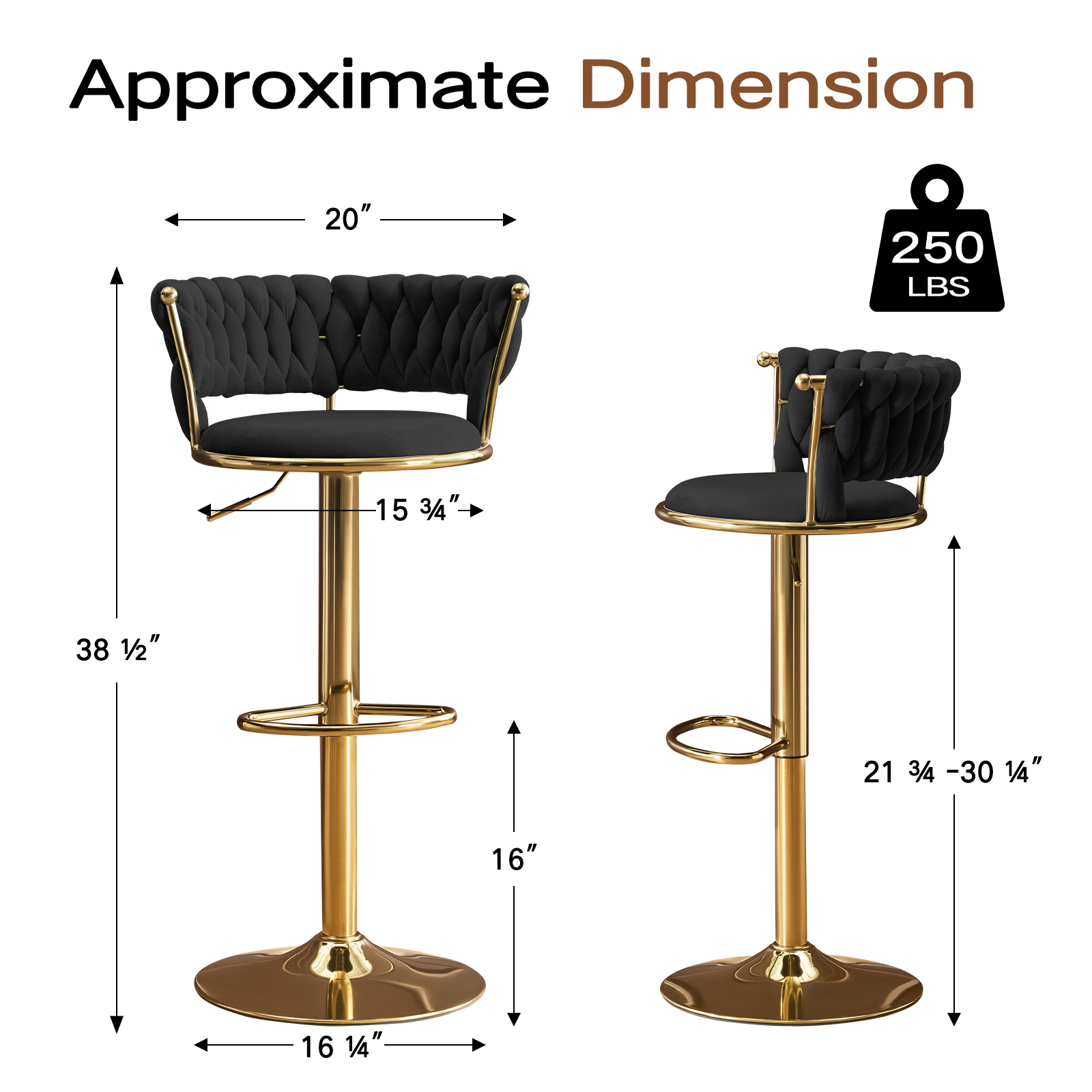 adjustable height swivel bar chairs, swivel bar chairs, height swivel bar chairs, velvet metal low adjustable height, set black gold velvet |