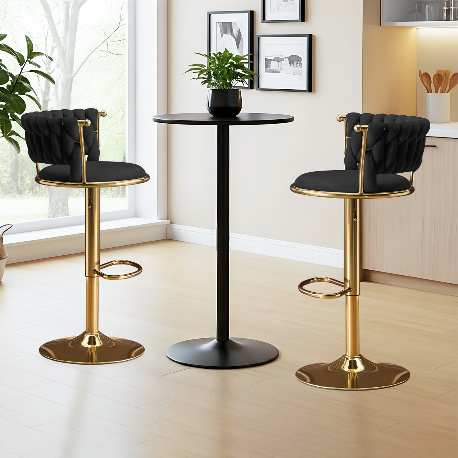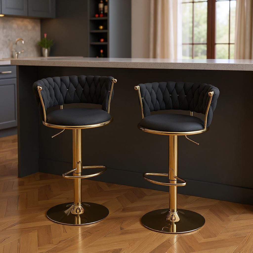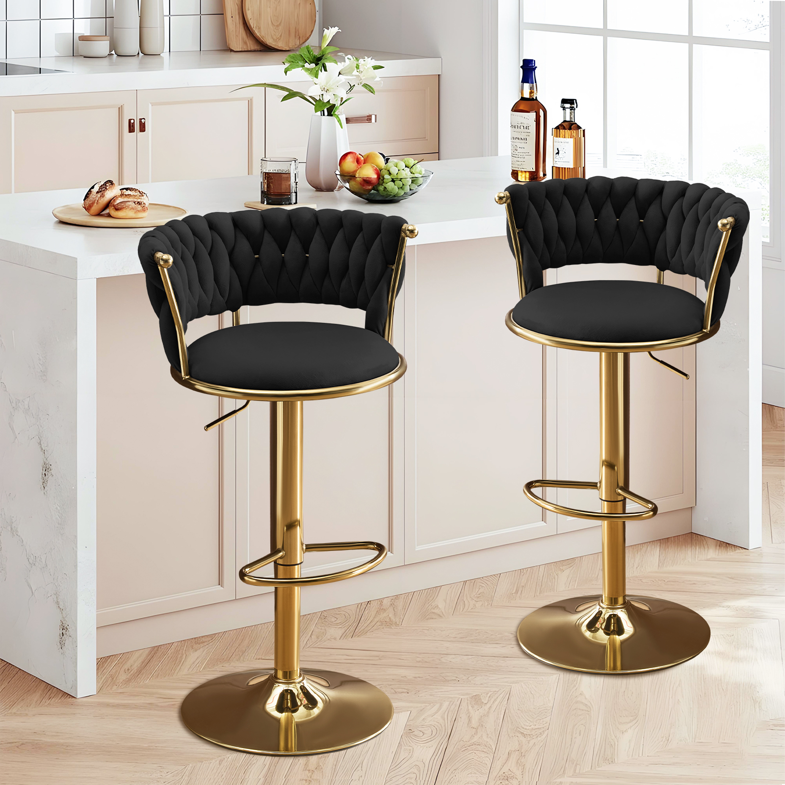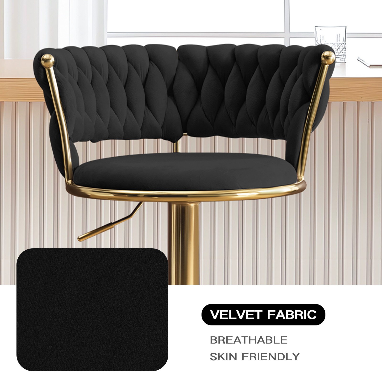 adjustable height swivel bar chairs, swivel bar chairs, height swivel bar chairs, velvet metal low adjustable height, set black gold velvet |