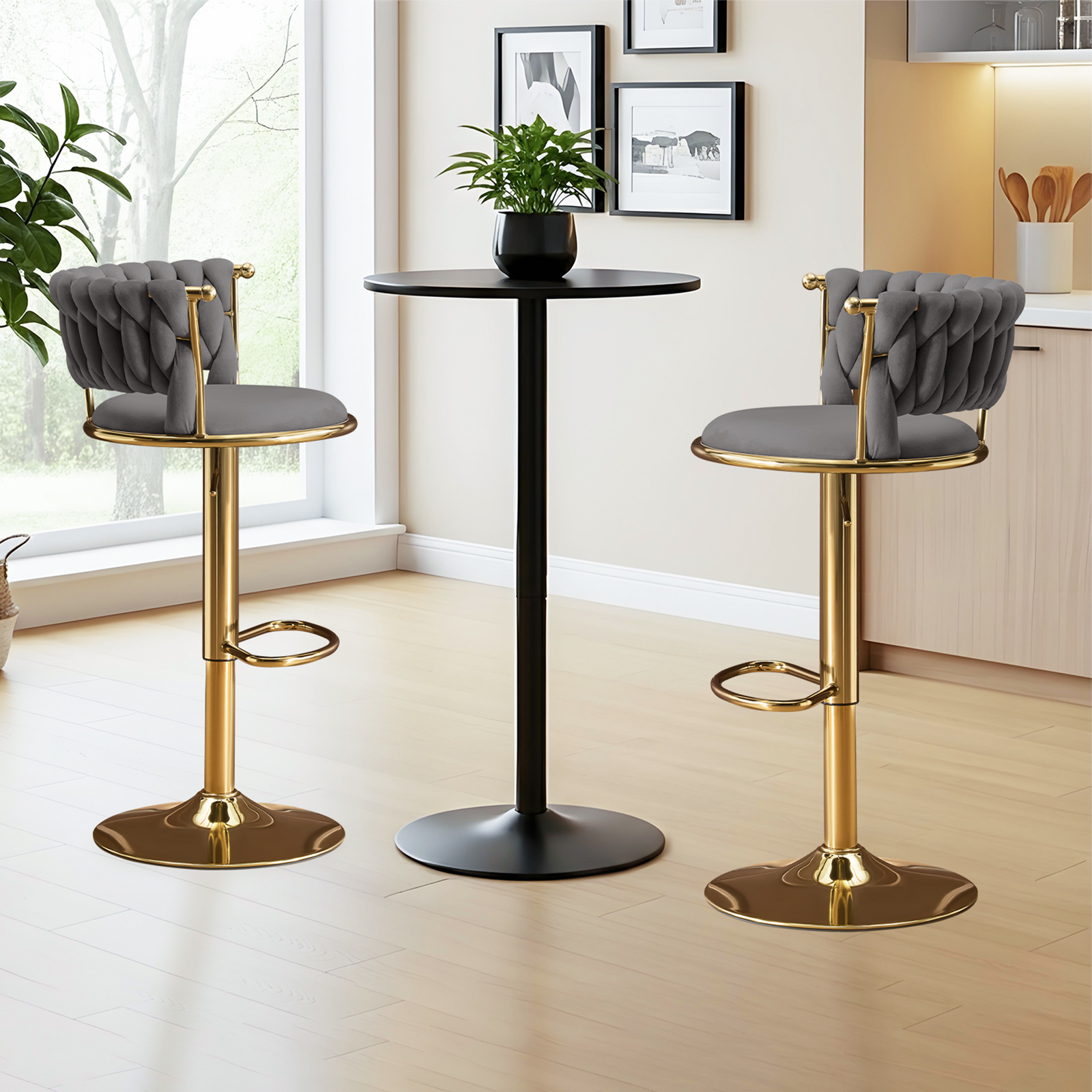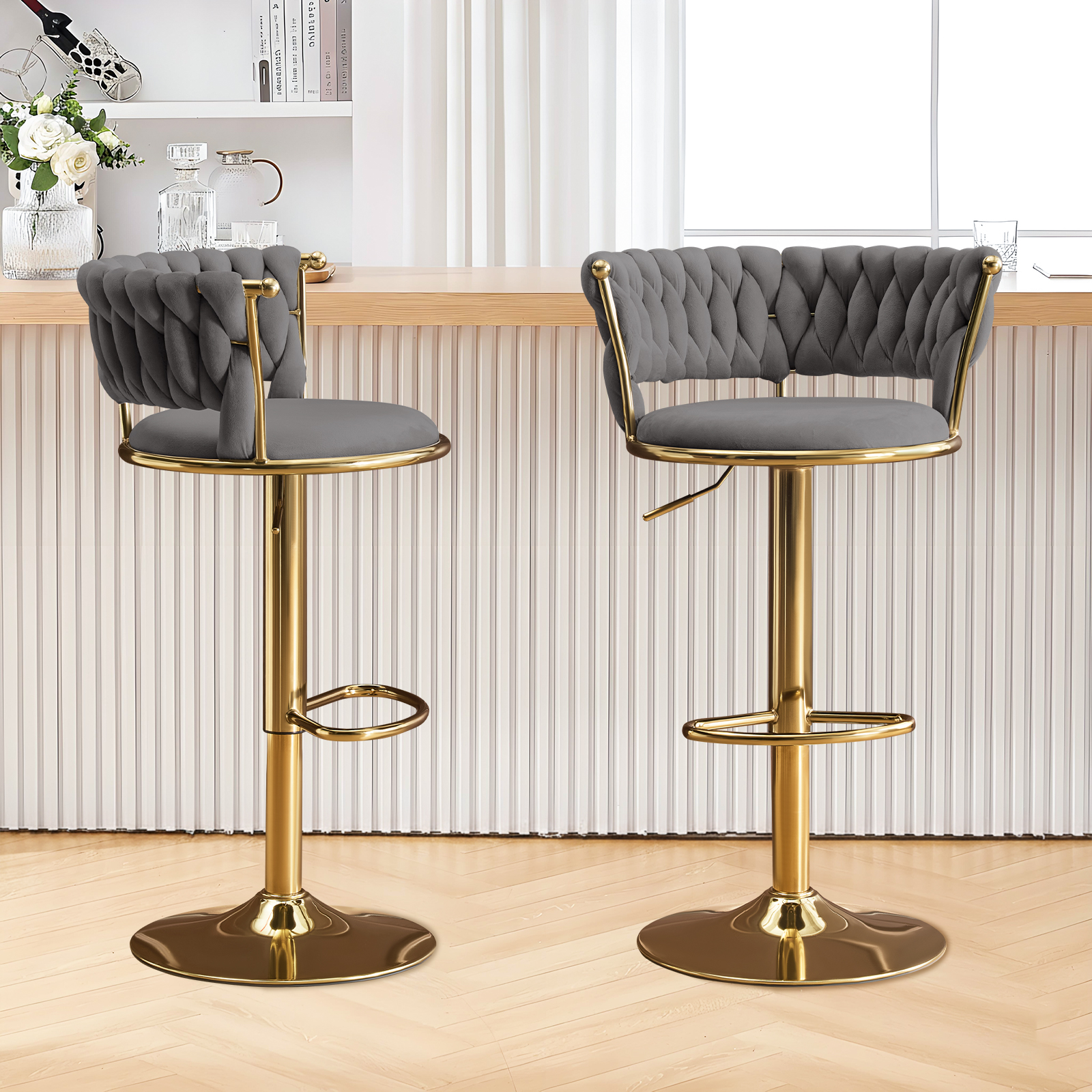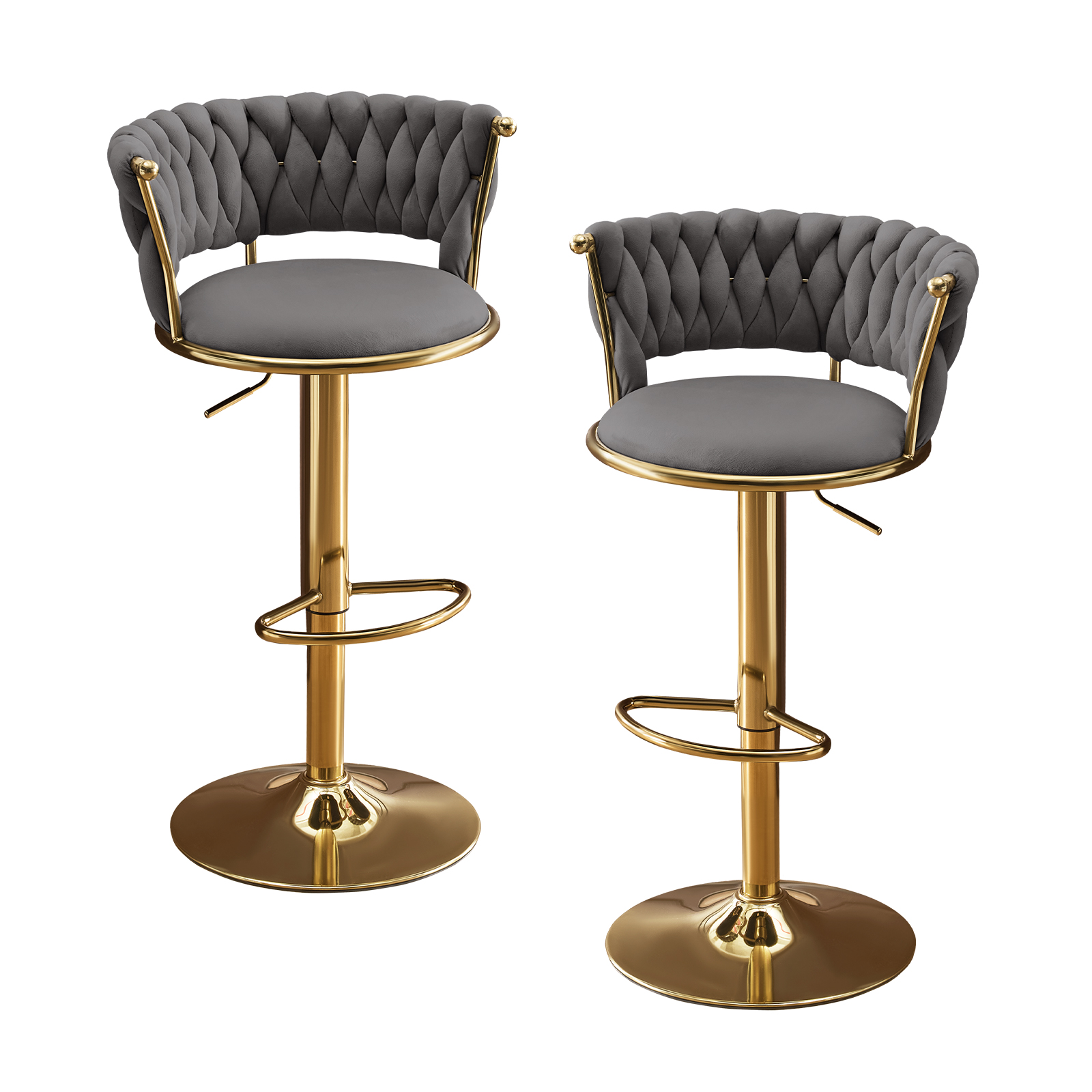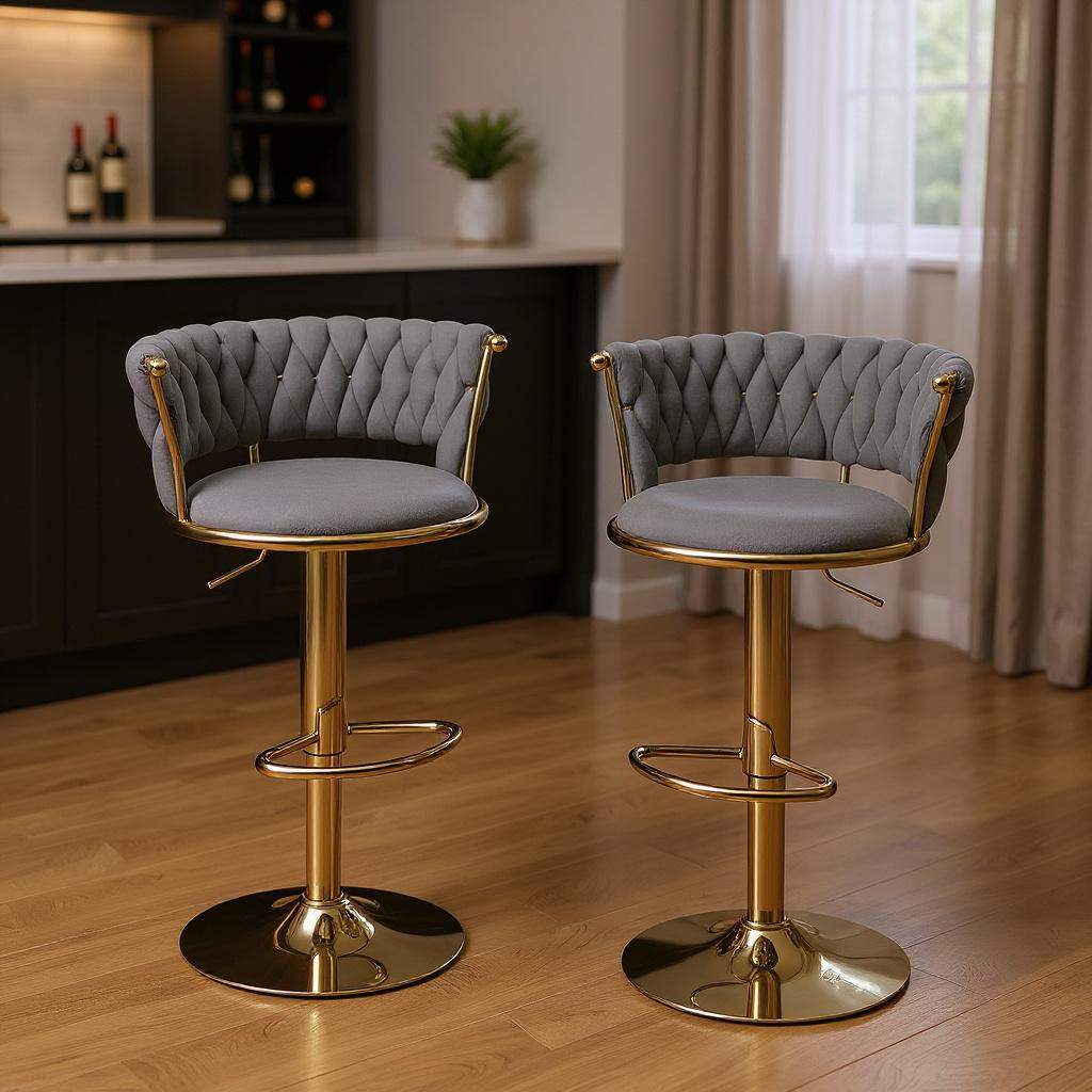 adjustable height swivel bar chairs, swivel bar chairs, height swivel bar chairs, velvet metal low adjustable height, set gray gold velvet |
