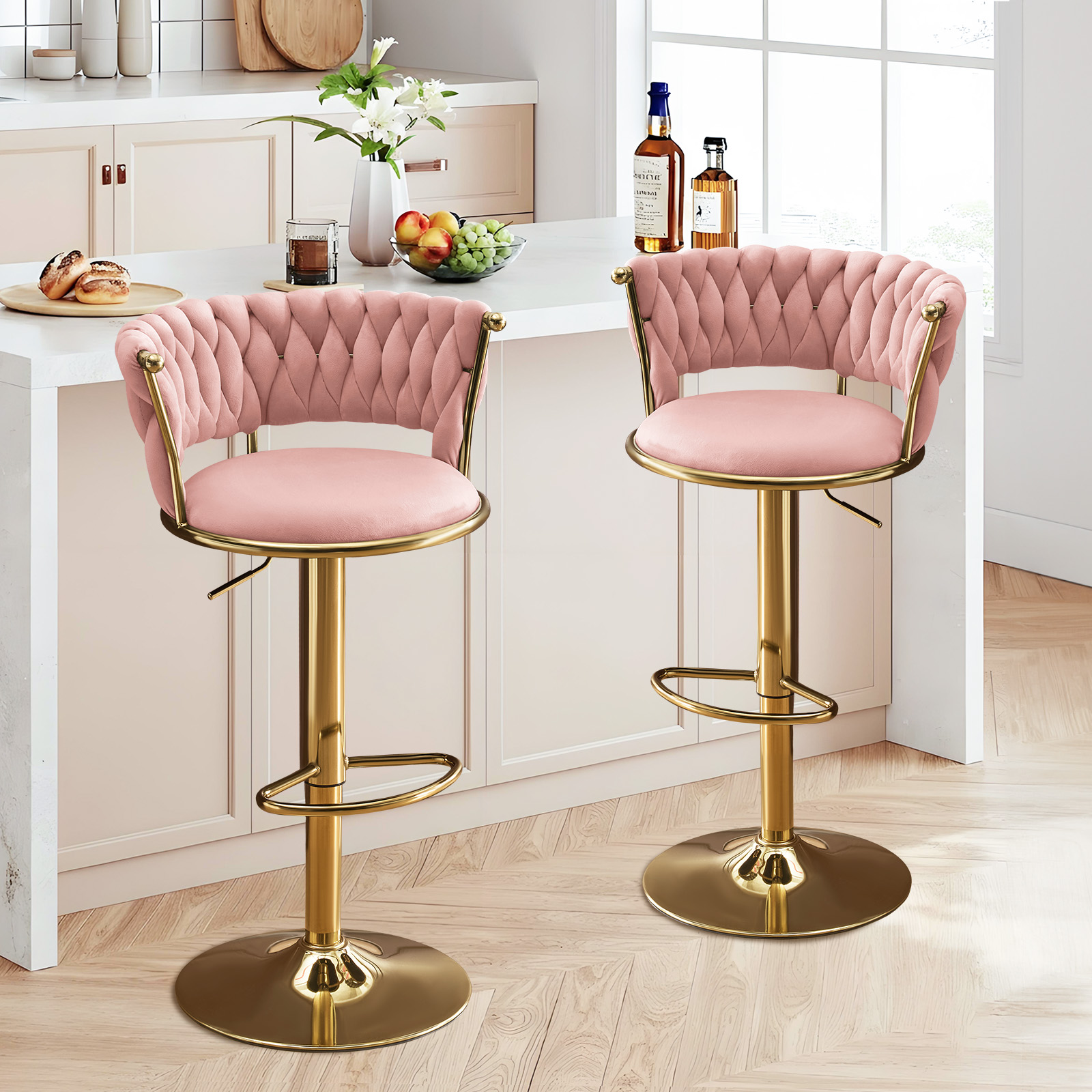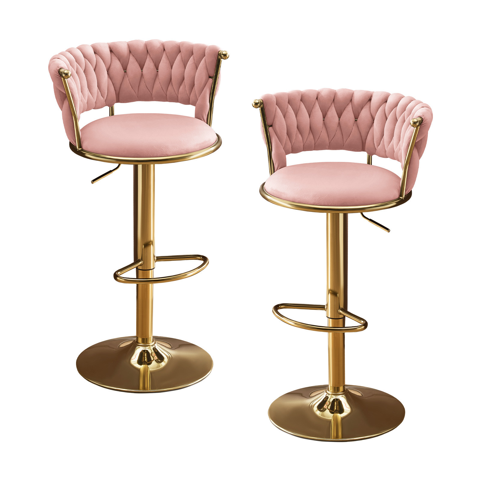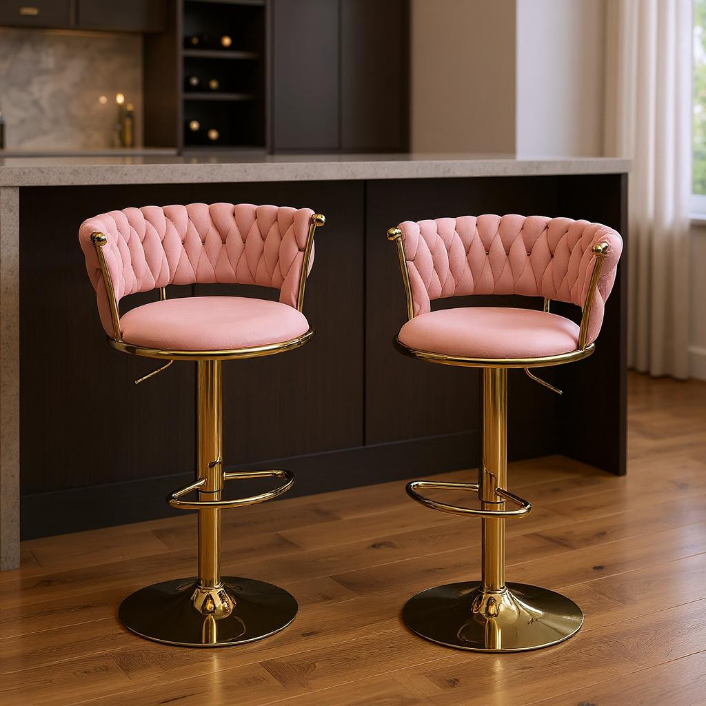 adjustable height swivel bar chairs, swivel bar chairs, height swivel bar chairs, set pink gold velvet, velvet metal low adjustable height |