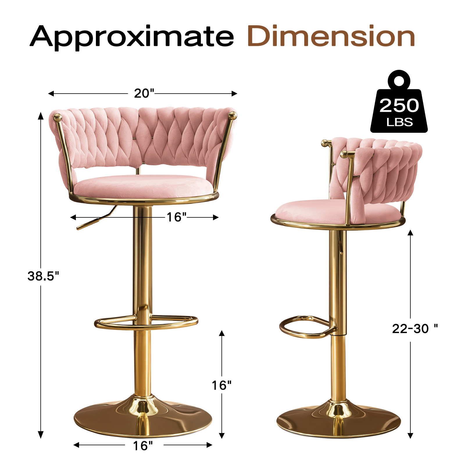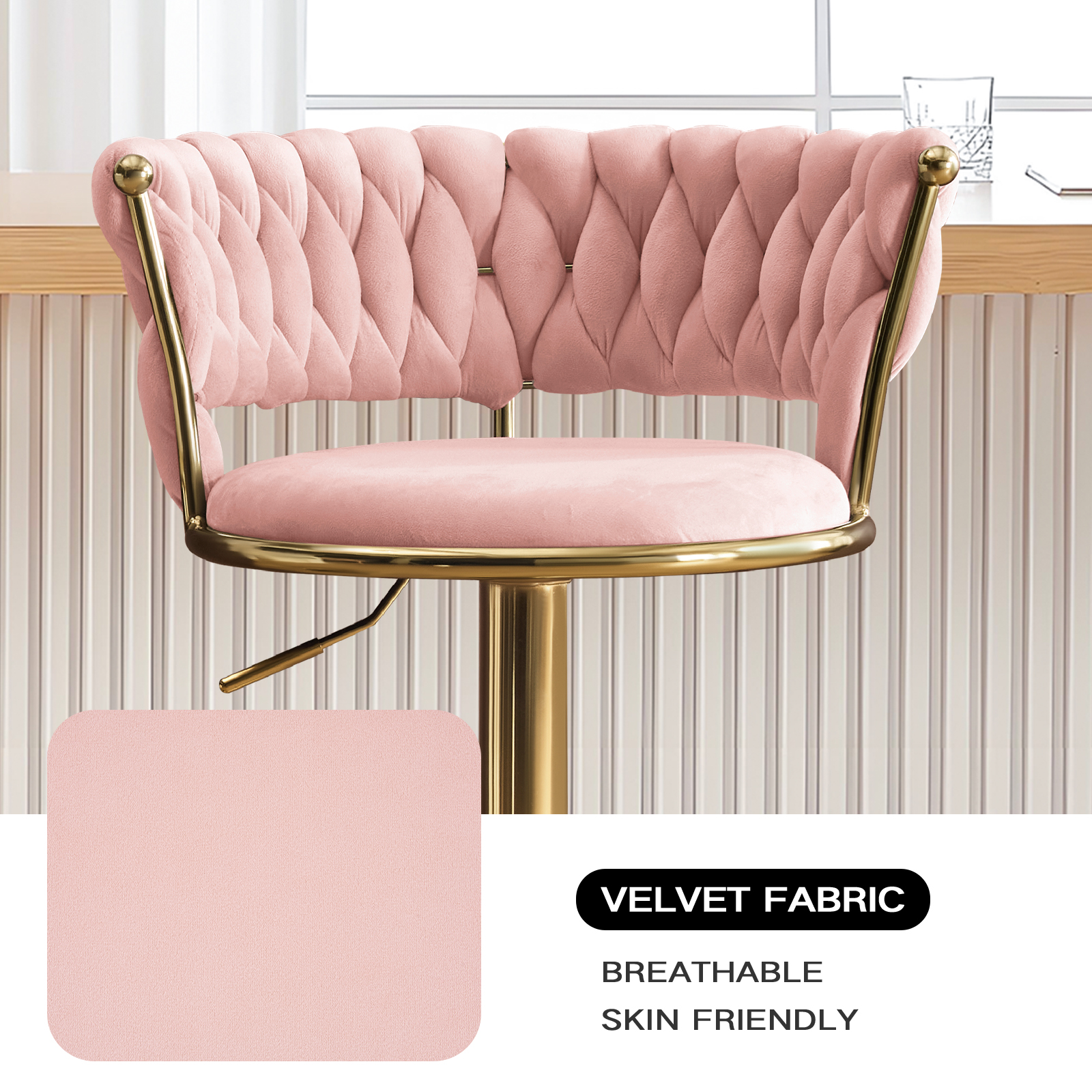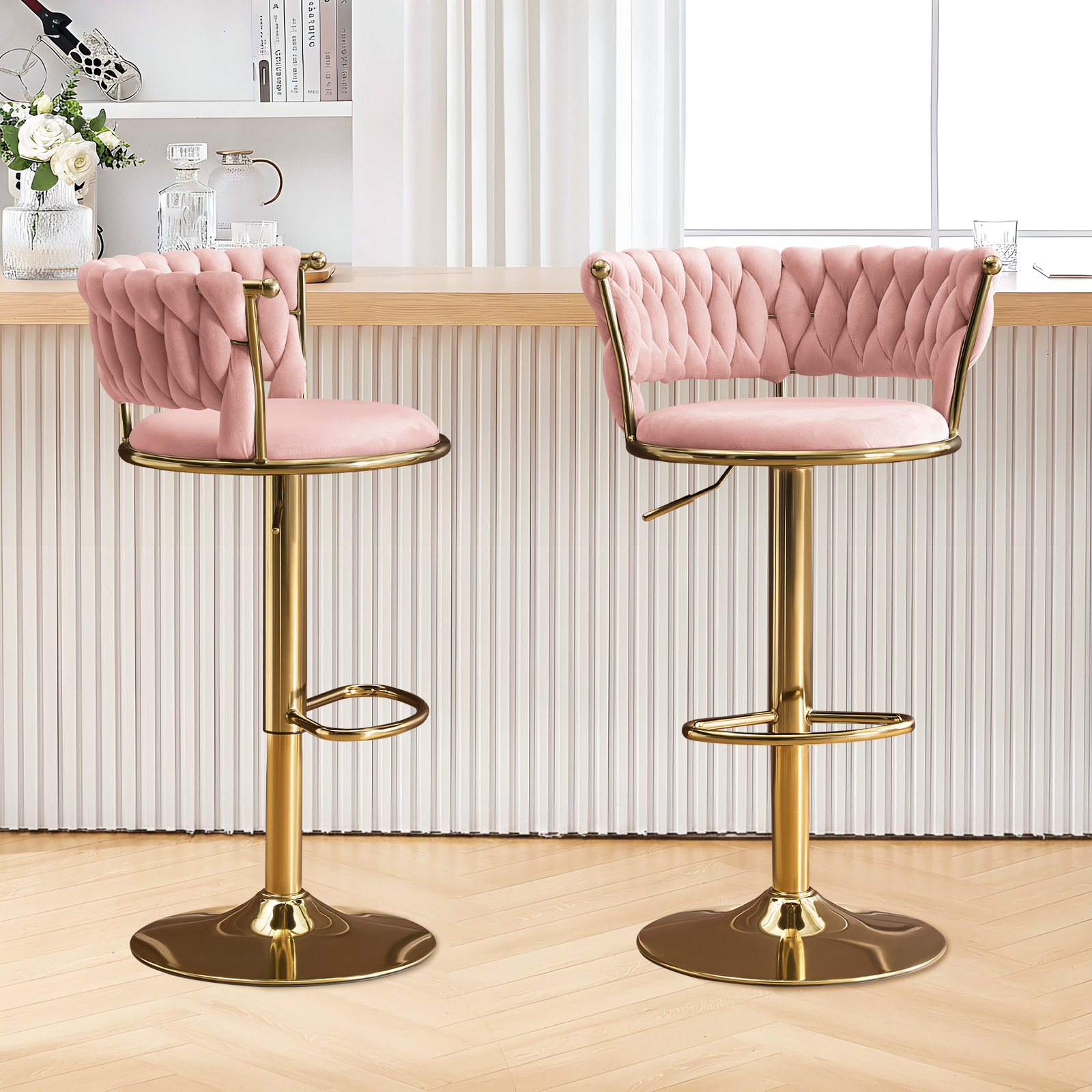 adjustable height swivel bar chairs, swivel bar chairs, height swivel bar chairs, set pink gold velvet, velvet metal low adjustable height |