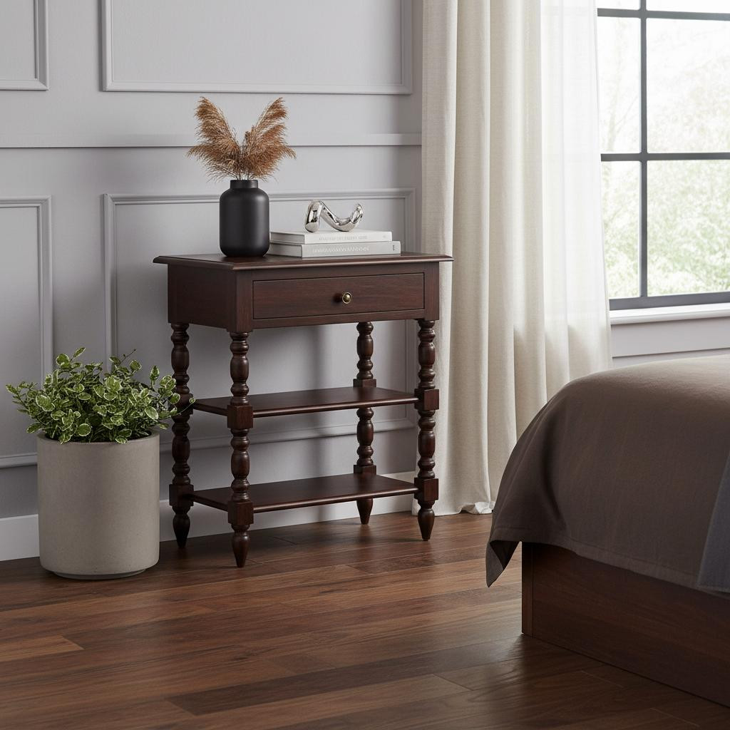 Make your room functional and visually enticing with this masterful 24-inch brown solid wood two drawer dresser. This horizontal standard dresser has a convenient and wide top area for your getting ready needs and supplies. This dresser is built to last from high quality solid wood,. 27.60-inch h x 23.60-inch w x 13.80-inch d.