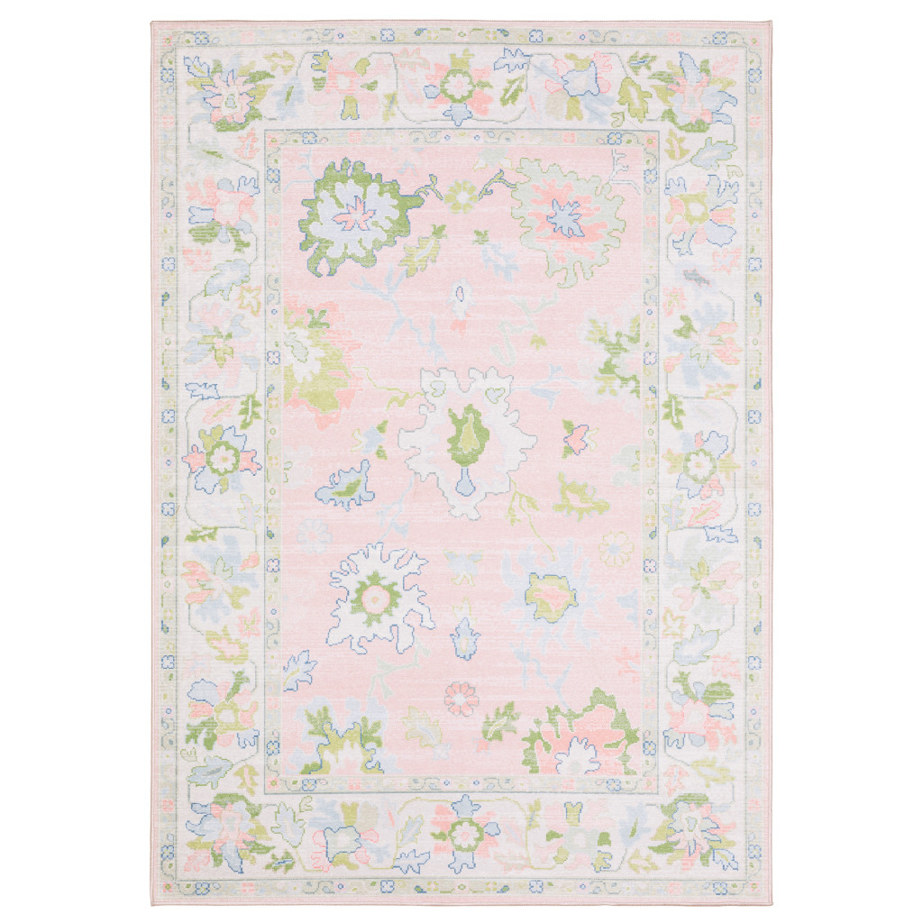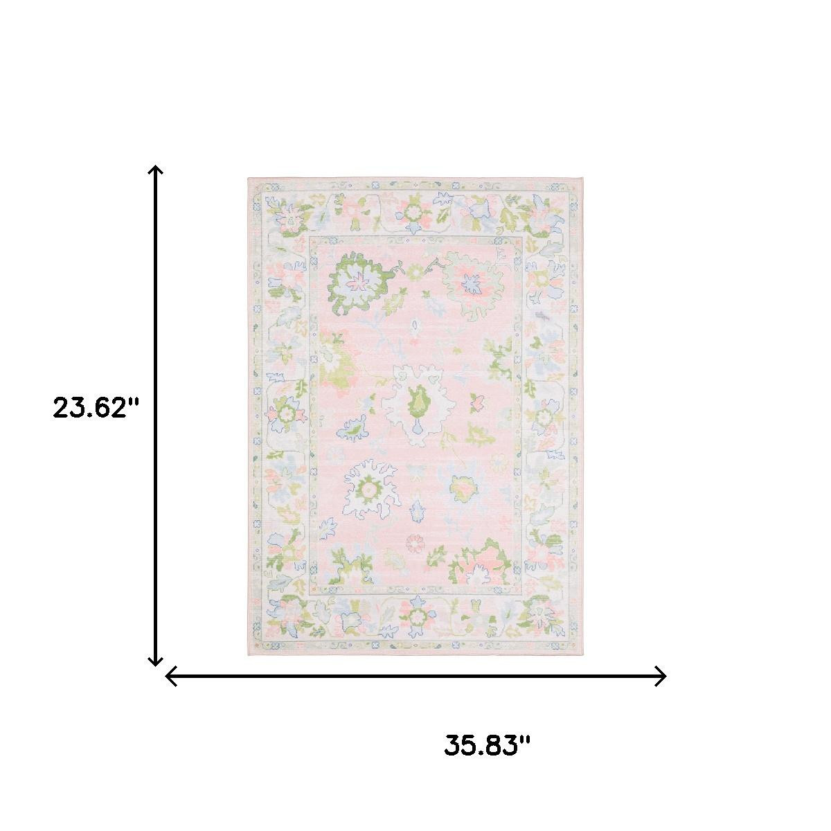 Add some artistry to your room with this 2-foot x 3-foot pink and green oriental washable area rug. Ideal for spaces with kids and pets, this rug is stain resistant to help repel dirt and spilled liquids. Built to last, this rug crafted from polyester fibers is known for its durability and long lasting appeal. This smaller sized, traditional styled rug is just what you need for your walkway, bedside, in front of door, cabinet, refrigerator, or chair. 23.62-inch h x 35.83-inch w x 0.12-inch d.