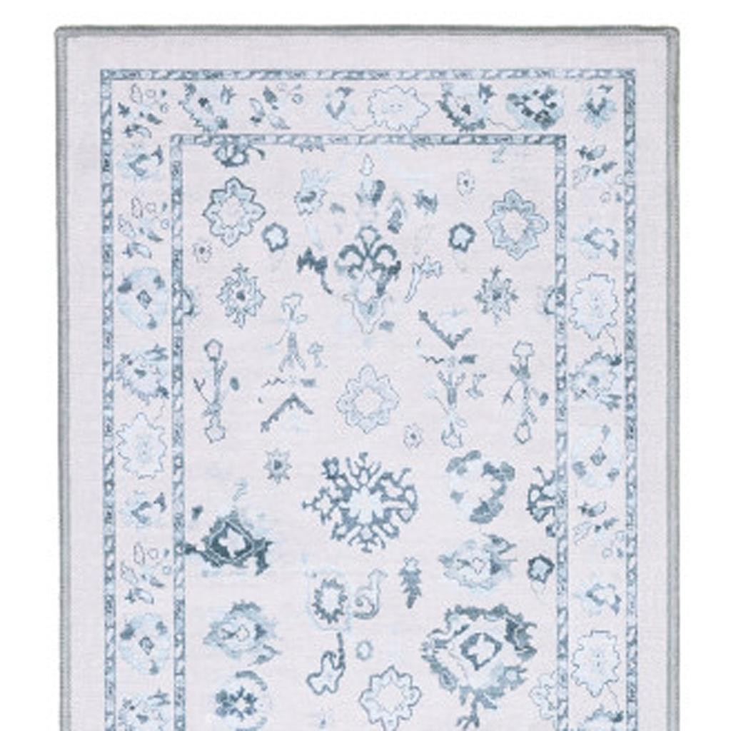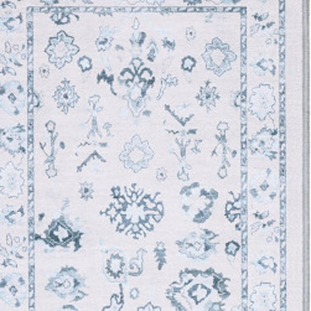 TRADITIONAL ORIENTAL RUG, MACHINE WASHABLE PRINTED BASE, IVORY BLUE POLYESTER, NON-SLIP BACKING ADDISON CARPET, ORIENTAL DISTRESSED PATTERNS, TRADITIONAL BOHEMIAN CASUAL STYLE MAT, LOW PROFILE CONSTRUCTION |