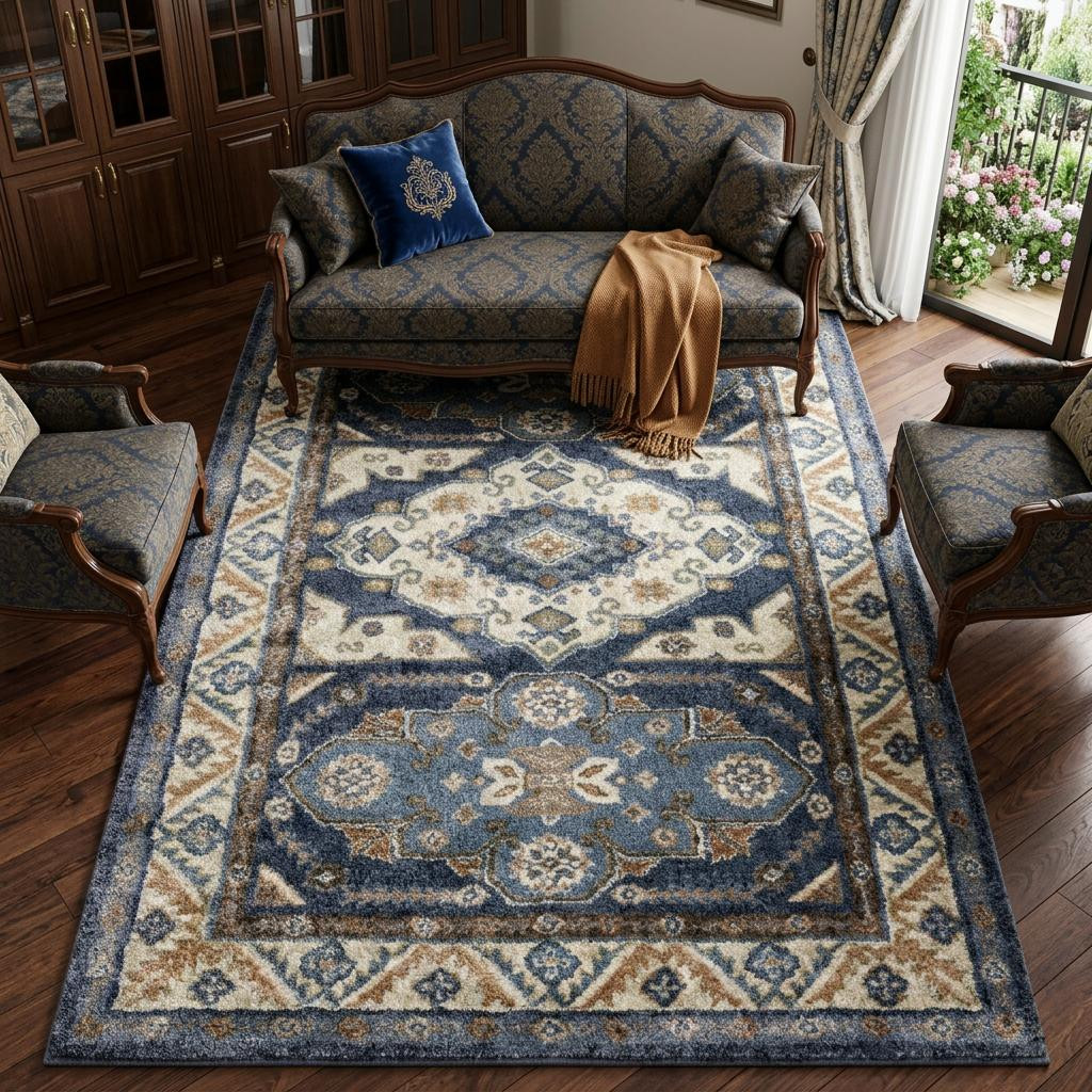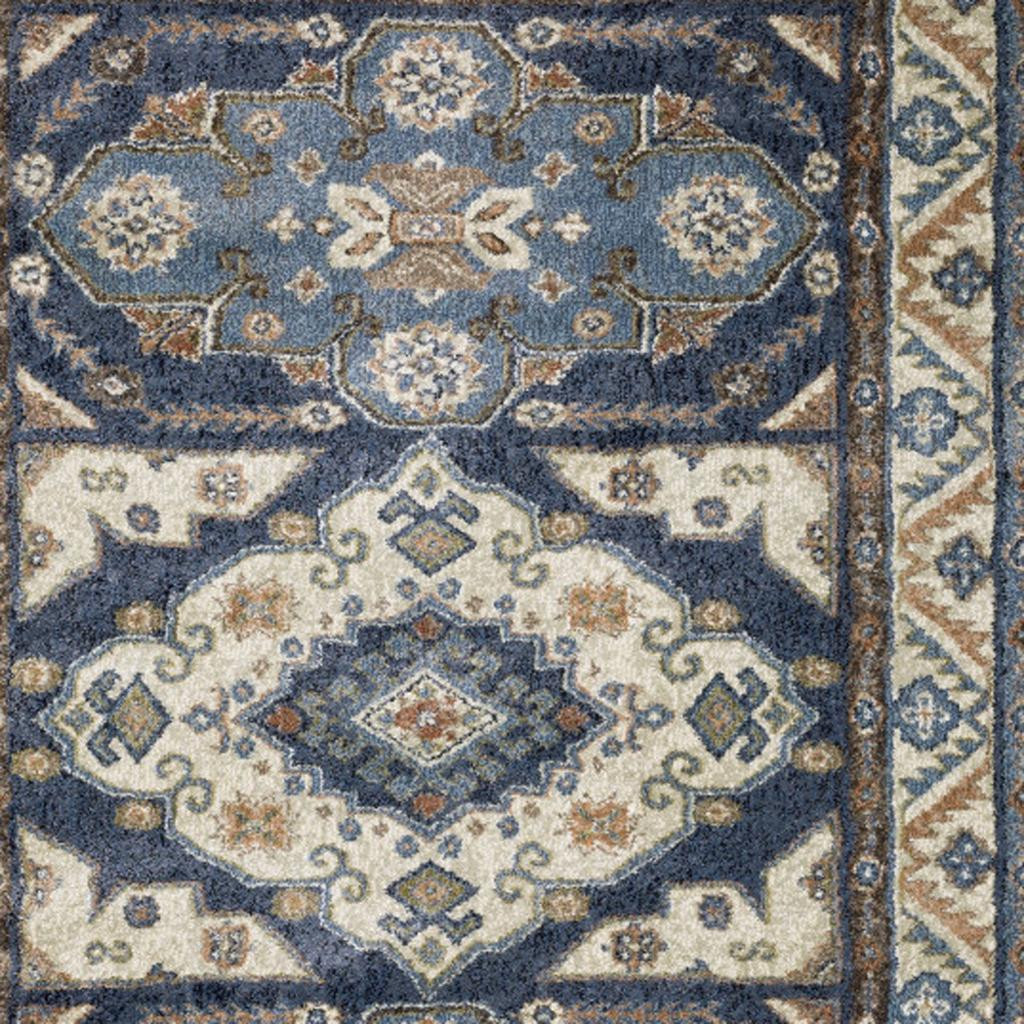 Add some artistry to your room with this 7-foot x 9-foot blue and rust oriental area rug. Ideal for spaces with kids and pets, this rug is stain resistant to help repel dirt and spilled liquids. Built to last, this rug crafted from polypropylene fibers is known for its durability and long lasting appeal. This larger sized, traditional styled rug is ready to create a focal point or statement piece in your room. 78.74-inch h x 107.87-inch w x 0.55-inch d.