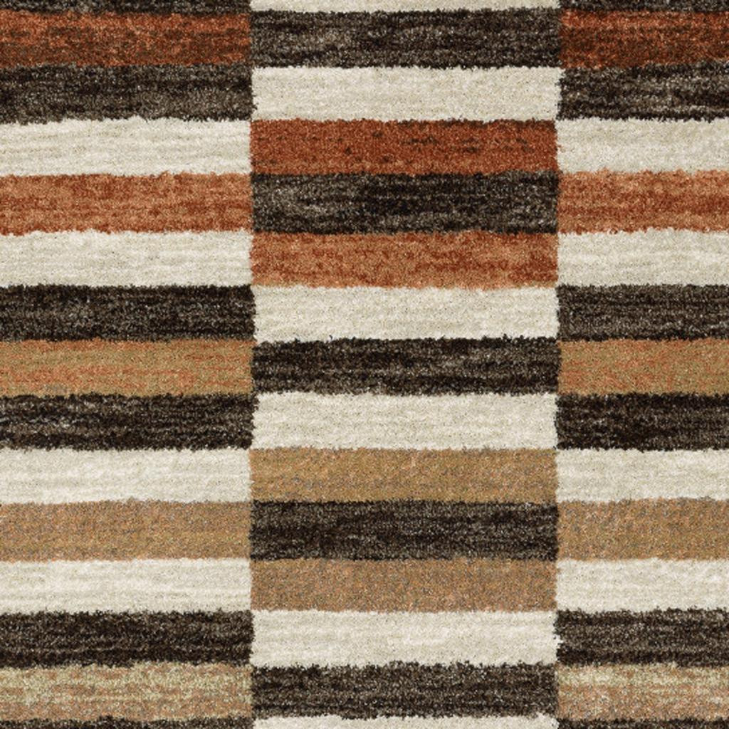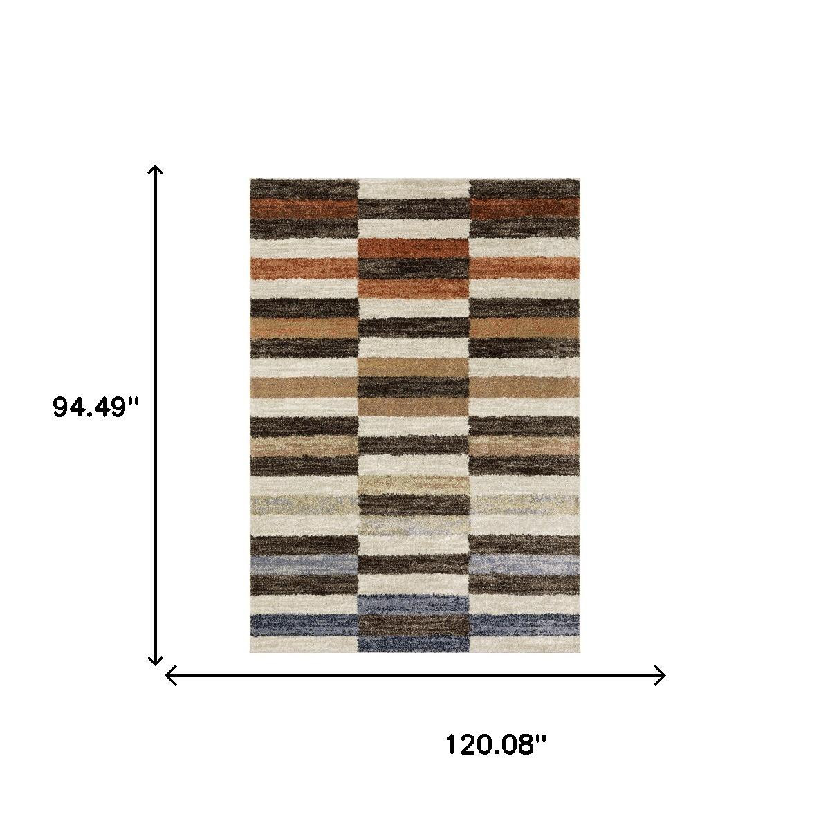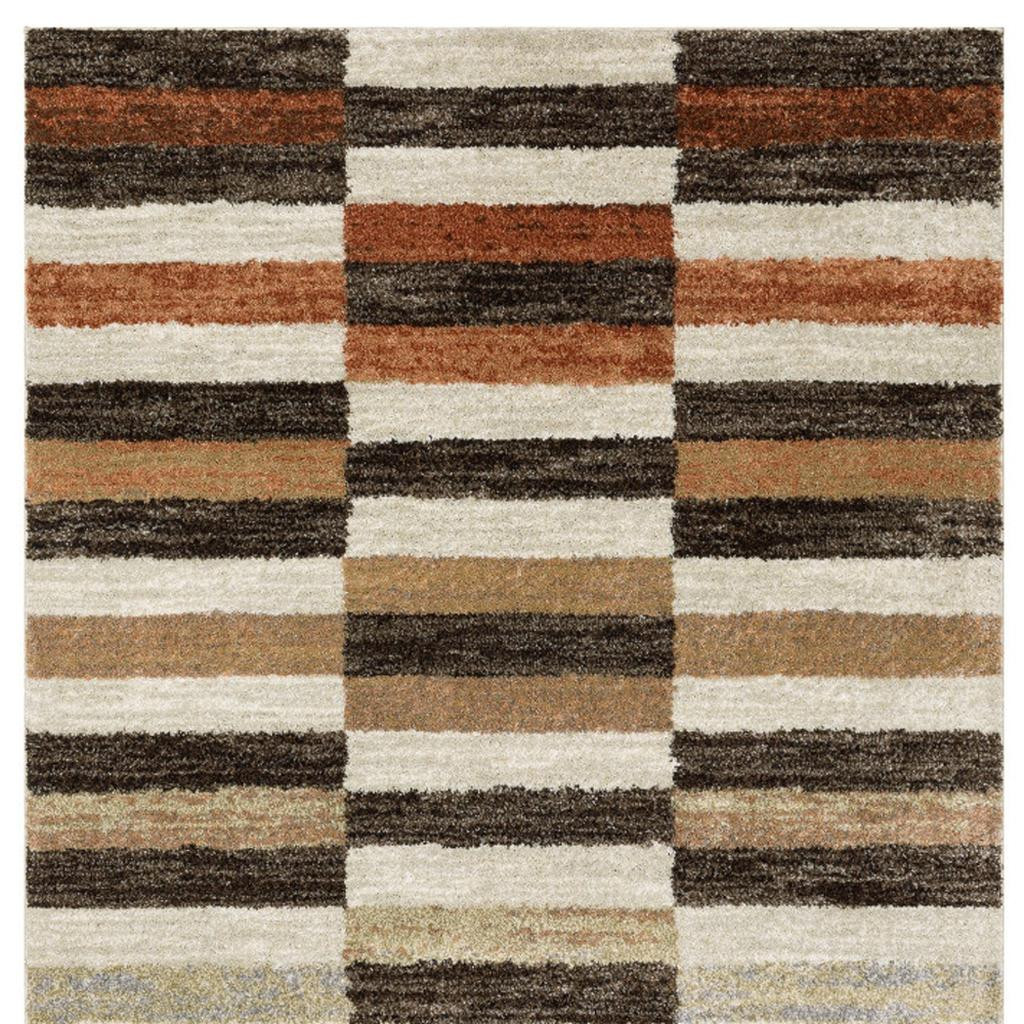 Add some artistry to your room with this 8-foot x 10-foot brown and rust geometric area rug. Ideal for spaces with kids and pets, this rug is stain resistant to help repel dirt and spilled liquids. Built to last, this rug crafted from polypropylene fibers is known for its durability and long lasting appeal. This larger sized, mid-century styled rug is ready to create a focal point or statement piece in your room. 94.49-inch h x 120.08-inch w x 0.55-inch d.