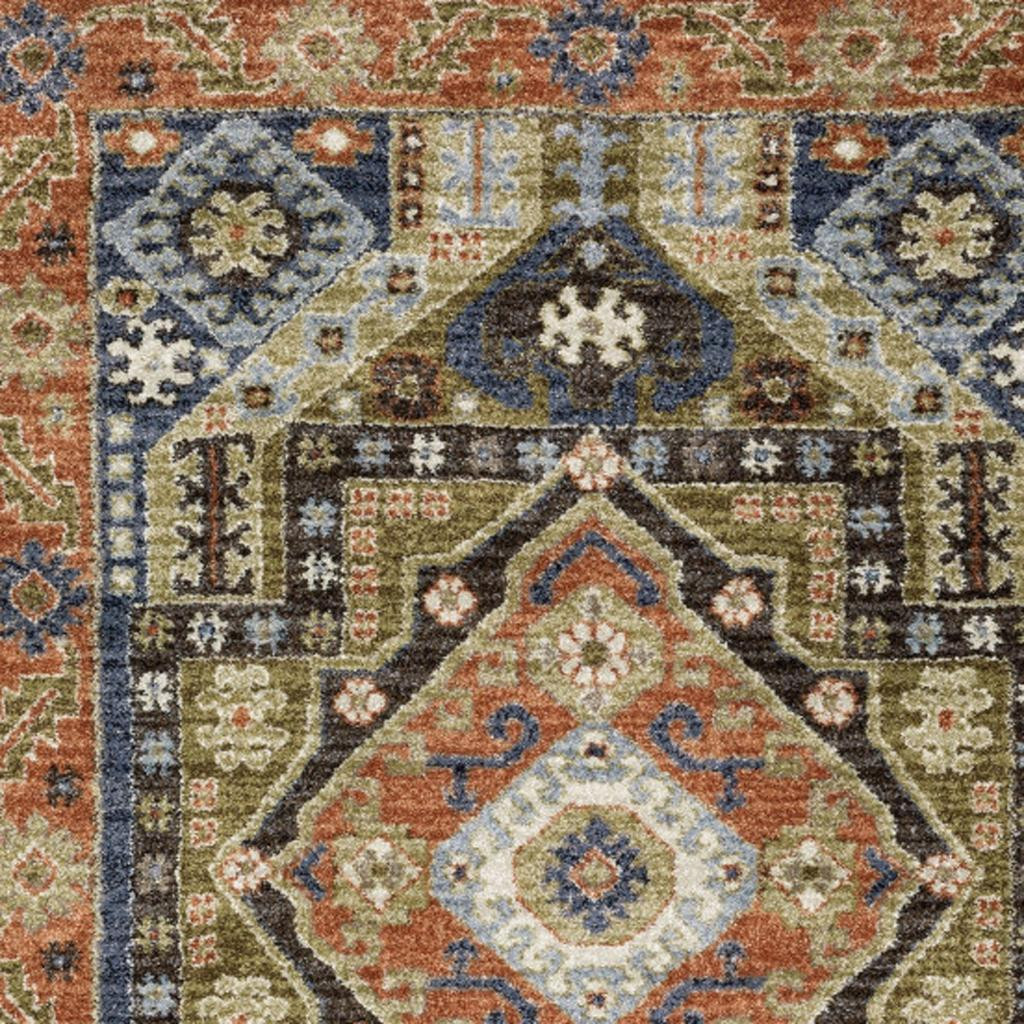 Set an inviting tone in your space with this 7-foot rust and blue oriental runner rug. Ideal for spaces with kids and pets, this rug is stain resistant to help repel dirt and spilled liquids. Built to last, this rug crafted from polypropylene fibers is known for its durability and long lasting appeal. This traditional style runner makes a great accent for the hallway, in front of cabinets, in the laundry room, or any other space you need a narrow and long rug. 26.77-inch h x 83.86-inch w x 0.55-inch d.