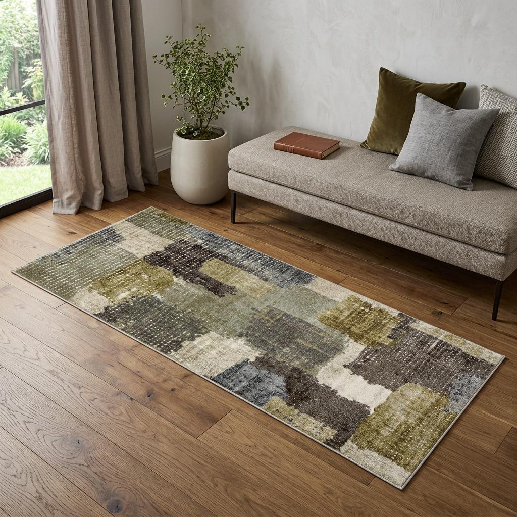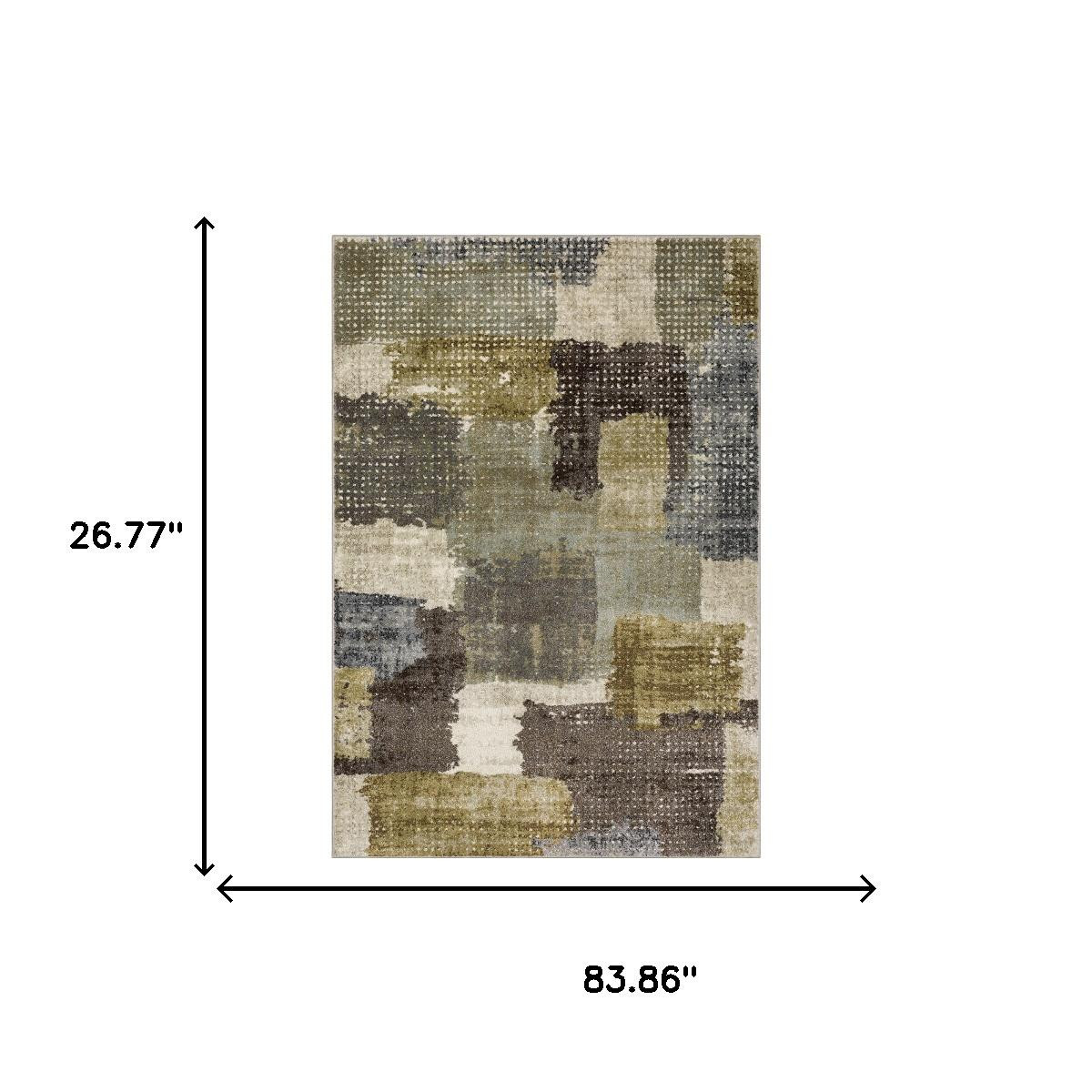 Add some artistry to your room with this 7-foot green and brown abstract runner rug. Ideal for spaces with kids and pets, this rug is stain resistant to help repel dirt and spilled liquids. Built to last, this rug crafted from polypropylene fibers is known for its durability and long lasting appeal. This contemporary style runner makes a great accent for the hallway, in front of cabinets, in the laundry room, or any other space you need a narrow and long rug. 26.77-inch h x 83.86-inch w x 0.55-inch d.