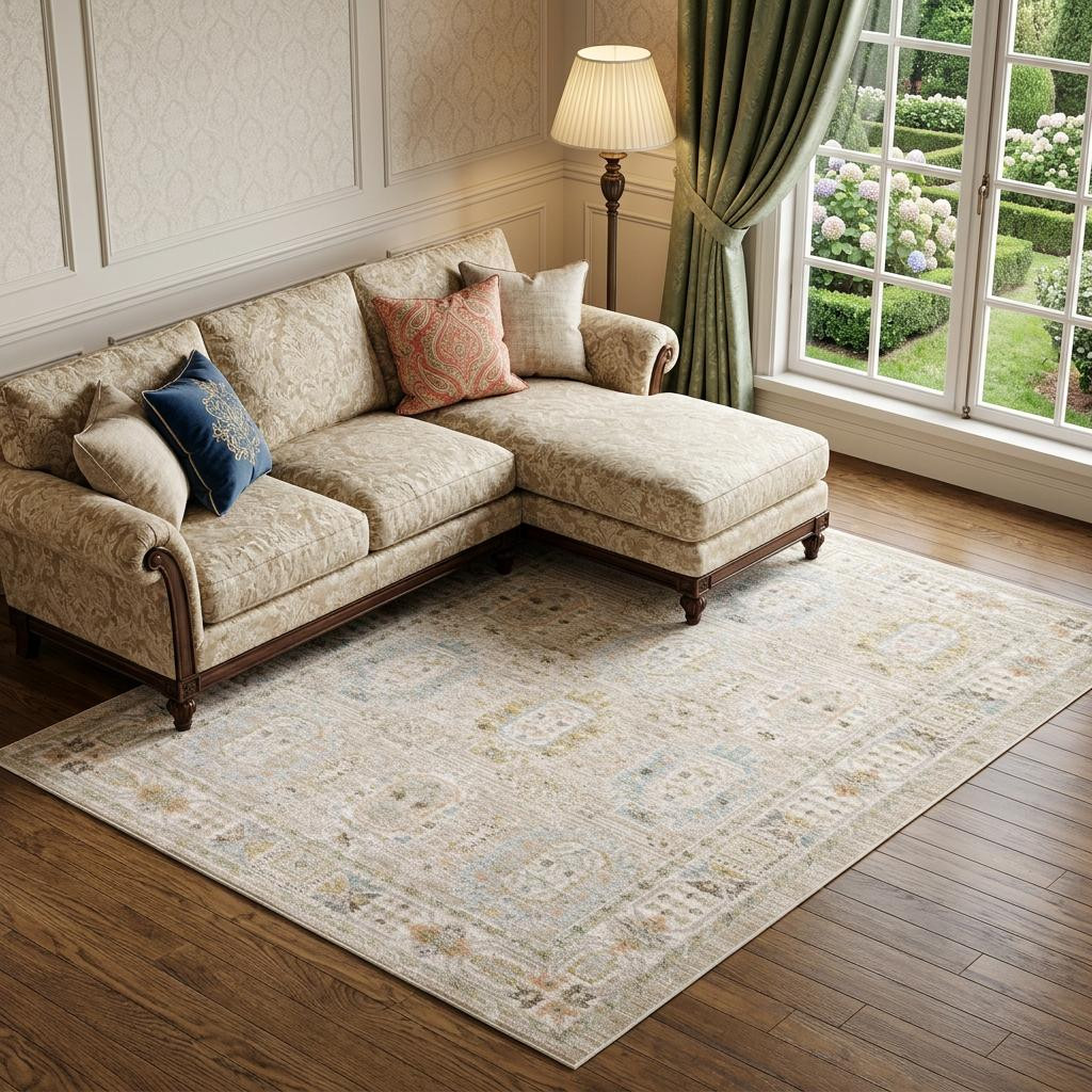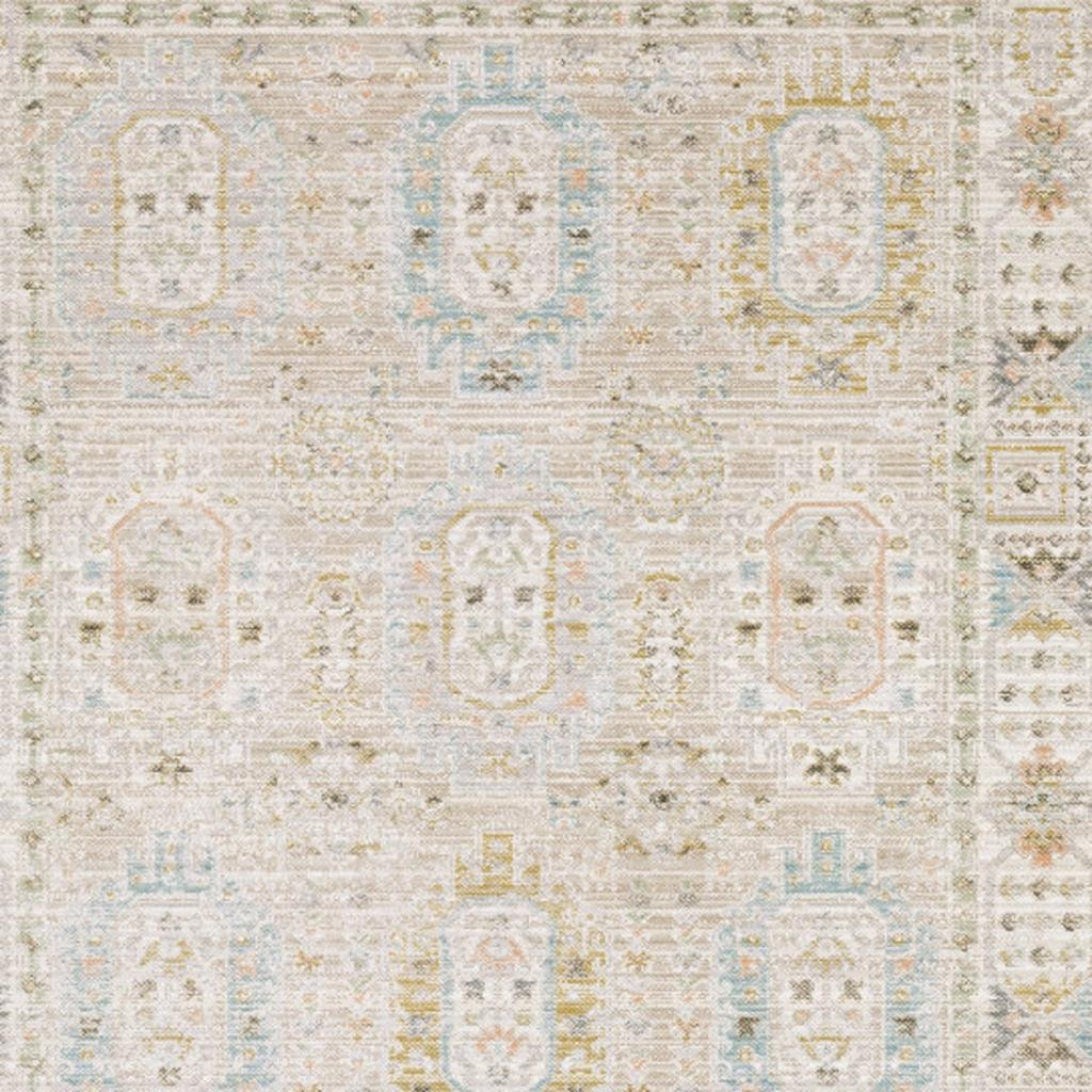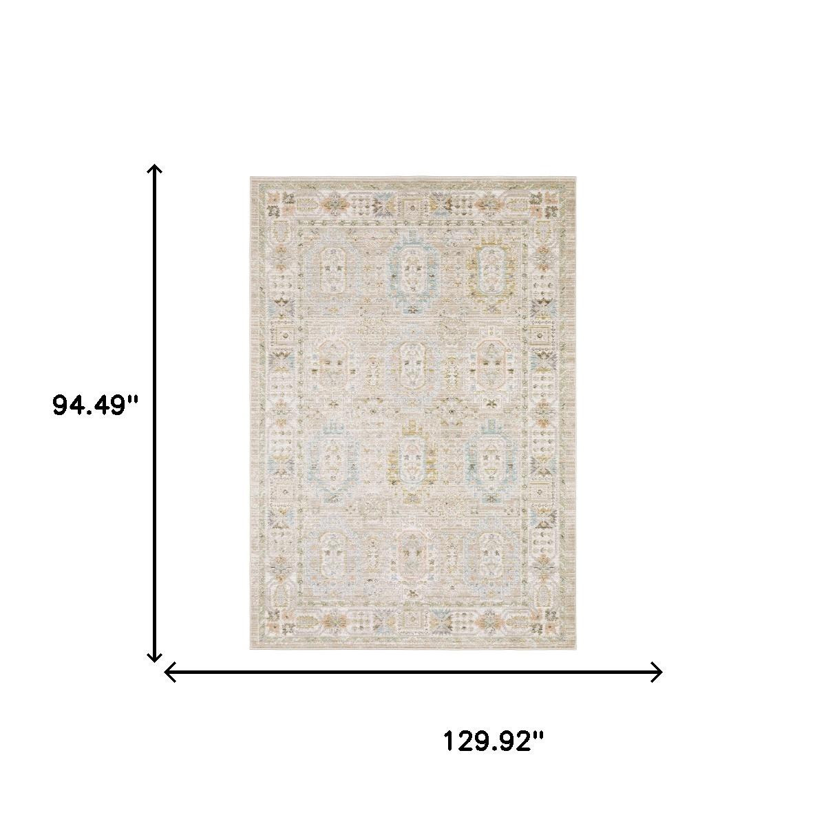 Add some artistry to your room with this 8-foot x 11-foot beige and blue oriental area rug. Ideal for spaces with kids and pets, this rug is stain resistant to help repel dirt and spilled liquids. Built to last, this rug crafted from polypropylene blend fibers is known for its durability and long lasting appeal. This larger sized, traditional styled rug is ready to create a focal point or statement piece in your room. 94.49-inch h x 129.92-inch w x 0.20-inch d.