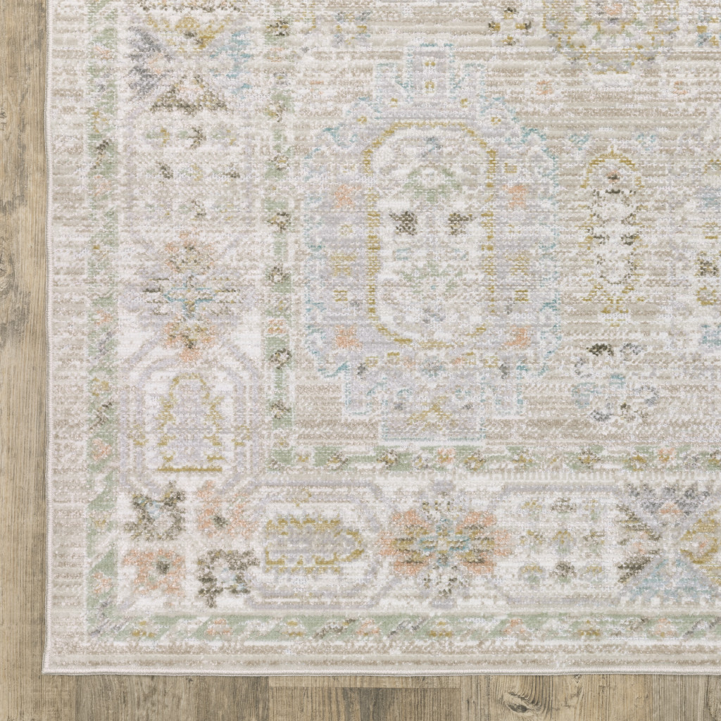 VINTAGE MEDALLION RUG, MACHINE WOVEN BASE, BEIGE BLUE POLYPROPYLENE BLEND, NON-SLIP BACKING CAVET CARPET, MEDALLION & ORIENTAL PATTERNS, VINTAGE TRADITIONAL STYLE, LOW PROFILE CONSTRUCTION |