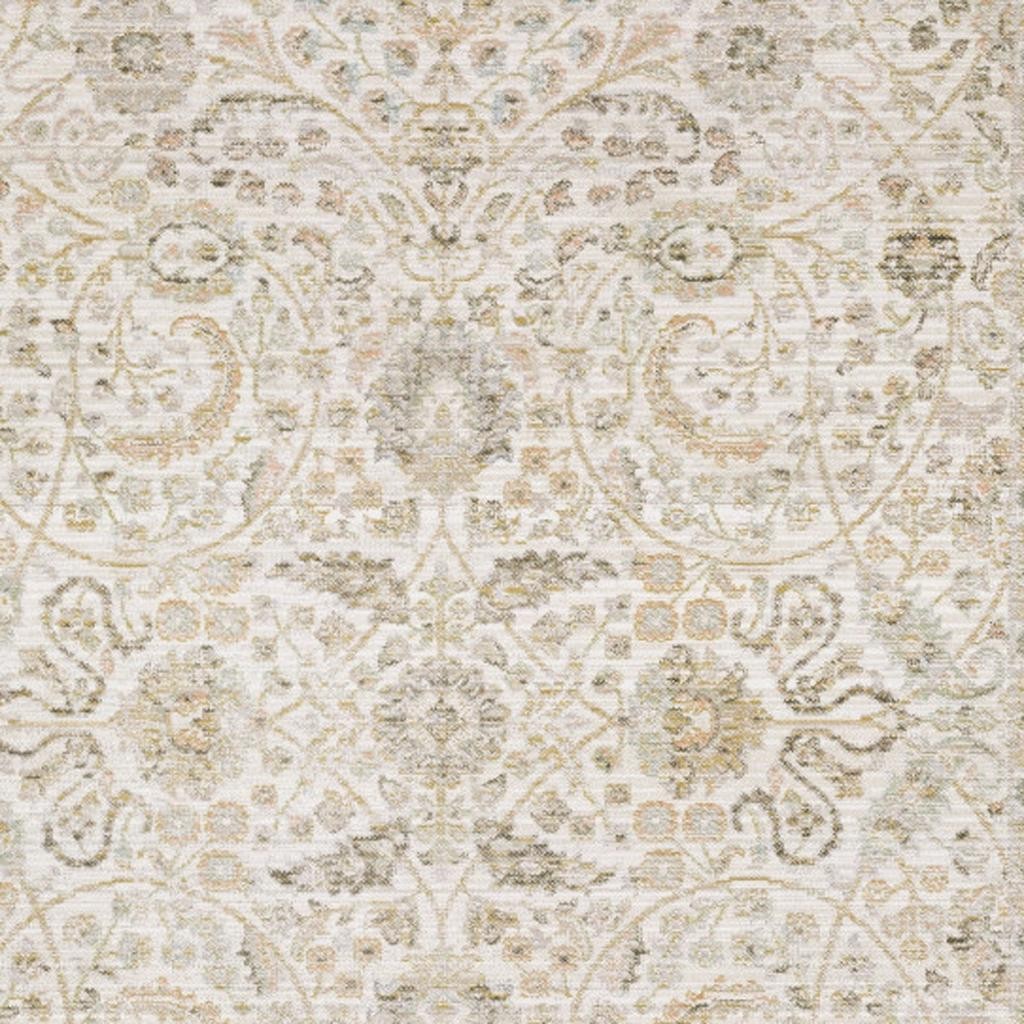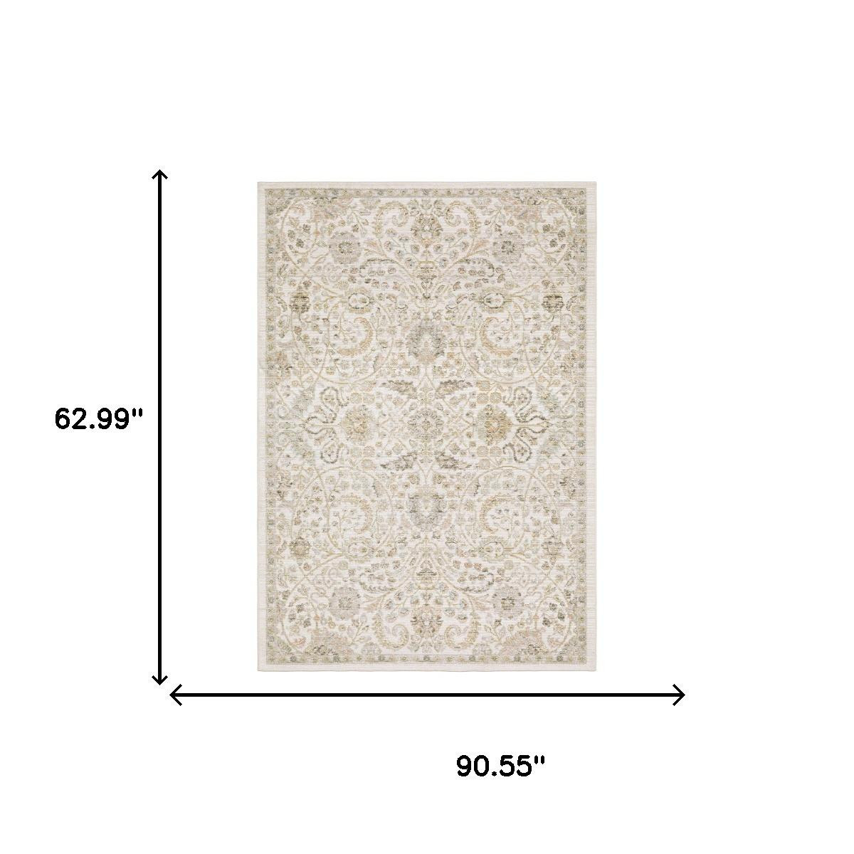 Add some artistry to your room with this 5-foot x 8-foot ivory and gold floral area rug. Ideal for spaces with kids and pets, this rug is stain resistant to help repel dirt and spilled liquids. Built to last, this rug crafted from polypropylene blend fibers is known for its durability and long lasting appeal. This larger sized, traditional styled rug is ready to create a focal point or statement piece in your room. 62.99-inch h x 90.55-inch w x 0.20-inch d.