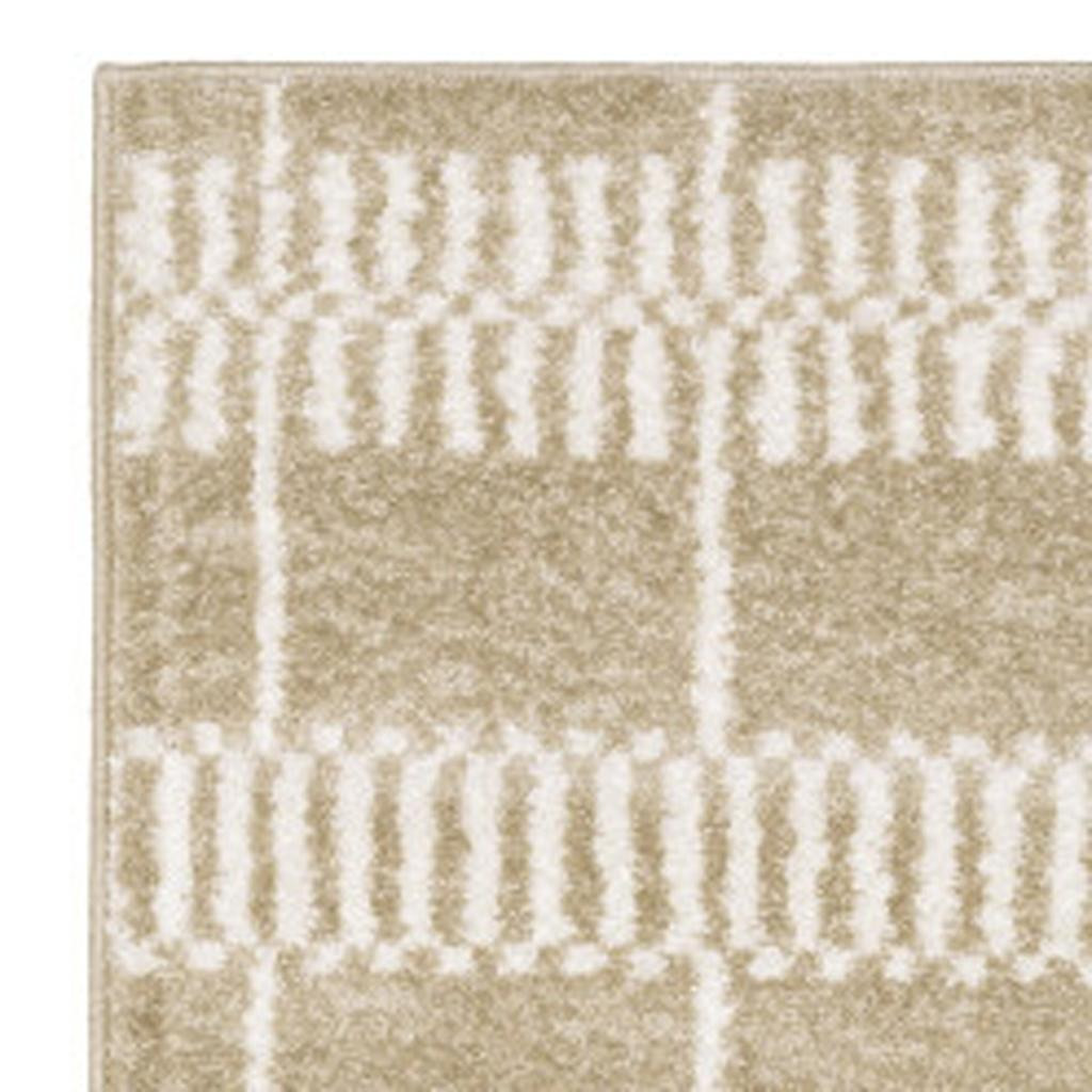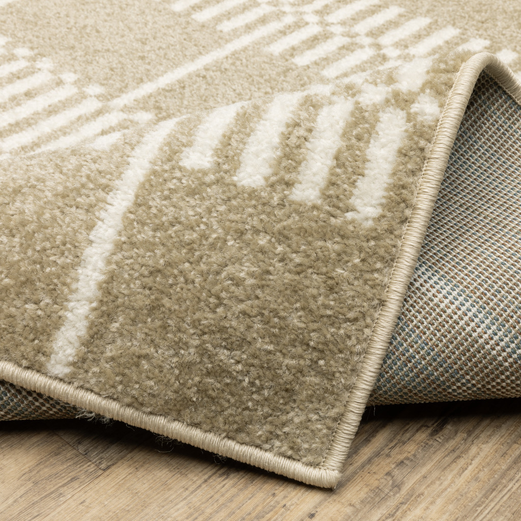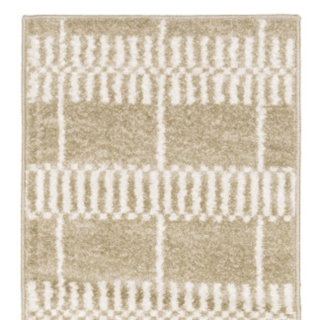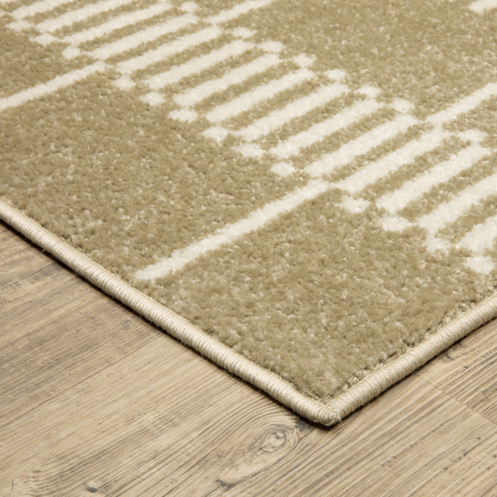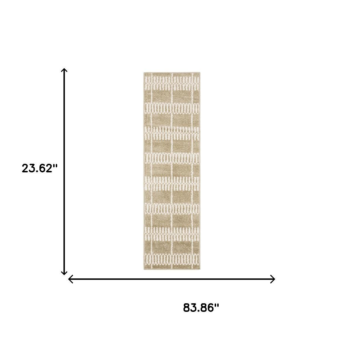 Set an inviting tone in your space with this 7-foot beige and ivory geometric runner rug. Ideal for spaces with kids and pets, this rug is stain resistant to help repel dirt and spilled liquids. Built to last, this rug crafted from polypropylene fibers is known for its durability and long lasting appeal. This scandinavian style runner makes a great accent for the hallway, in front of cabinets, in the laundry room, or any other space you need a narrow and long rug. 23.62-inch h x 83.86-inch w x 0.35-inch d.