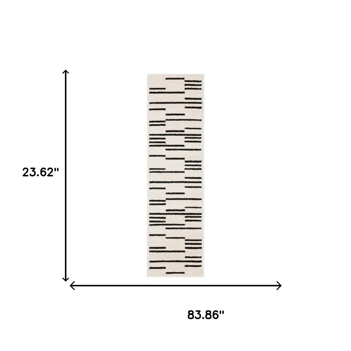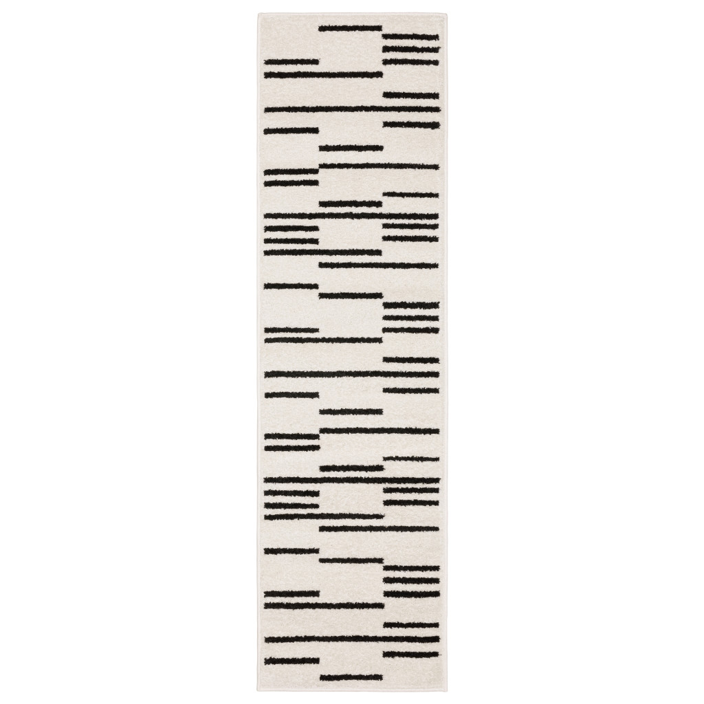 Add some artistry to your room with this 7-foot beige and black abstract runner rug. Ideal for spaces with kids and pets, this rug is stain resistant to help repel dirt and spilled liquids. Built to last, this rug crafted from polypropylene fibers is known for its durability and long lasting appeal. This modern style runner makes a great accent for the hallway, in front of cabinets, in the laundry room, or any other space you need a narrow and long rug. 23.62-inch h x 83.86-inch w x 0.35-inch d.