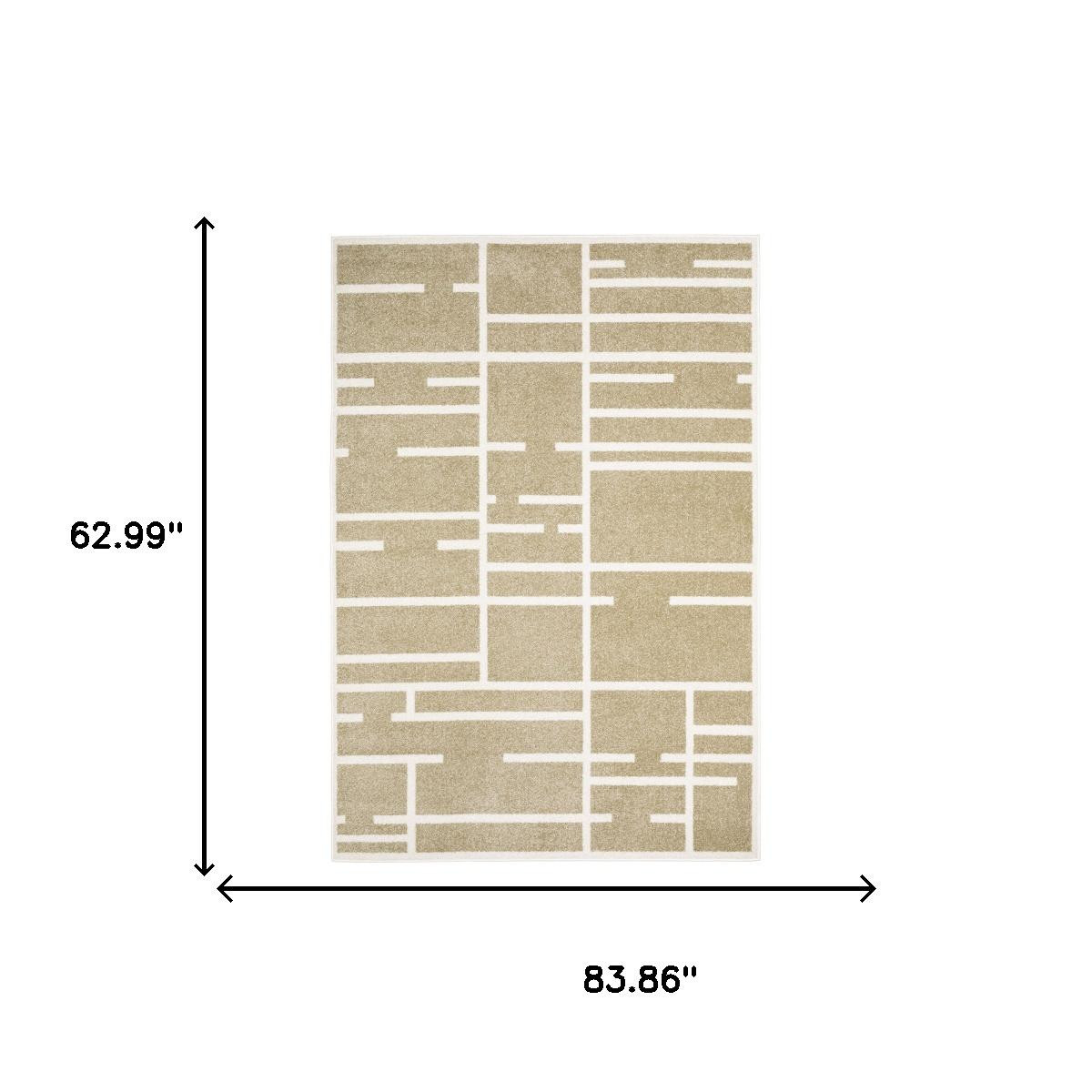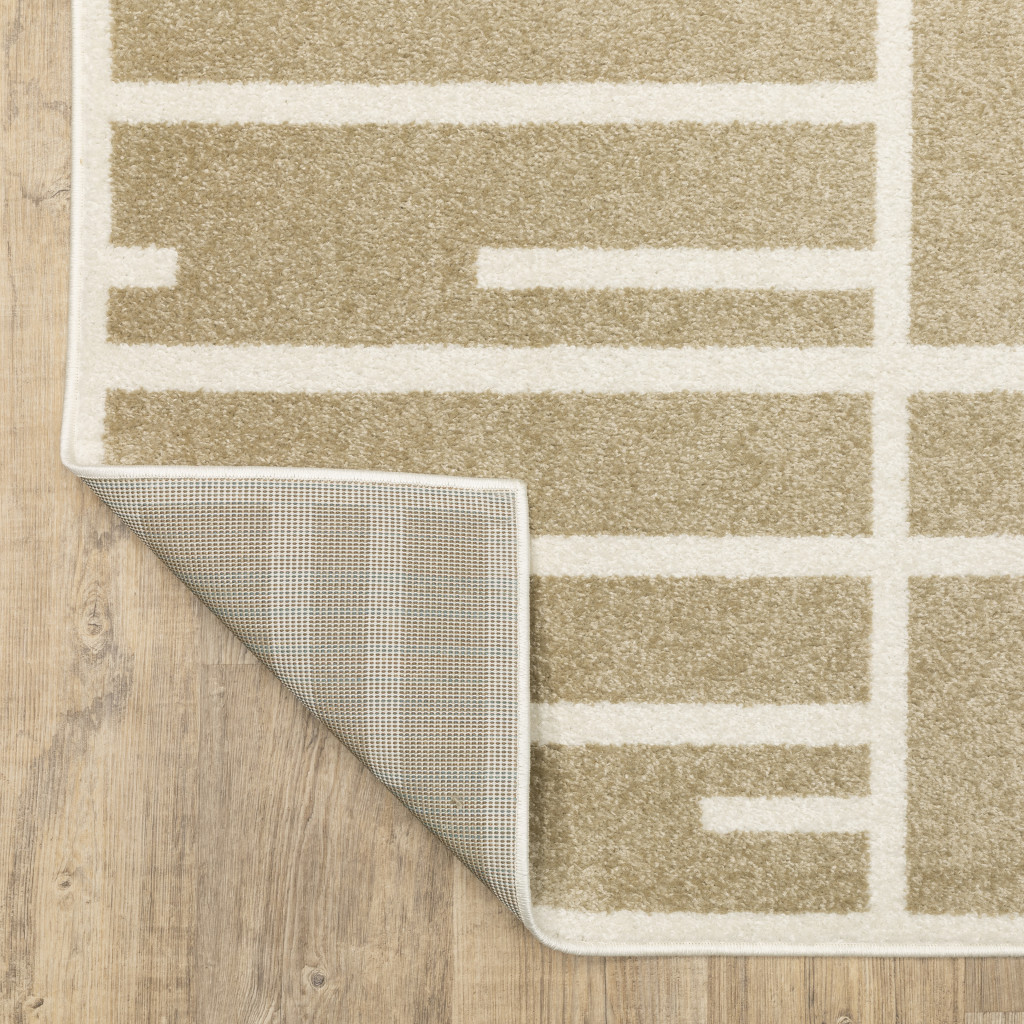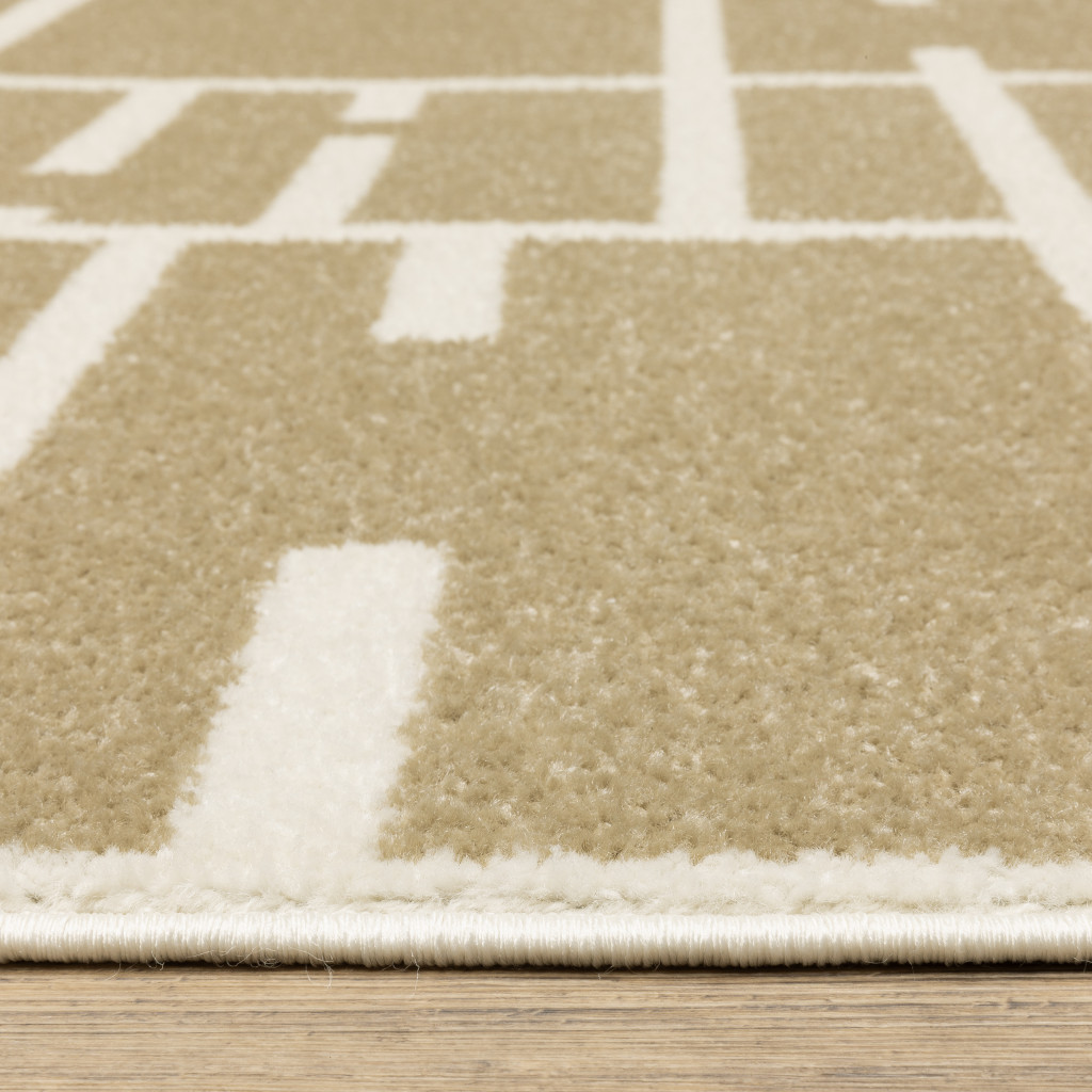 Add great coloration and comfortable texture to your space with this 5-foot x 7-foot beige and ivory geometric area rug. Ideal for spaces with kids and pets, this rug is stain resistant to help repel dirt and spilled liquids. Built to last, this rug crafted from polypropylene fibers is known for its durability and long lasting appeal. This larger sized, modern styled rug is ready to create a focal point or statement piece in your room. 62.99-inch h x 83.86-inch w x 0.35-inch d.