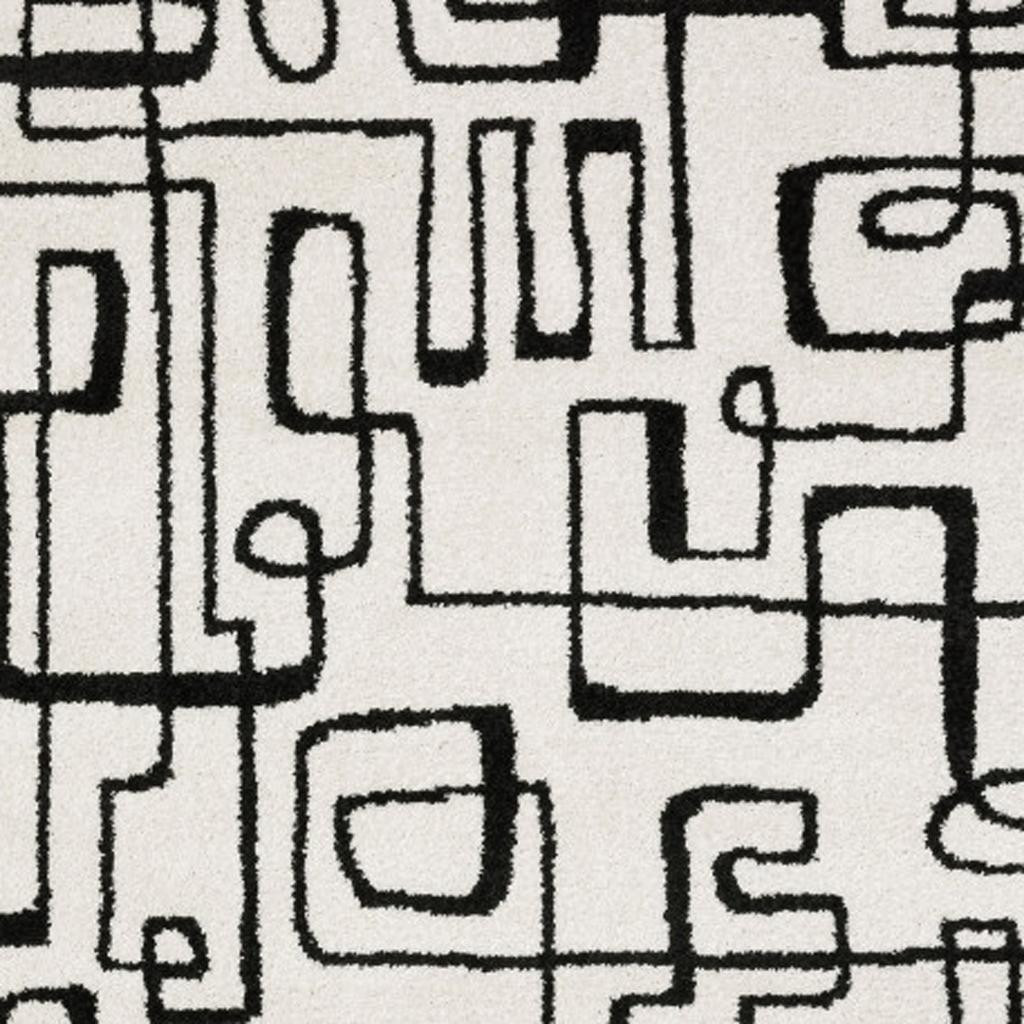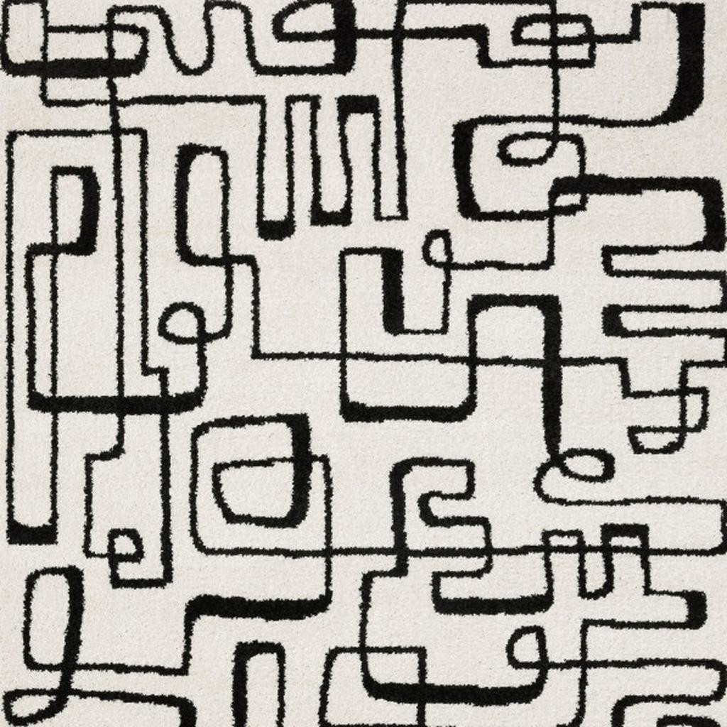 MODERN MID-CENTURY GEOMETRIC RUG, MACHINE WOVEN POLYPROPYLENE BASE, IVORY & BLACK QUINN CARPET, MID-CENTURY GEOMETRIC PATTERNS, MODERN MID-CENTURY STYLE MAT, LOW PROFILE CONSTRUCTION |