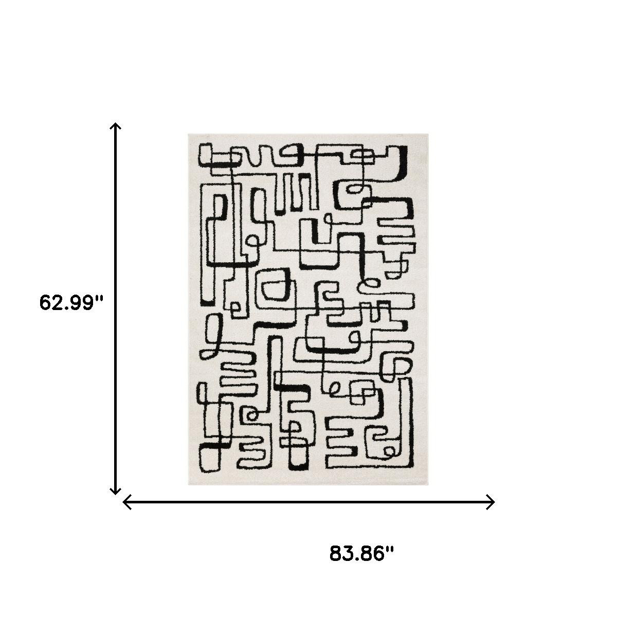 Add great coloration and comfortable texture to your space with this 5-foot x 7-foot beige and black geometric area rug. Ideal for spaces with kids and pets, this rug is stain resistant to help repel dirt and spilled liquids. Built to last, this rug crafted from polypropylene fibers is known for its durability and long lasting appeal. This larger sized, modern styled rug is ready to create a focal point or statement piece in your room. 62.99-inch h x 83.86-inch w x 0.35-inch d.