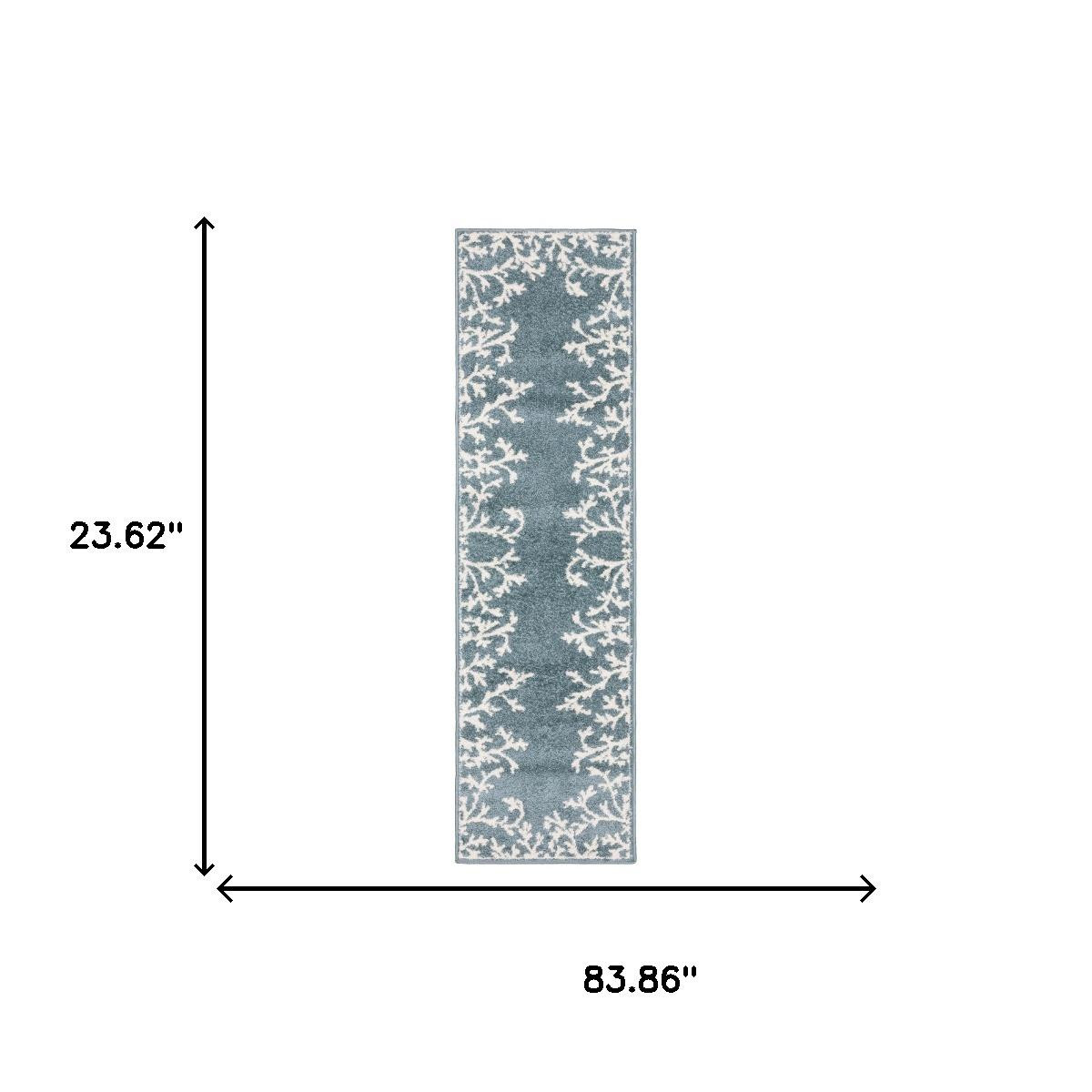 Add great coloration and comfortable texture to your space with this 7-foot blue and ivory seashell and coral runner rug. Ideal for spaces with kids and pets, this rug is stain resistant to help repel dirt and spilled liquids. Built to last, this rug crafted from polypropylene fibers is known for its durability and long lasting appeal. This casual style runner makes a great accent for the hallway, in front of cabinets, in the laundry room, or any other space you need a narrow and long rug. 23.62-inch h x 83.86-inch w x 0.35-inch d.