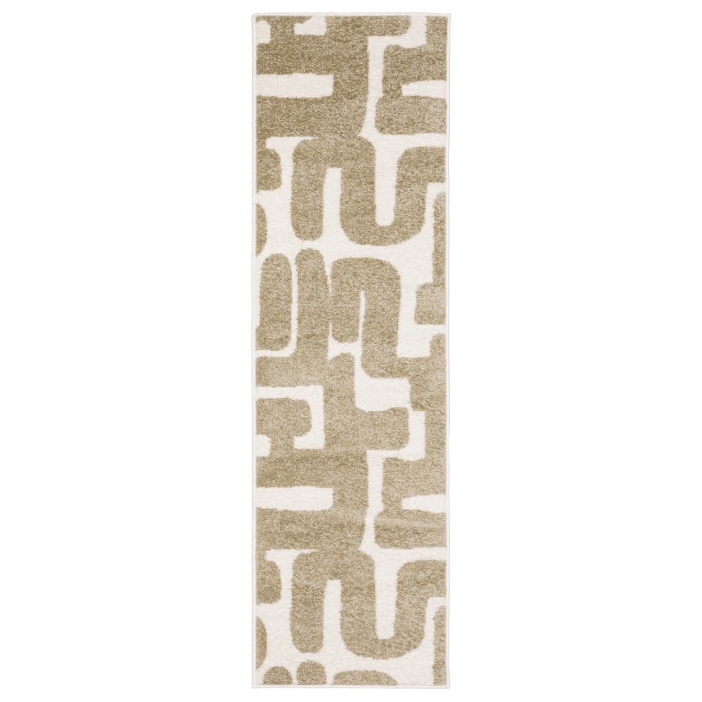 Add some artistry to your room with this 7-foot beige and ivory abstract runner rug. Ideal for spaces with kids and pets, this rug is stain resistant to help repel dirt and spilled liquids. Built to last, this rug crafted from polypropylene fibers is known for its durability and long lasting appeal. This modern style runner makes a great accent for the hallway, in front of cabinets, in the laundry room, or any other space you need a narrow and long rug. 23.62-inch h x 83.86-inch w x 0.35-inch d.