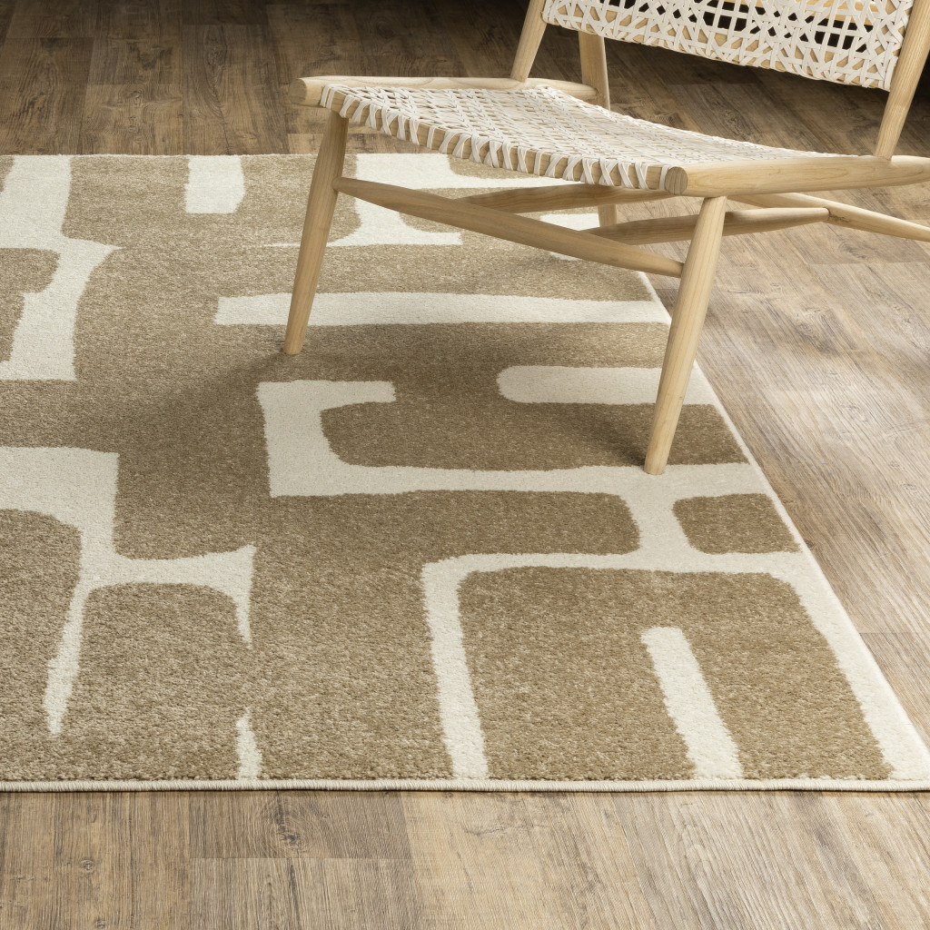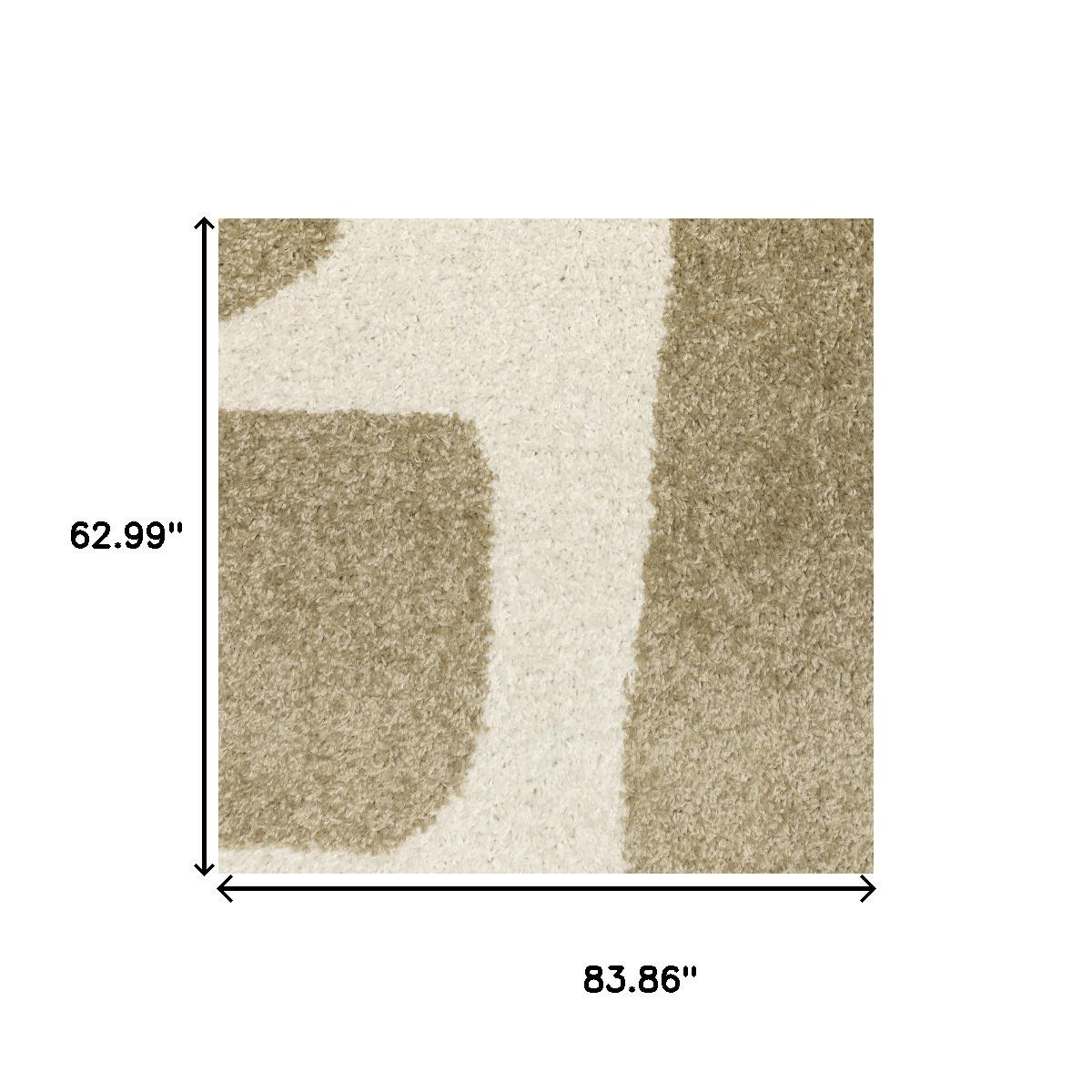 This 5-foot x 7-foot beige and ivory abstract area rug, is a great way to add warmth to a room. Ideal for spaces with kids and pets, this rug is stain resistant to help repel dirt and spilled liquids. Built to last, this rug crafted from polypropylene fibers is known for its durability and long lasting appeal. This larger sized, modern styled rug is ready to create a focal point or statement piece in your room. 62.99-inch h x 83.86-inch w x 0.35-inch d.