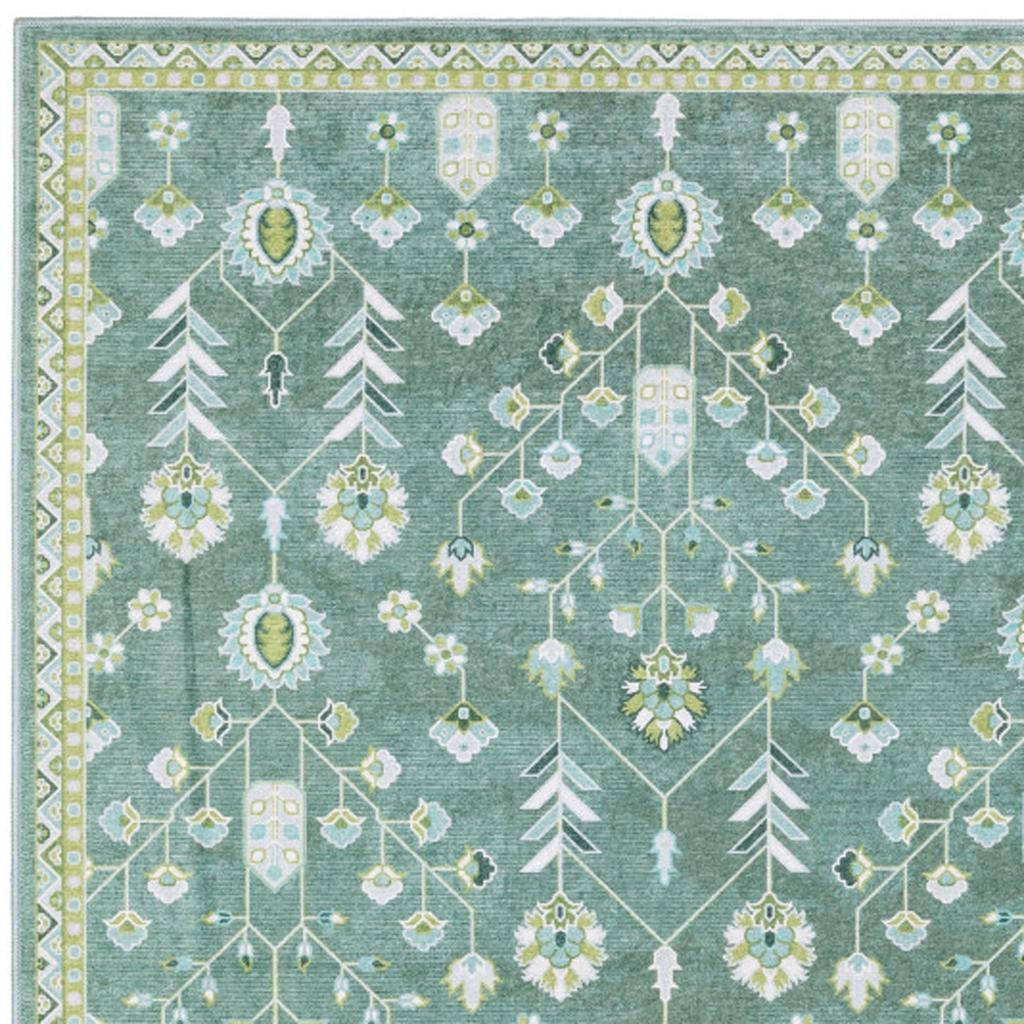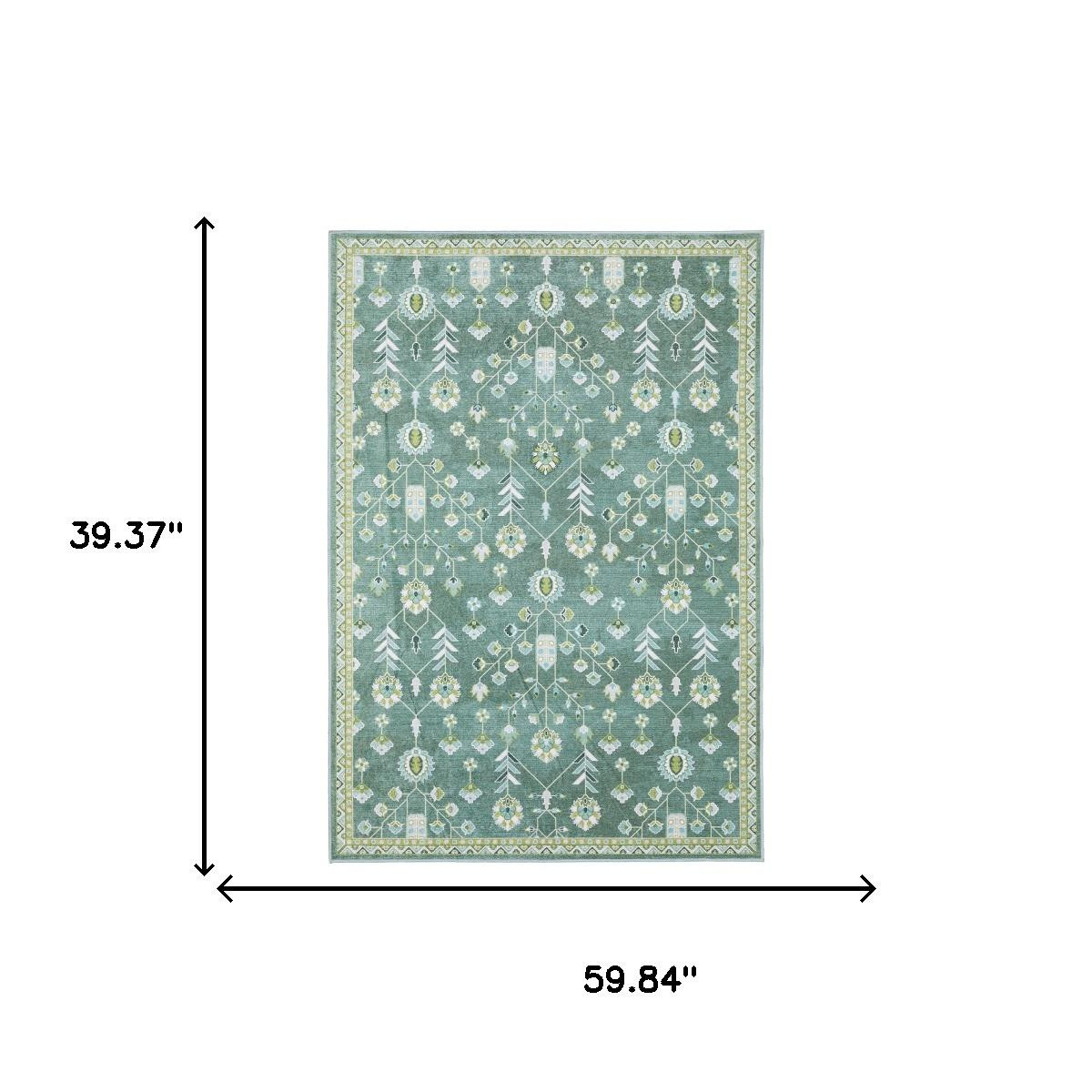 TRADITIONAL ORIENTAL RUG, MACHINE WASHABLE CARPET, TEAL GREEN POLYESTER, STAIN RESISTANT FLOORING, 2X3 RECTANGLE ALFOMBRA, ADDISON INDOOR AREA, PRINTED LOW PROFILE, VINTAGE STYLE MAT |