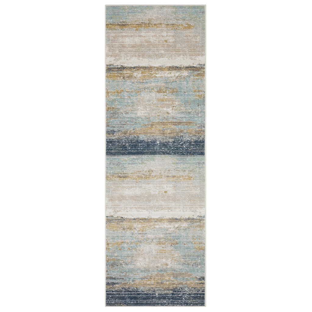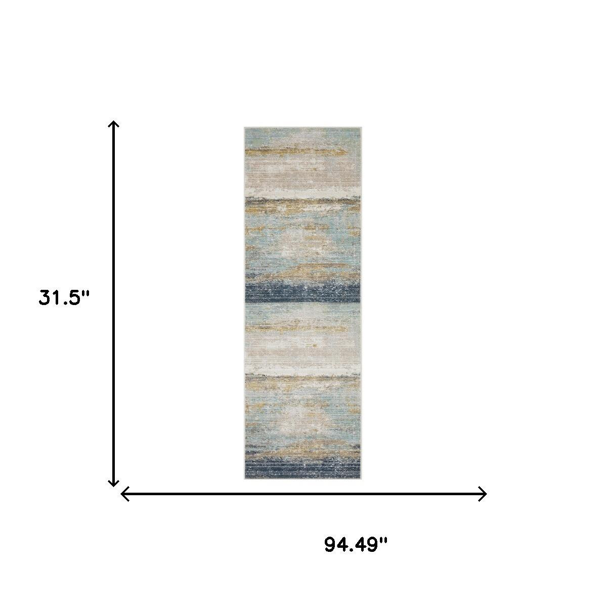 Add great coloration and comfortable texture to your space with this 8-foot blue and beige abstract runner rug. Ideal for spaces with kids and pets, this rug is stain resistant to help repel dirt and spilled liquids. Built to last, this rug crafted from polypropylene blend fibers is known for its durability and long lasting appeal. This modern style runner makes a great accent for the hallway, in front of cabinets, in the laundry room, or any other space you need a narrow and long rug. 31.50-inch h x 94.49-inch w x 0.20-inch d.