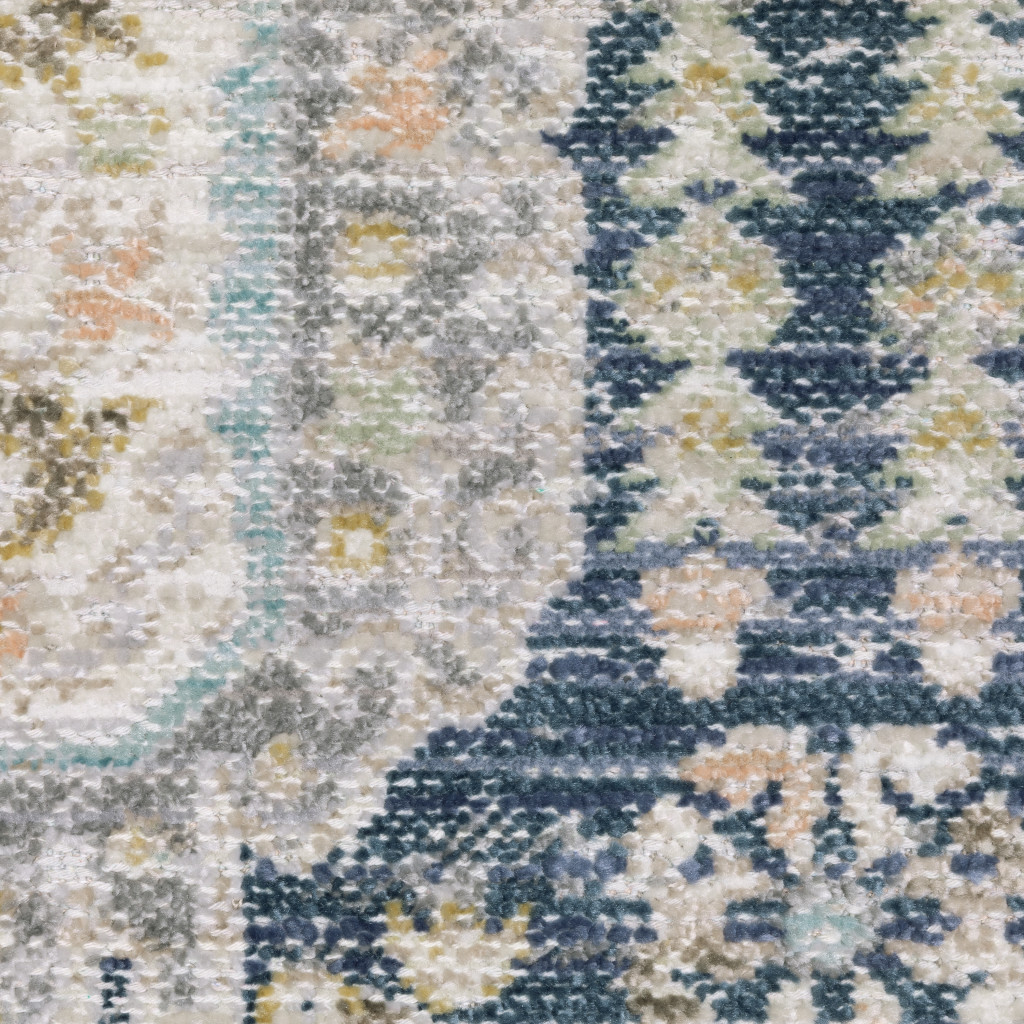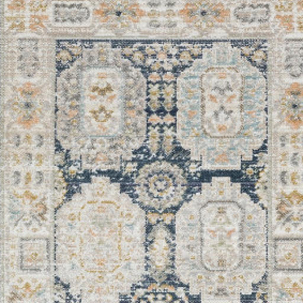 VINTAGE ORIENTAL RUG, MACHINE WOVEN BASE, NAVY IVORY POLYPROPYLENE BLEND, NON-SLIP BACKING CAVET CARPET, MEDALLIONS & ORIENTAL PATTERNS, VINTAGE TRADITIONAL STYLE, LOW PROFILE CONSTRUCTION |