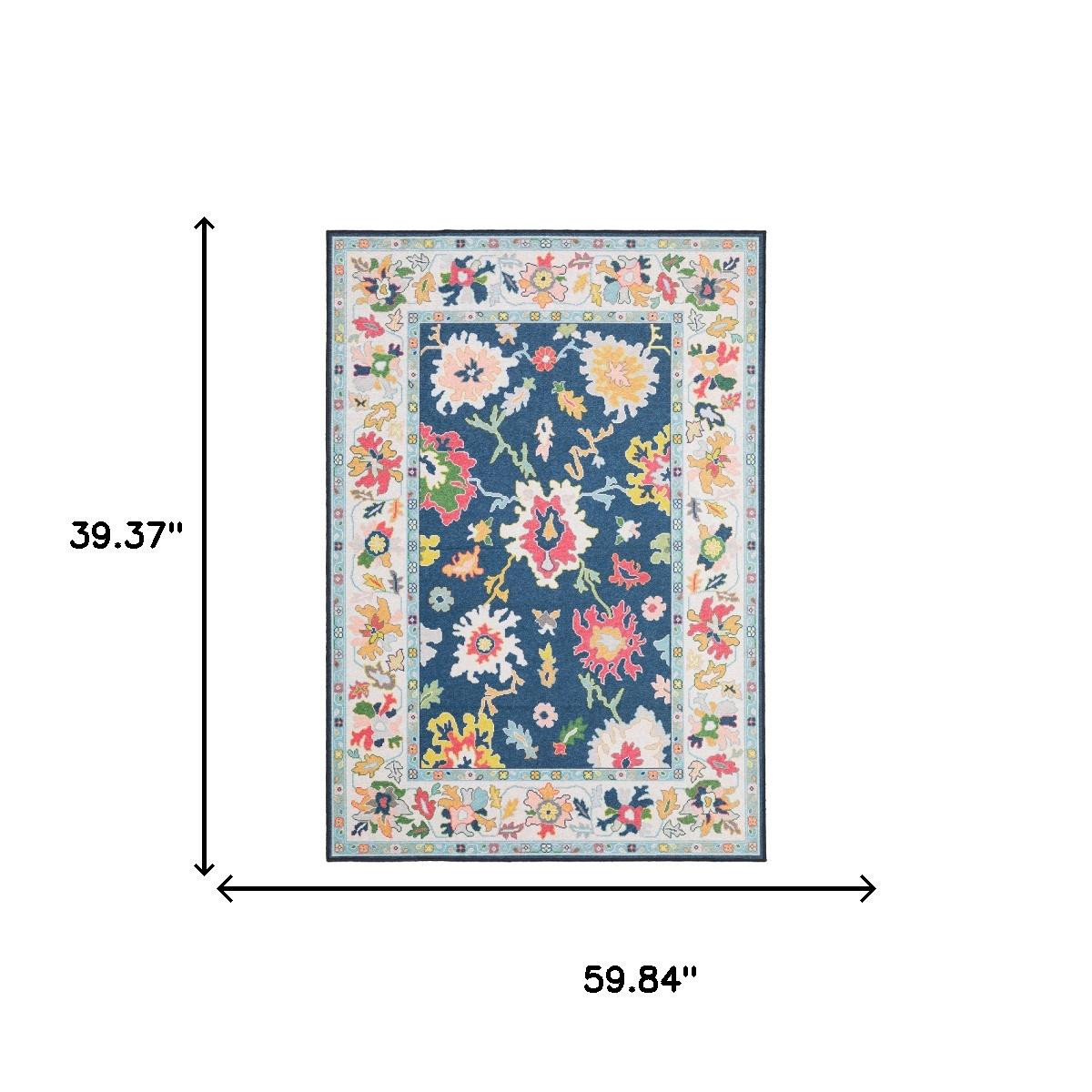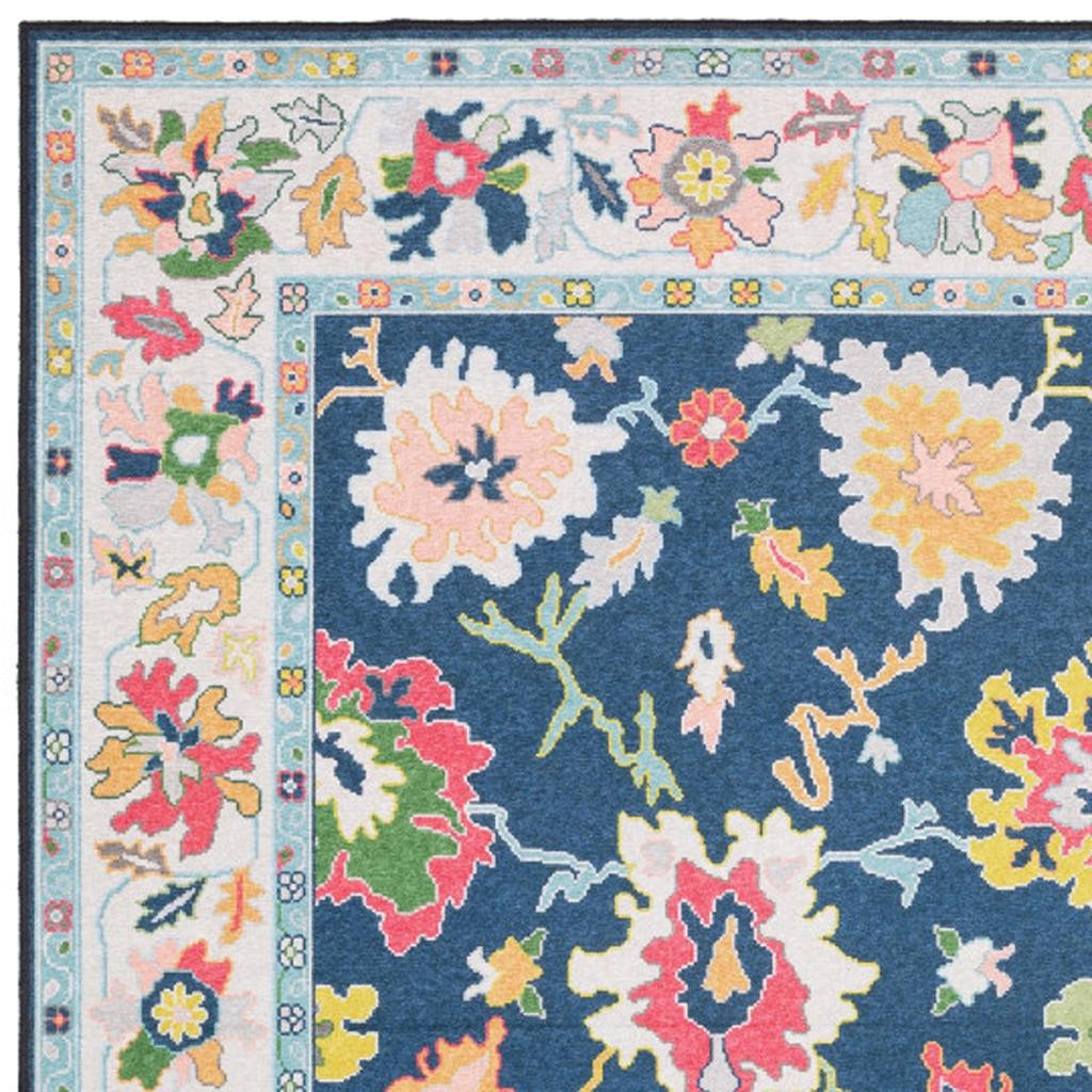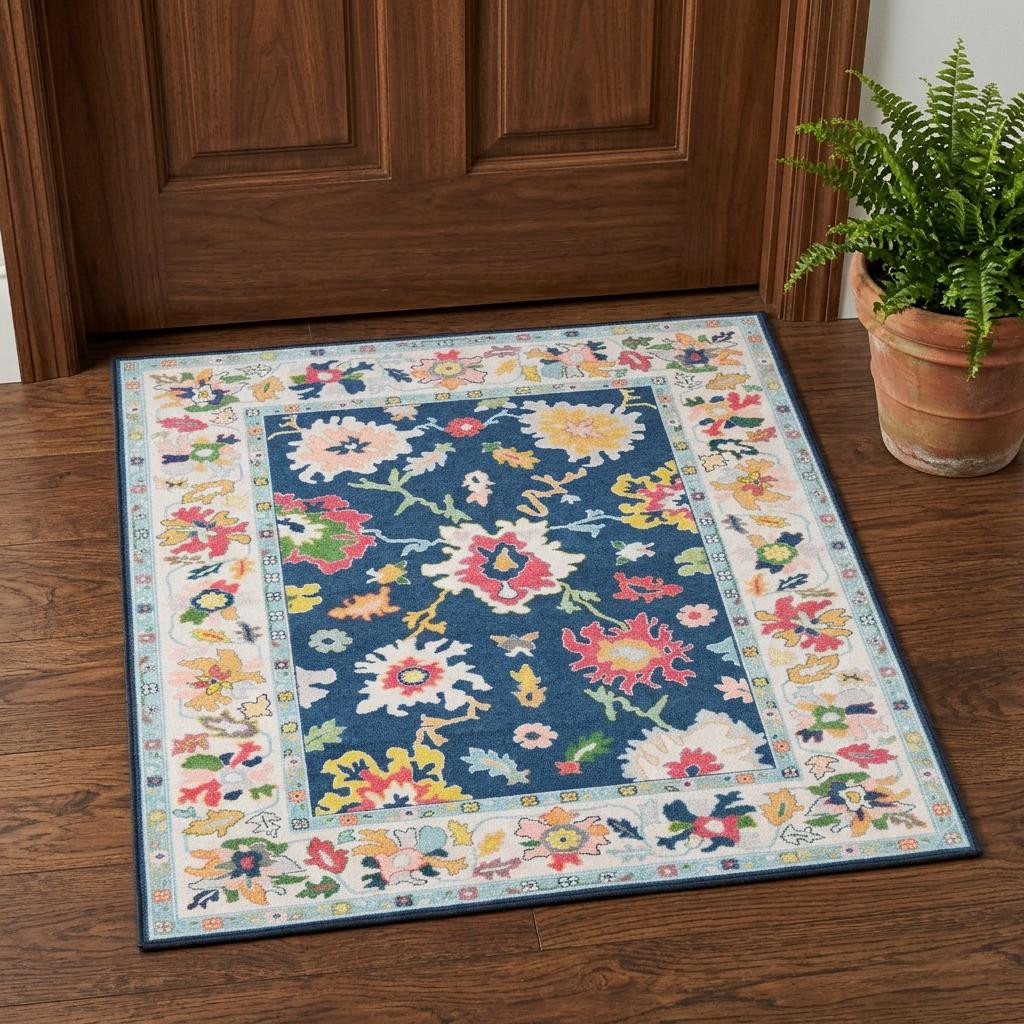 TRADITIONAL ORIENTAL RUG, MACHINE WASHABLE PRINTED BASE, BLUE MULTI COLORED POLYESTER, NON-SLIP BACKING ADDISON CARPET, ORIENTAL FLORAL PATTERNS, TRADITIONAL BOHEMIAN CASUAL STYLE MAT, LOW PROFILE CONSTRUCTION |