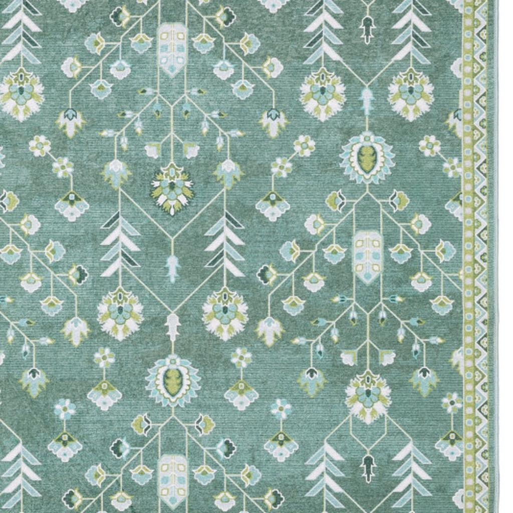 TRADITIONAL ORIENTAL RUG, MACHINE WASHABLE CARPET, TEAL GREEN POLYESTER, STAIN RESISTANT FLOORING, 2X3 RECTANGLE ALFOMBRA, ADDISON INDOOR AREA, PRINTED LOW PROFILE, VINTAGE STYLE MAT |