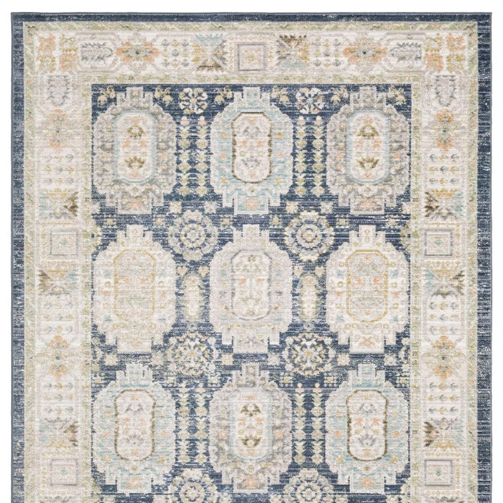 VINTAGE ORIENTAL RUG, MACHINE WOVEN BASE, NAVY IVORY POLYPROPYLENE BLEND, NON-SLIP BACKING CAVET CARPET, MEDALLIONS & ORIENTAL PATTERNS, VINTAGE TRADITIONAL STYLE, LOW PROFILE CONSTRUCTION |
