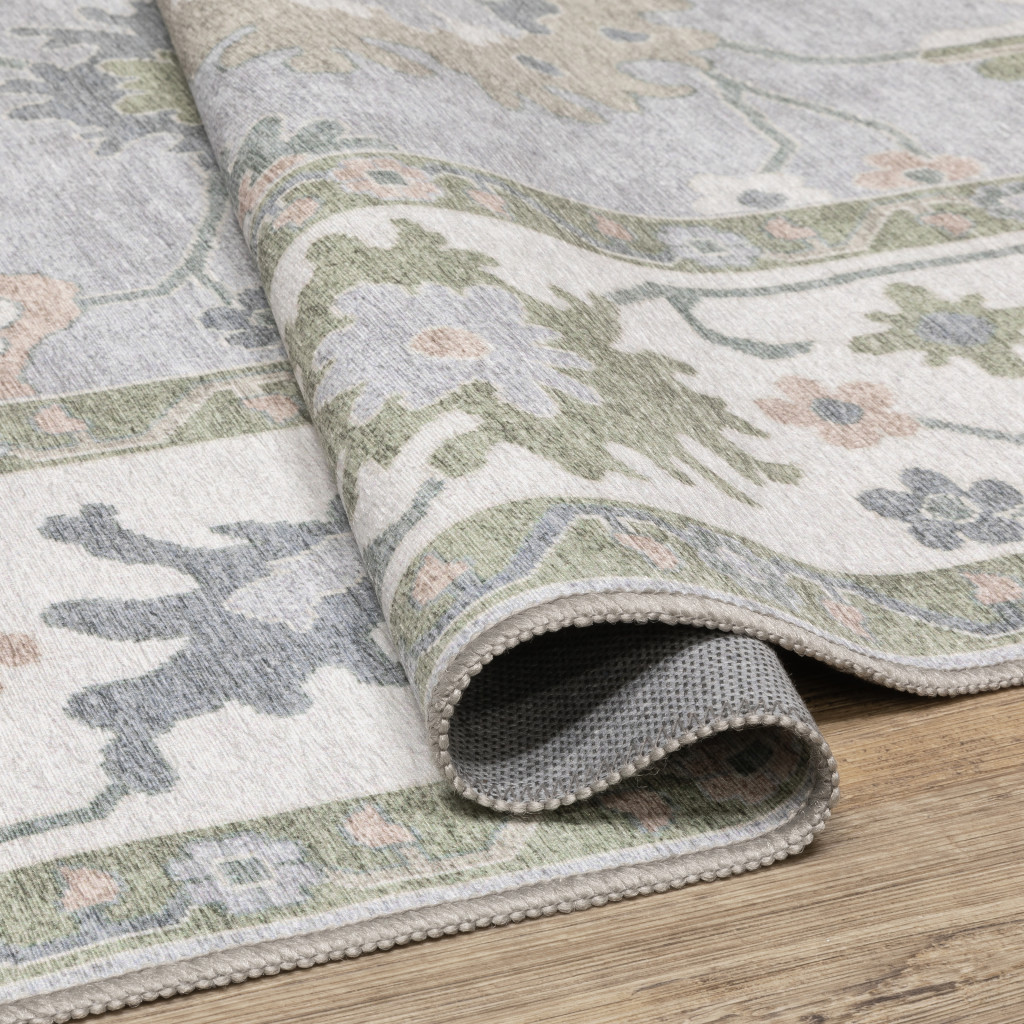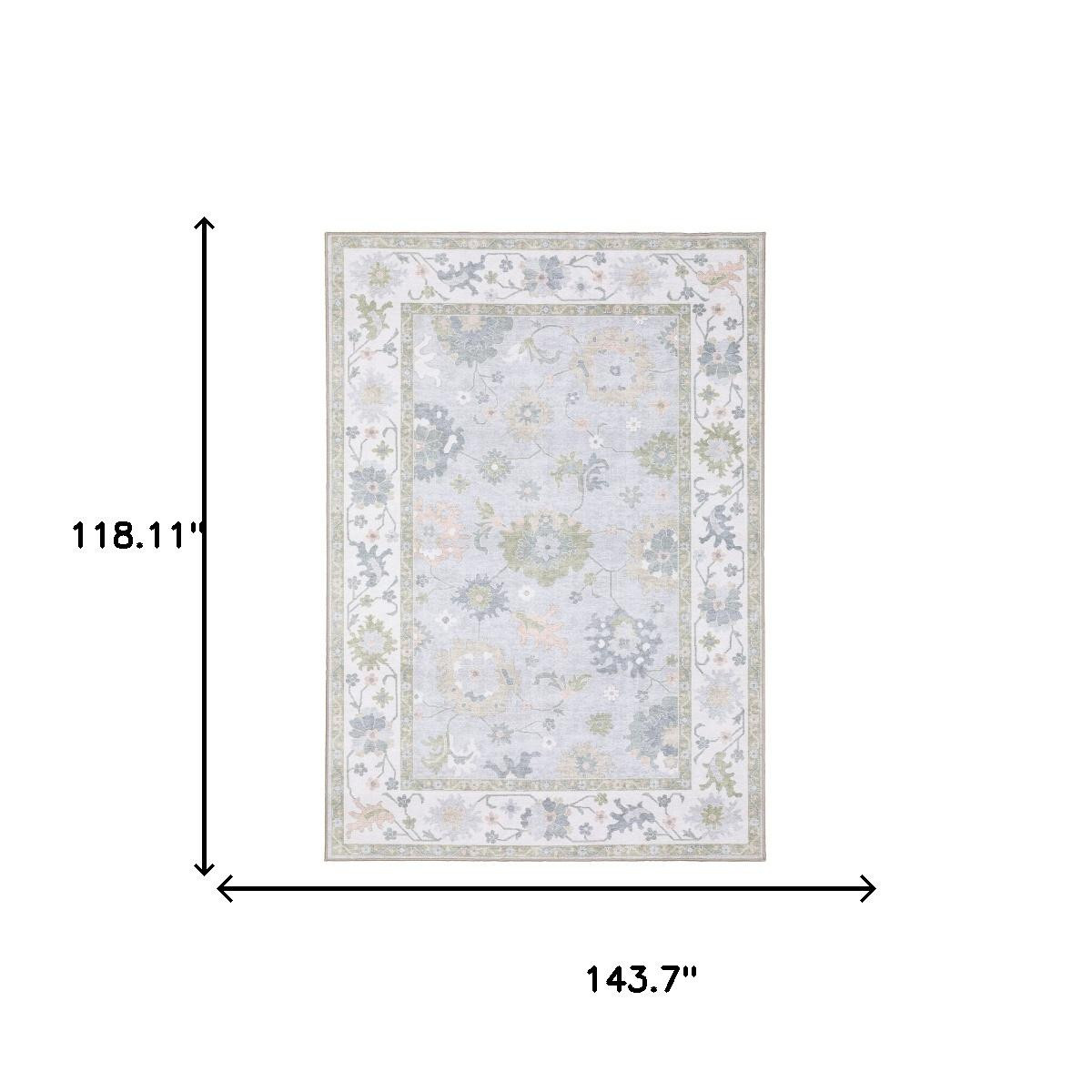 This 10-foot x 13-foot blue and green oriental washable area rug, is a great way to add warmth to a room. Ideal for spaces with kids and pets, this rug is stain resistant to help repel dirt and spilled liquids. Built to last, this rug crafted from polyester fibers is known for its durability and long lasting appeal. This larger sized, traditional styled rug is ready to create a focal point or statement piece in your room. 118.11-inch h x 143.70-inch w x 0.12-inch d.
