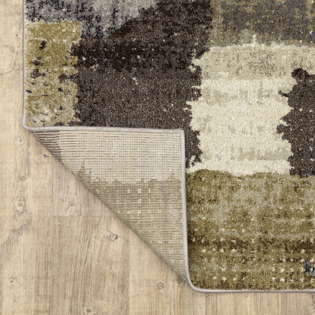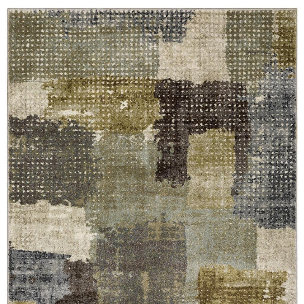 Add some artistry to your room with this 10-foot x 13-foot green and brown abstract area rug. Ideal for spaces with kids and pets, this rug is stain resistant to help repel dirt and spilled liquids. Built to last, this rug crafted from polypropylene fibers is known for its durability and long lasting appeal. This larger sized, contemporary styled rug is ready to create a focal point or statement piece in your room. 118.11-inch h x 149.61-inch w x 0.55-inch d.