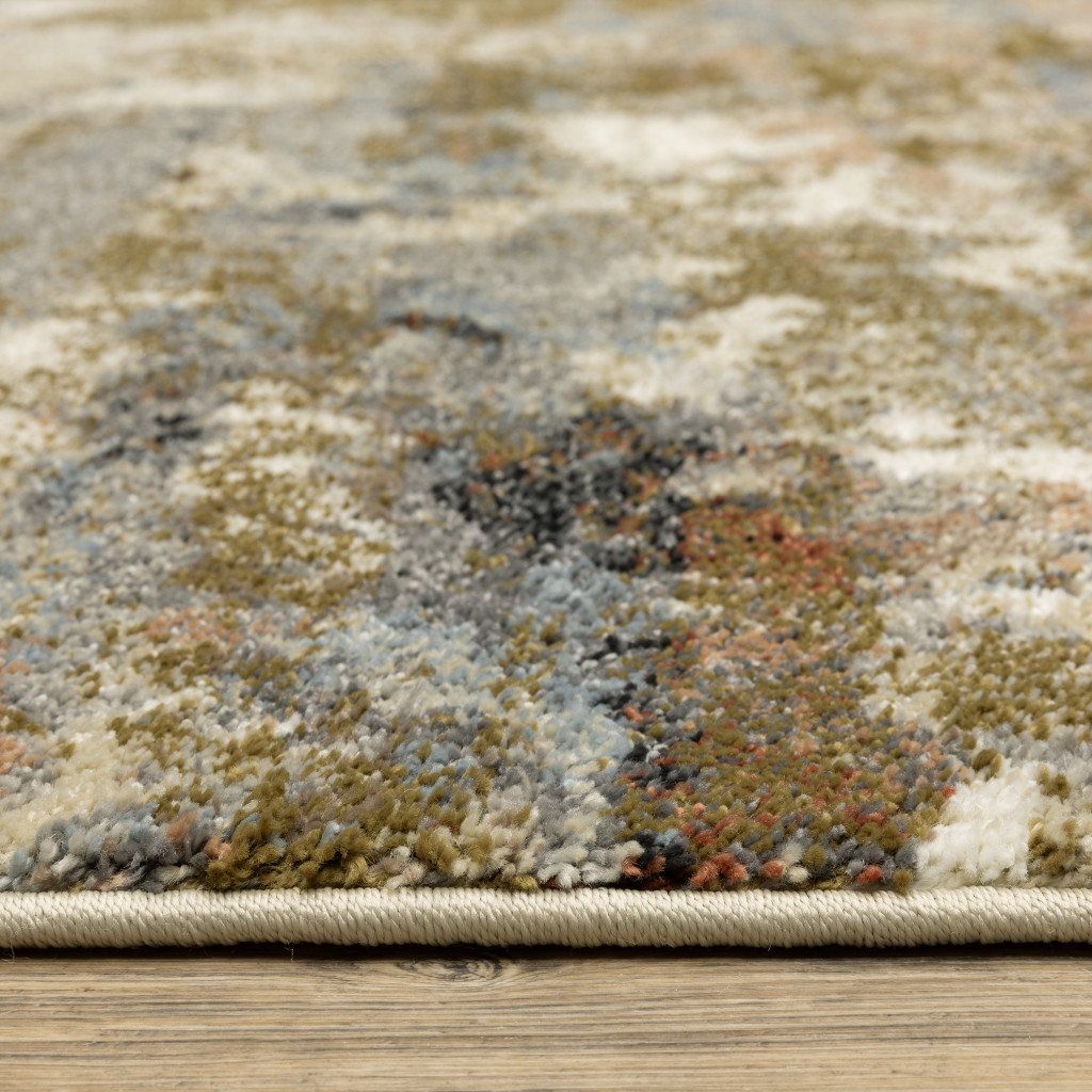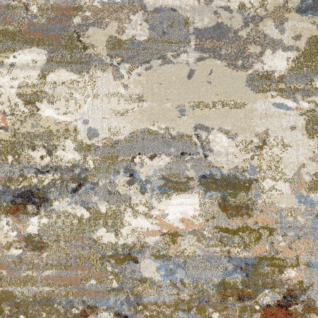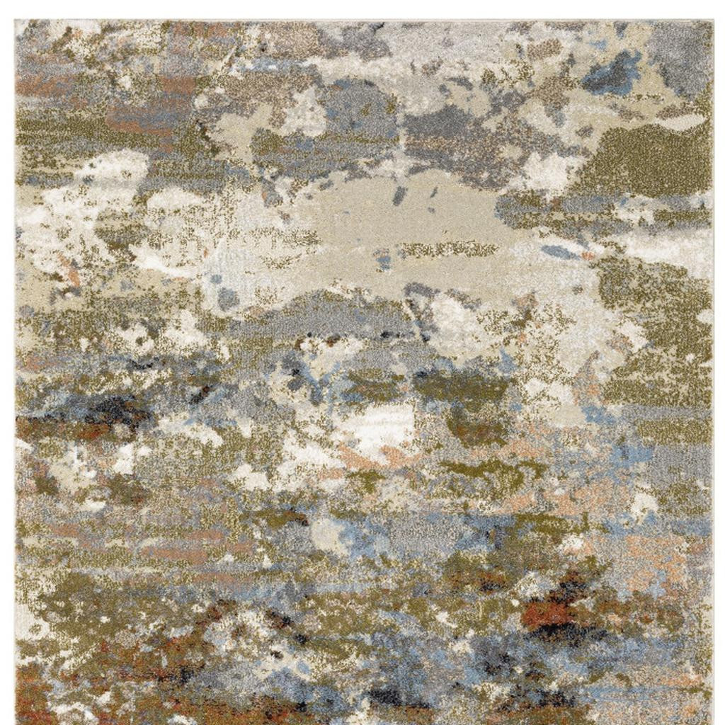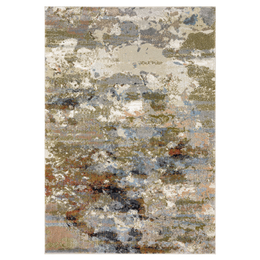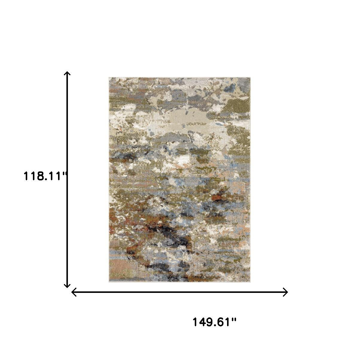 Add some artistry to your room with this 10-foot x 13-foot olive green and blue abstract area rug. Ideal for spaces with kids and pets, this rug is stain resistant to help repel dirt and spilled liquids. Built to last, this rug crafted from polypropylene fibers is known for its durability and long lasting appeal. This larger sized, contemporary styled rug is ready to create a focal point or statement piece in your room. 118.11-inch h x 149.61-inch w x 0.55-inch d.