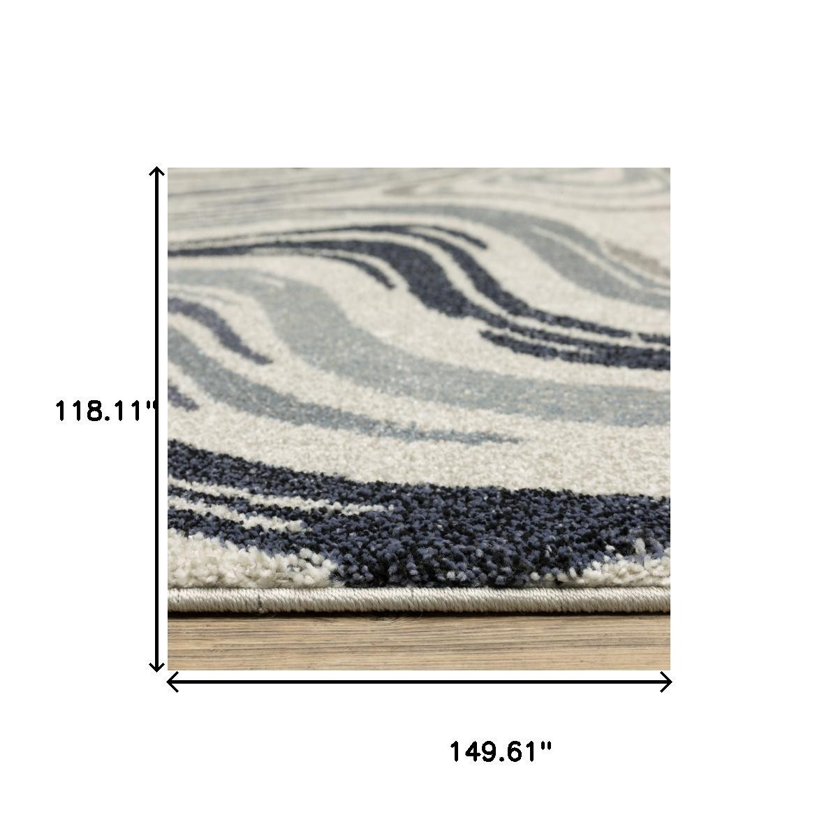 Add some artistry to your room with this 10-foot x 13-foot blue and gray abstract area rug. Ideal for spaces with kids and pets, this rug is stain resistant to help repel dirt and spilled liquids. Built to last, this rug crafted from polypropylene fibers is known for its durability and long lasting appeal. This larger sized, contemporary styled rug is ready to create a focal point or statement piece in your room. 118.11-inch h x 149.61-inch w x 0.55-inch d.