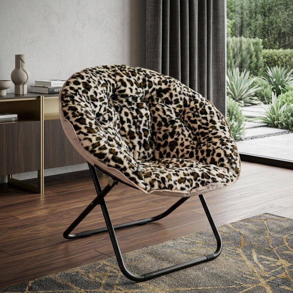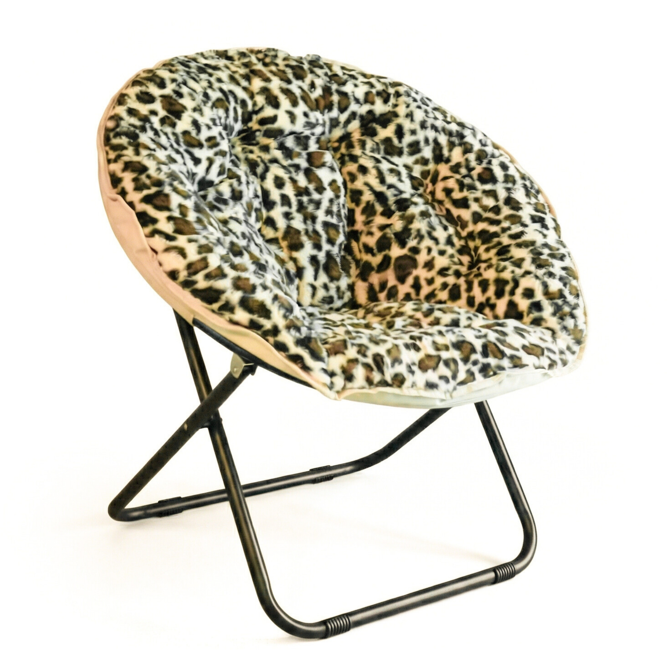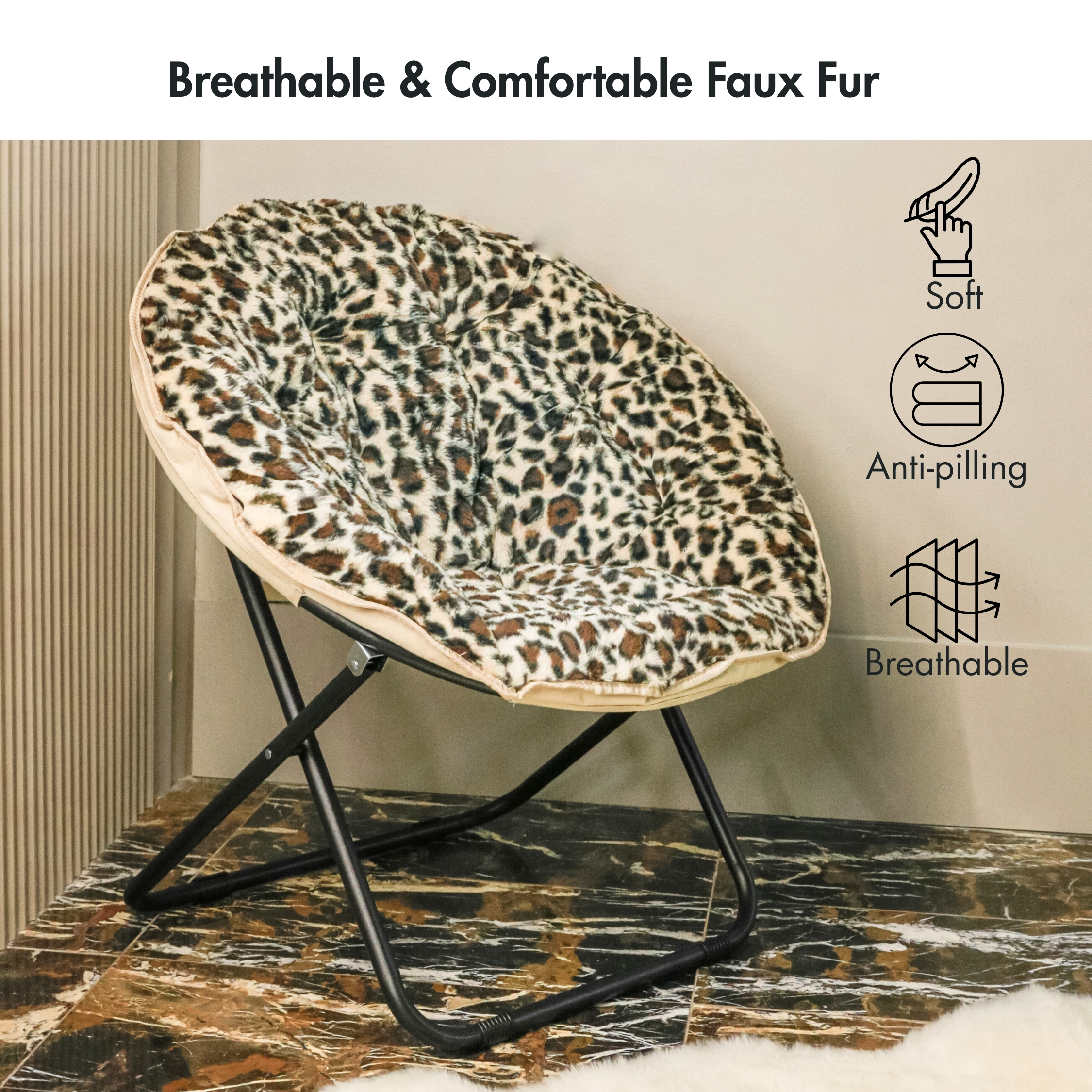 animal print folding lounge chair, beige black tufted faux fur, brown beige black tufted faux, 16" brown beige, faux fur metal animal print |