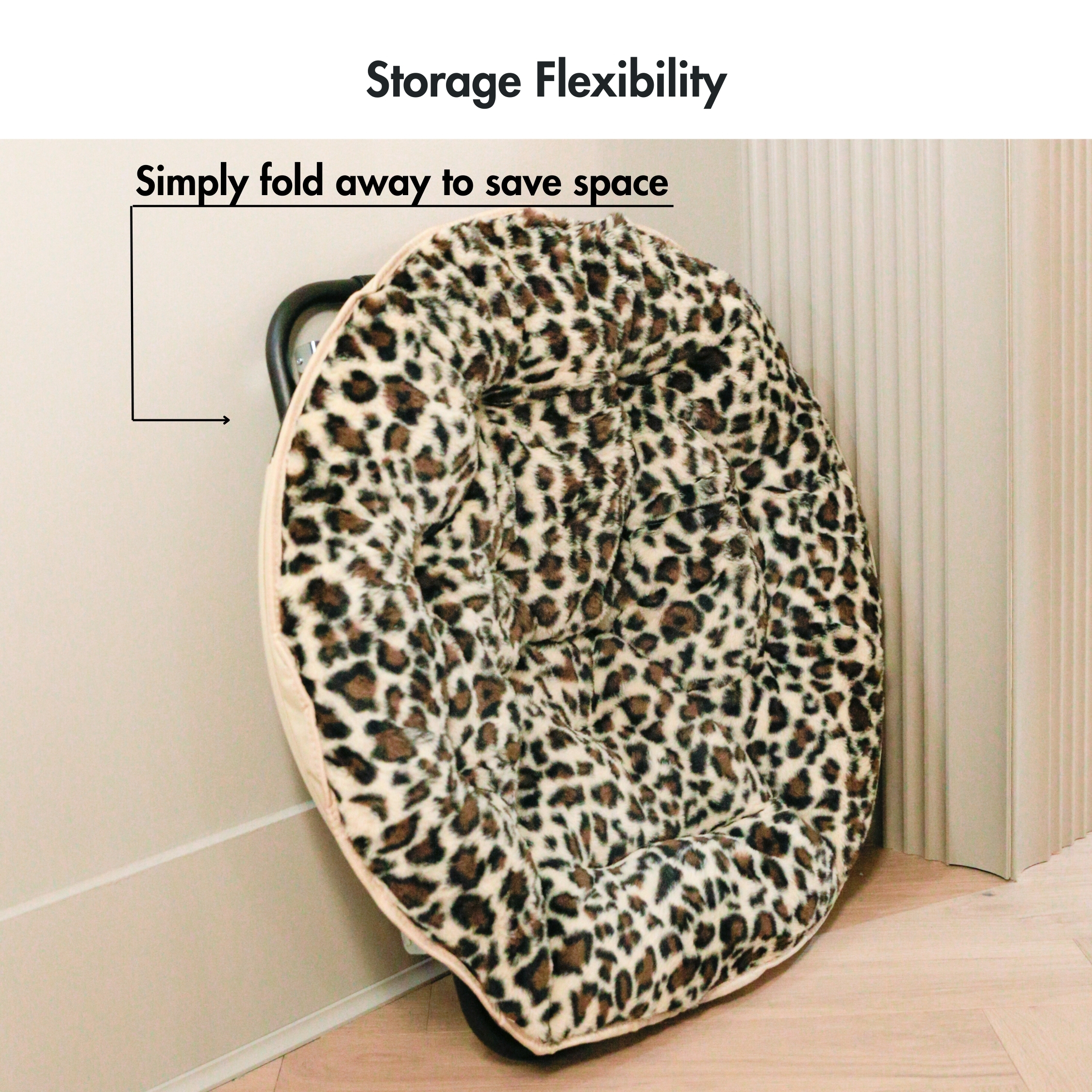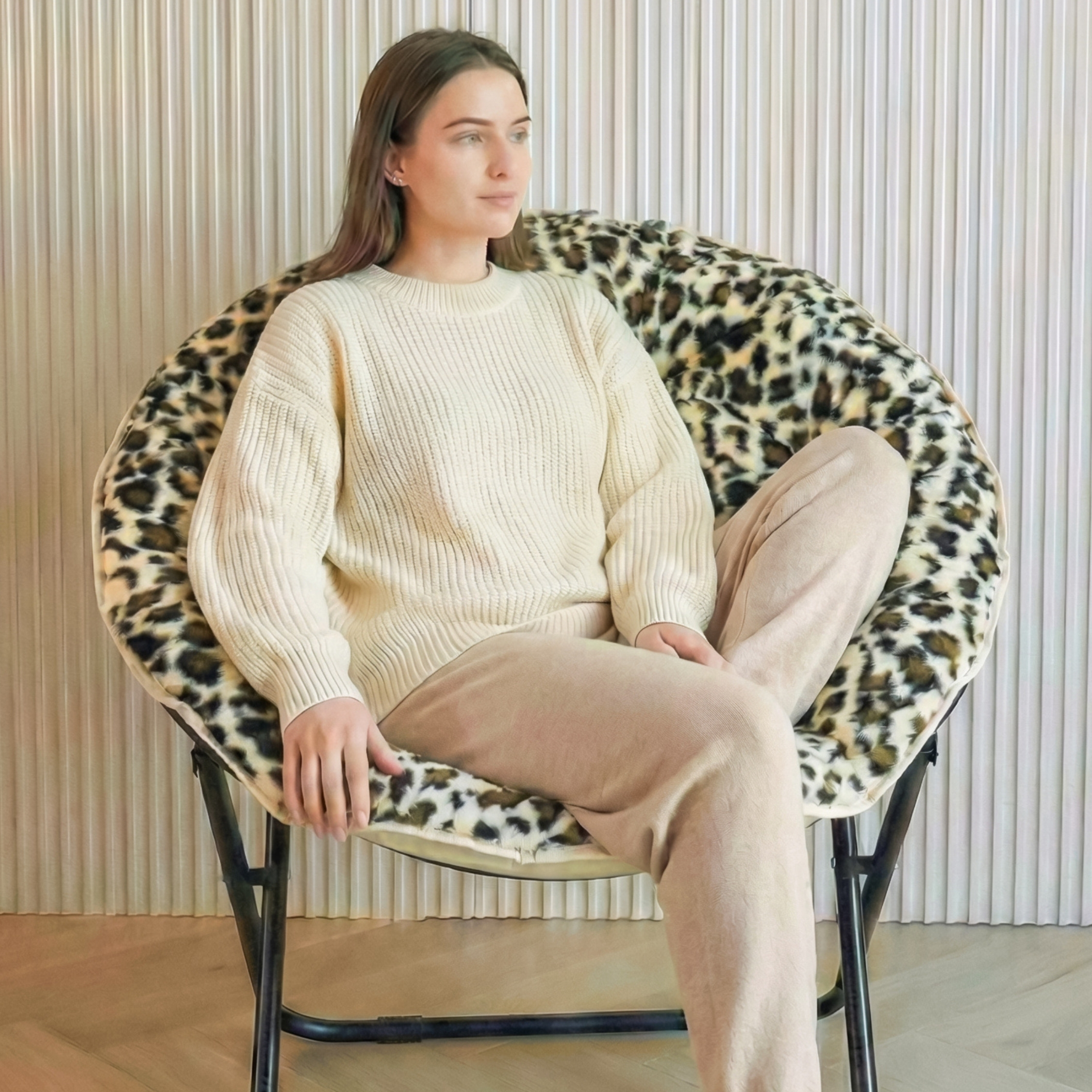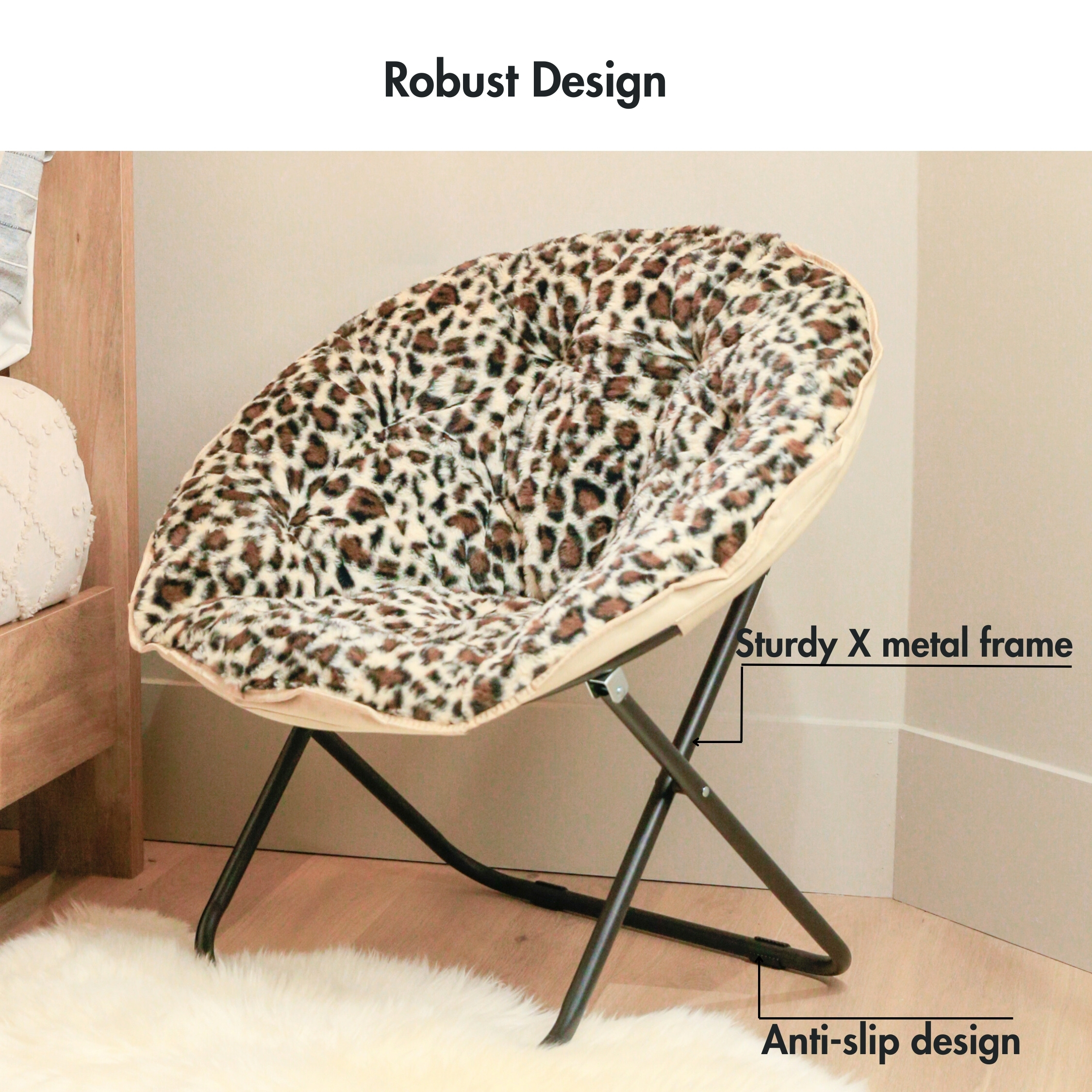animal print folding lounge chair, beige black tufted faux fur, brown beige black tufted faux, 16" brown beige, faux fur metal animal print |