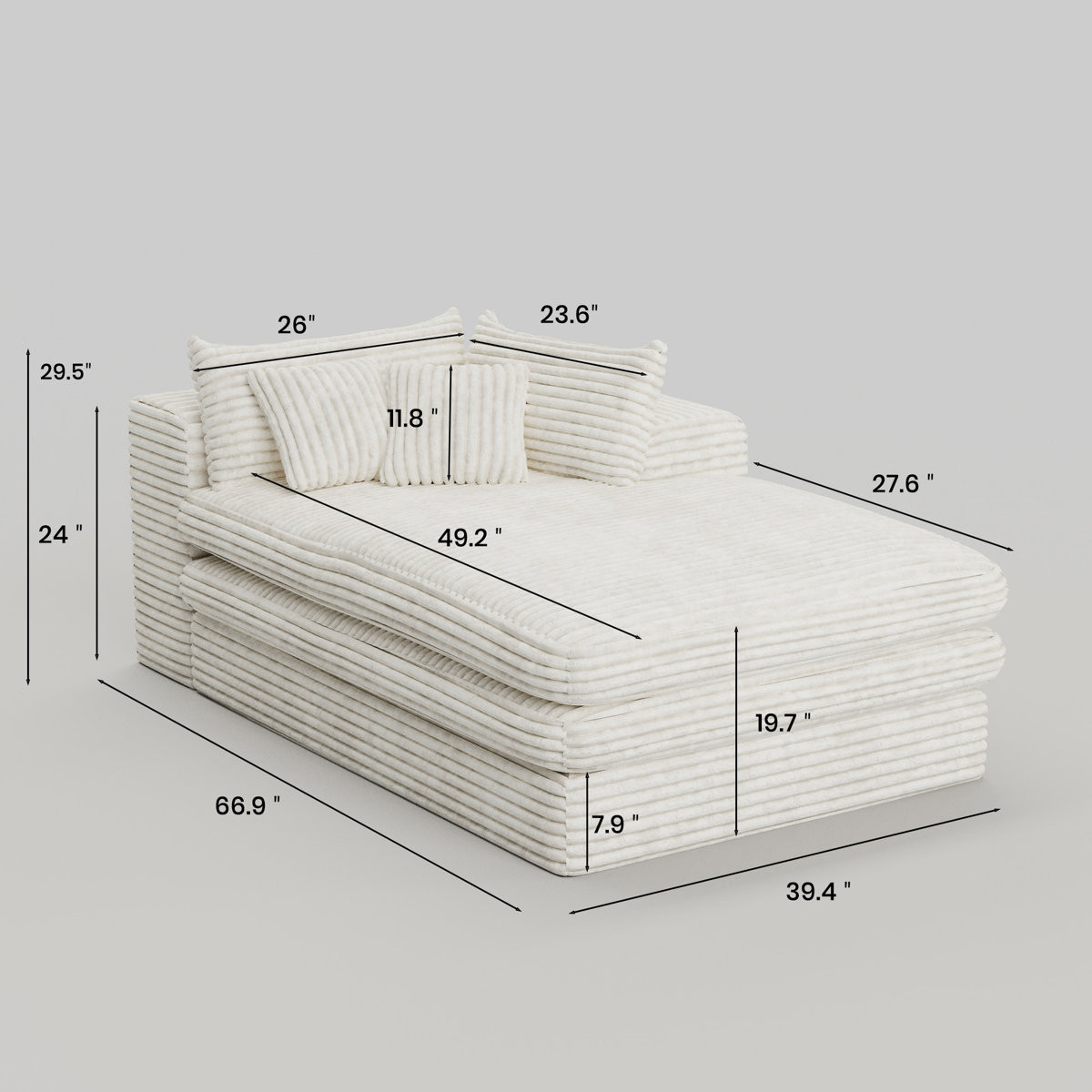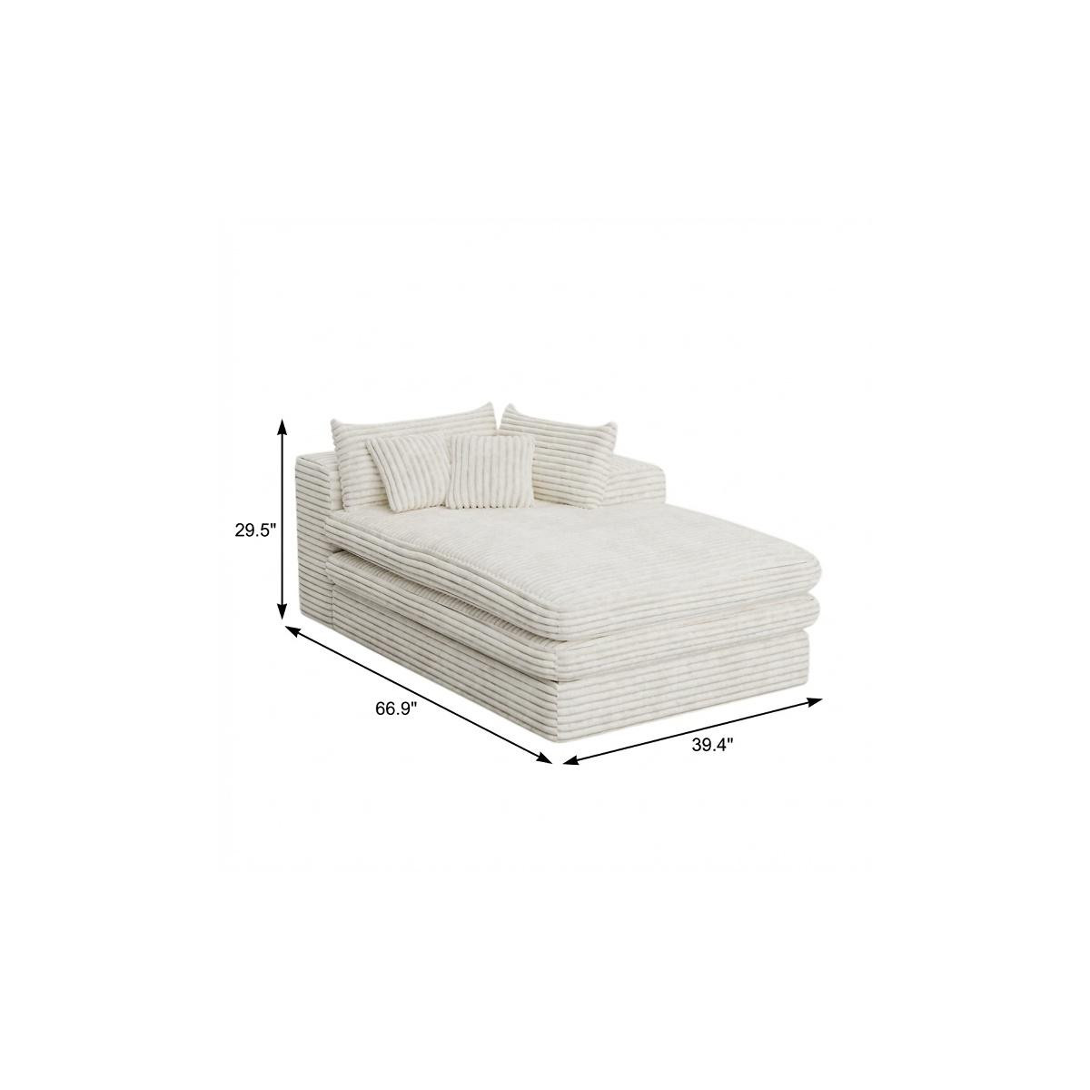 This 39-inch white corduroy lounge chair is the perfect decorative yet functional accessory for your home. This gorgeous solid color white lounge chair is masterfully upholstered in durable corduroy. The high quality foam inner frame flaunts convenient armrests and a pillow back that are complimented by soft and comfortable cushioning. 29.50-inch h x 39.40-inch w x 66.90-inch d.