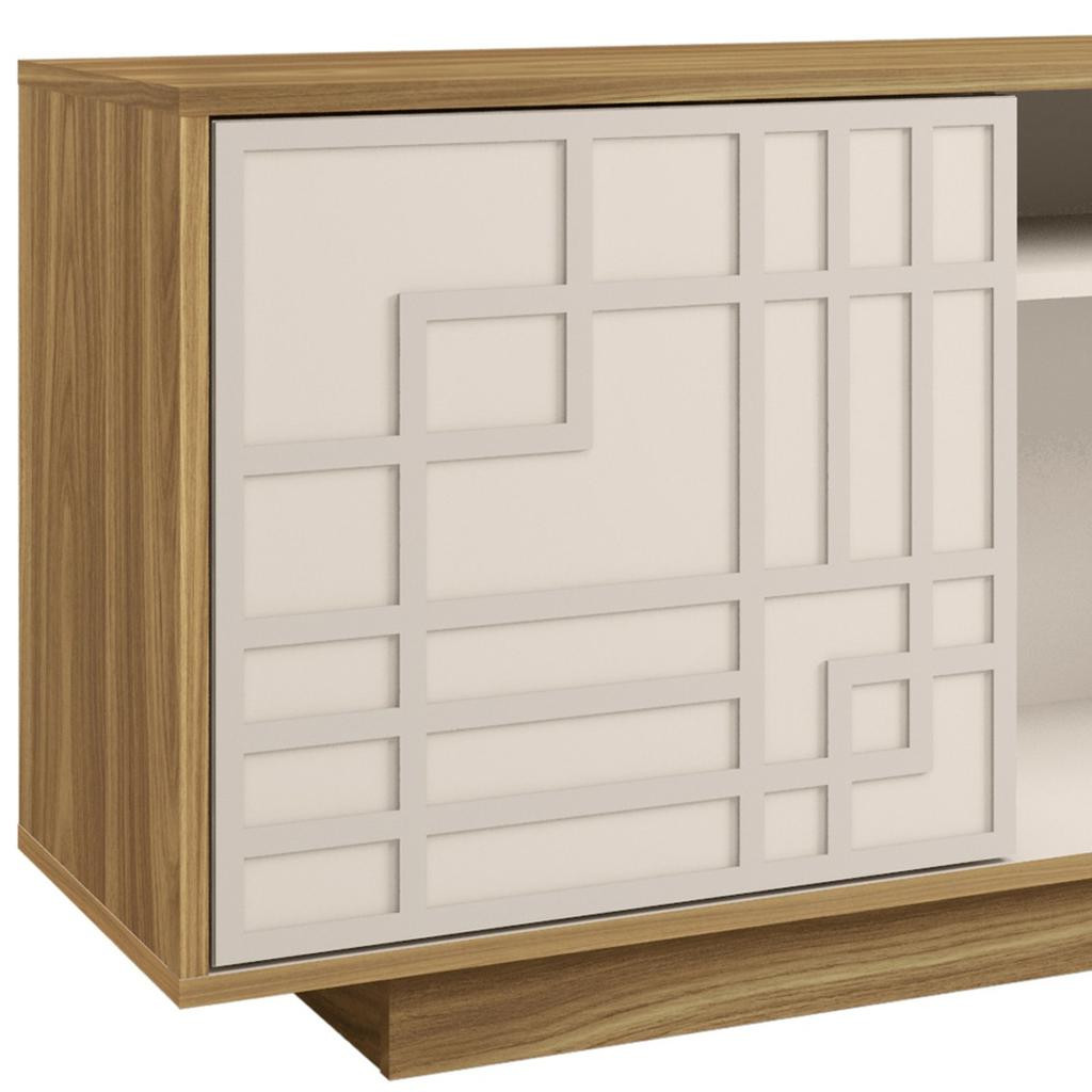 wood enclosed open storage tv, enclosed open storage tv stand, storage tv stand, open storage tv stand, 63" oak white carved geometric |