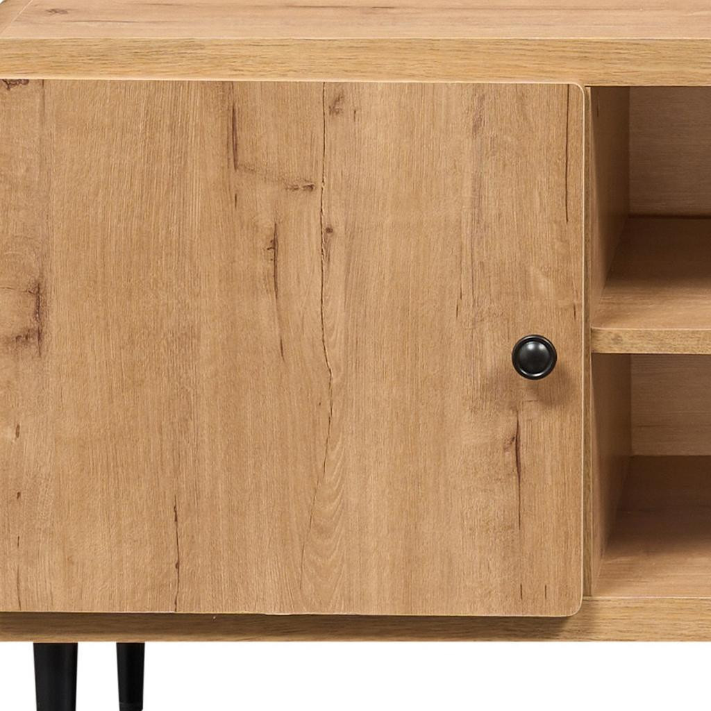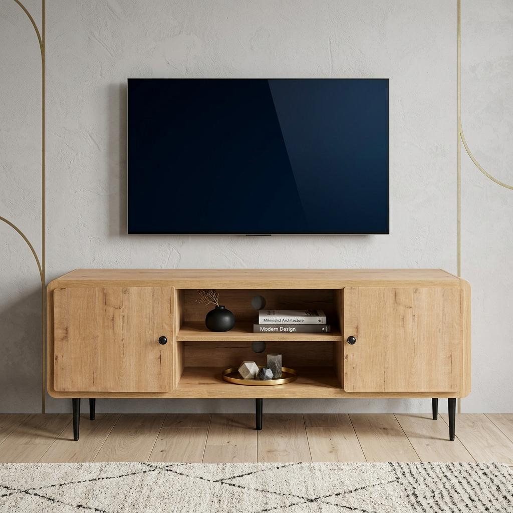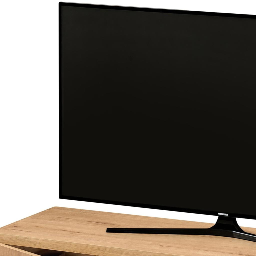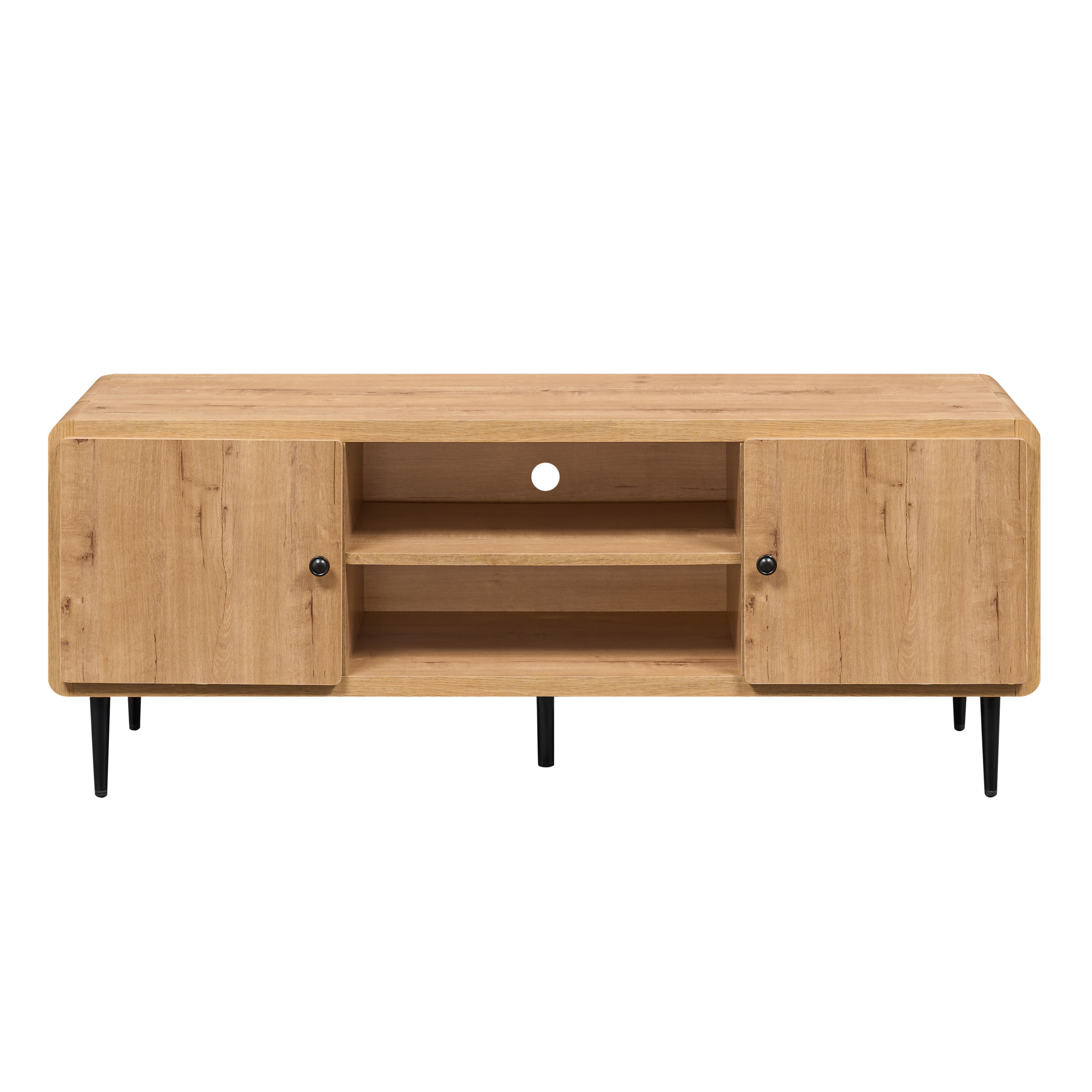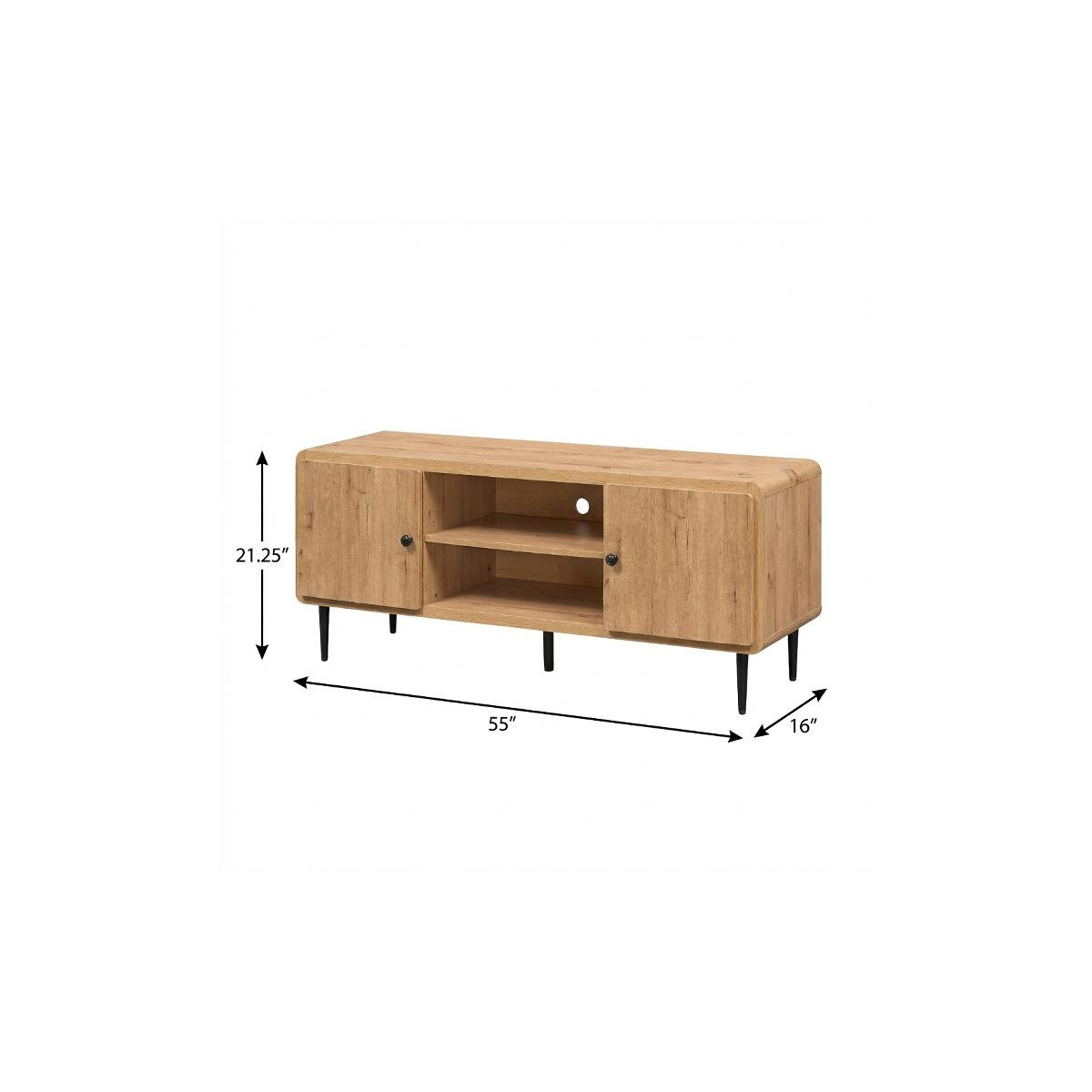 Create the ultimate blend of style, function, and design with this 55-inch oak wood enclosed and open storage tv stand. Designed to be sturdy and long lasting, this versatile furniture piece is crafted from durable manufactured wood and features a modern design style. To add to the versatility, this piece features open non-concealed storage that can be used for not only storage but display as well. A built-in cable and wire management helps to keep those unseemly wires at bay. Ideal for tv placement and storage in your living room, bedroom or office. 21.25-inch h x 55.00-inch w x 16.00-inch d.