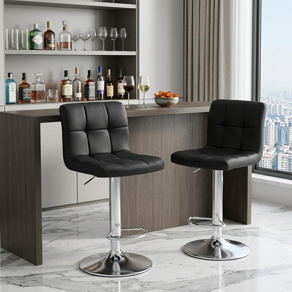 adjustable height swivel bar chairs, swivel bar chairs, set black silver faux leather, leather aluminum adjustable height swivel, faux leather aluminum adjustable height |